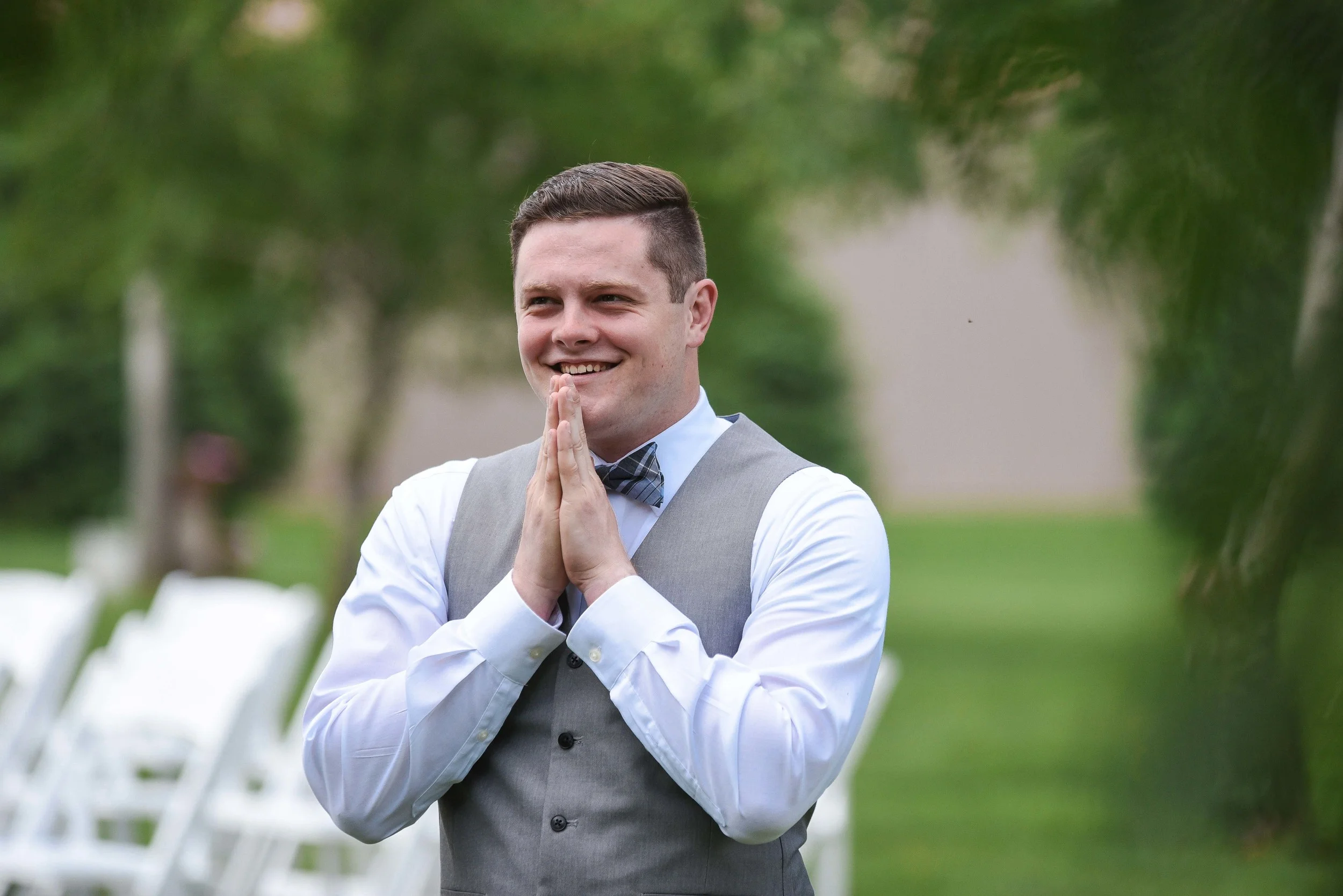 We were able to sneak Kelsi out to the trees ahead of their First Look for some portraits and sneak her back into hiding before we placed Tyler. It’s a pretty rare thing when the bride is ready before the groom! Way to go, girl! 🙂