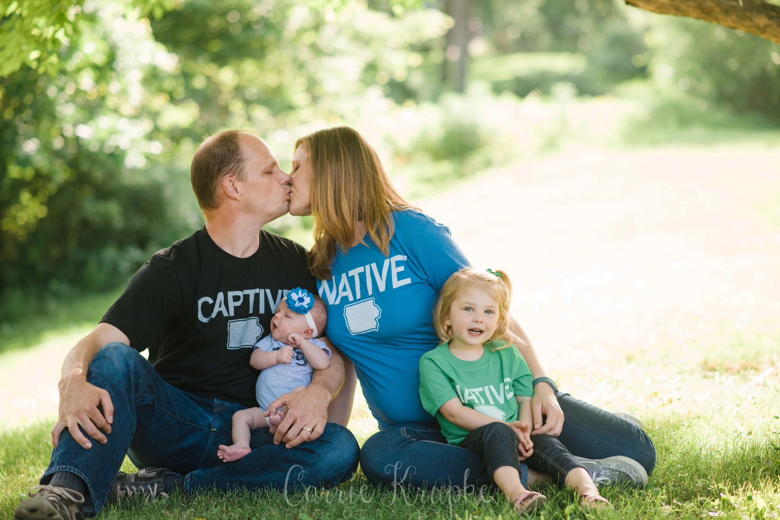As I showed up to the park, their oldest, Claire, ran towards me and I love that about my families: even in fairly short interactions at a photo session, I get hugs, high 5’s and held hands as we walk to the car during our times together. And in typical Sarah & Brandon fashion, I couldn’t help but chuckle at their shirts (Brandon is from Kansas, if my memory serves me correctly…but if you believe Facebook, he’s still in PA…) 😉