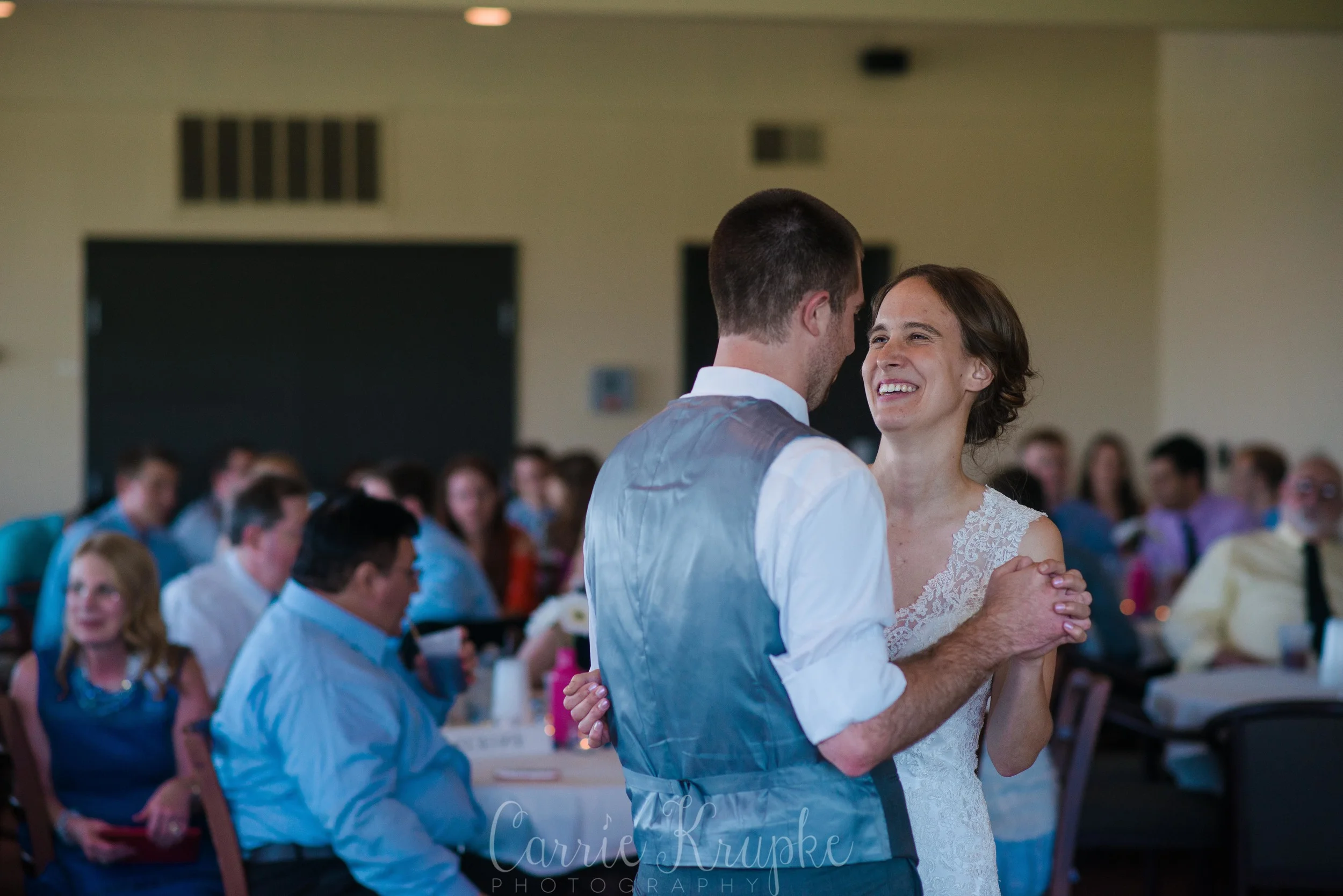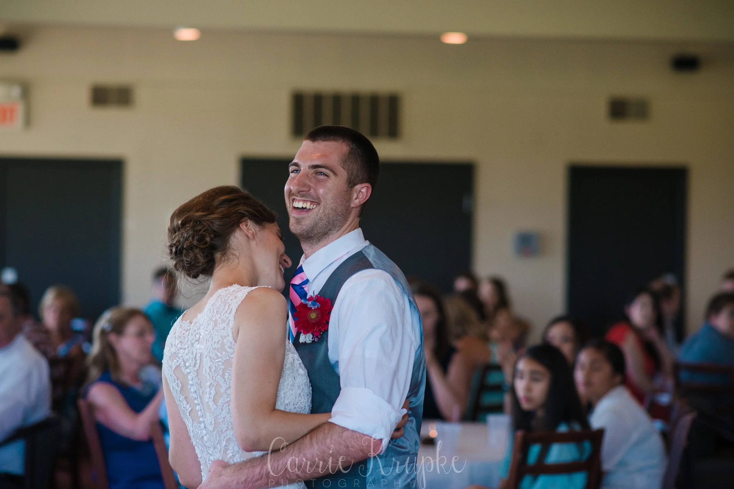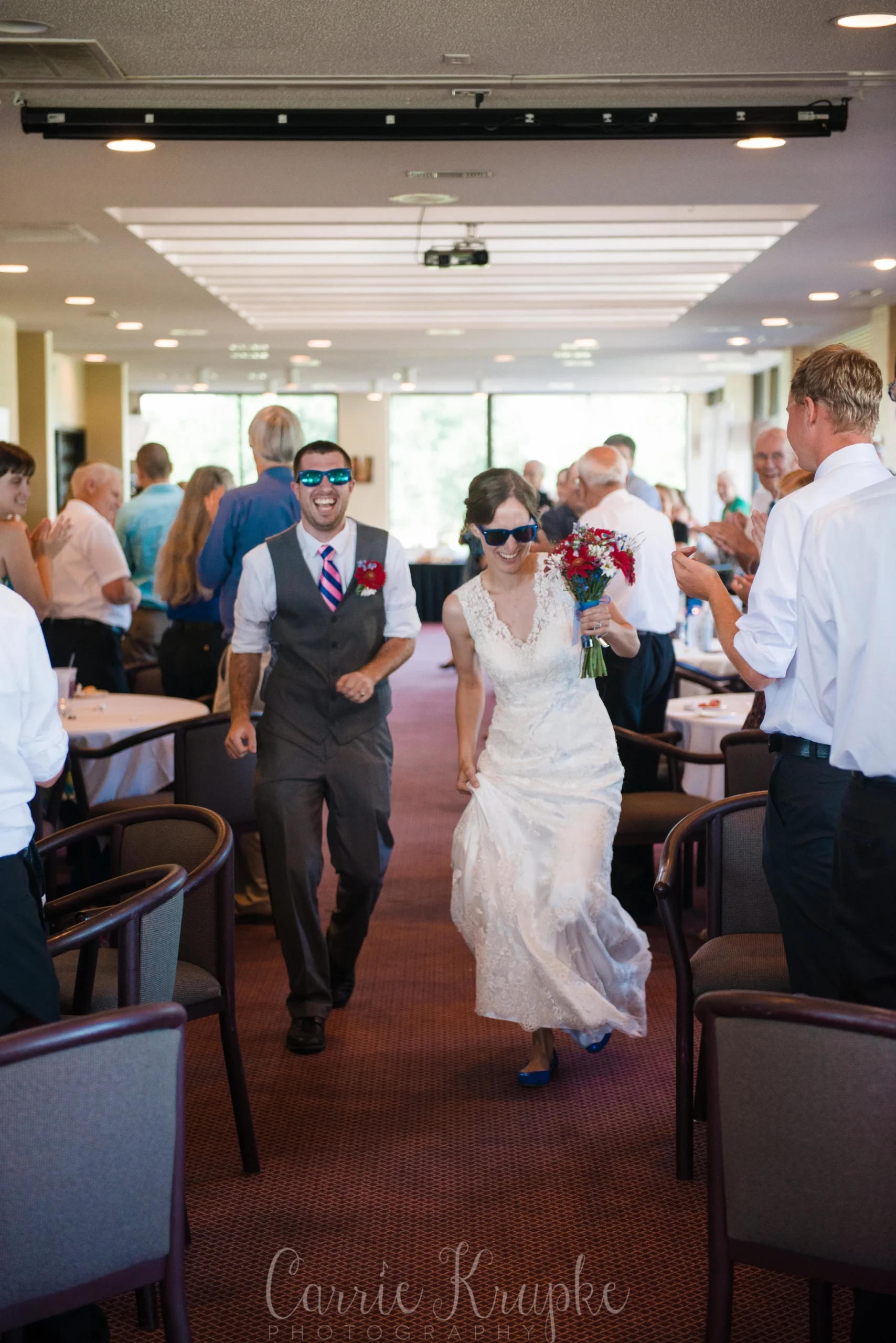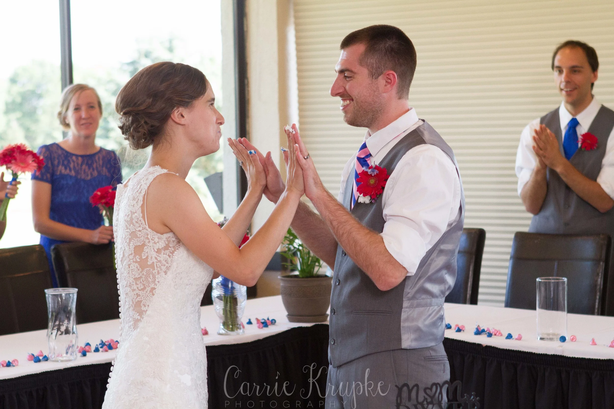 I LOVE the churches these Demmon sisters choose to get married in!! Old and gorgeous woodwork throughout-incredible indoor lighting provided by scads of stain-glass windows. But the beauty of the location can’t compare to a bride’s smile as her dad prepares to give her away…Also true to Demmon sister form, they come up with something different for their “Unity Candle” ceremony. Carrie & Mike brought dirt from their hometowns and dirt from Iowa State’s campus where they met to combine all those granules in a peace lily plant. I sure hope one of them has a green thumb so it lasts forever. 🙂