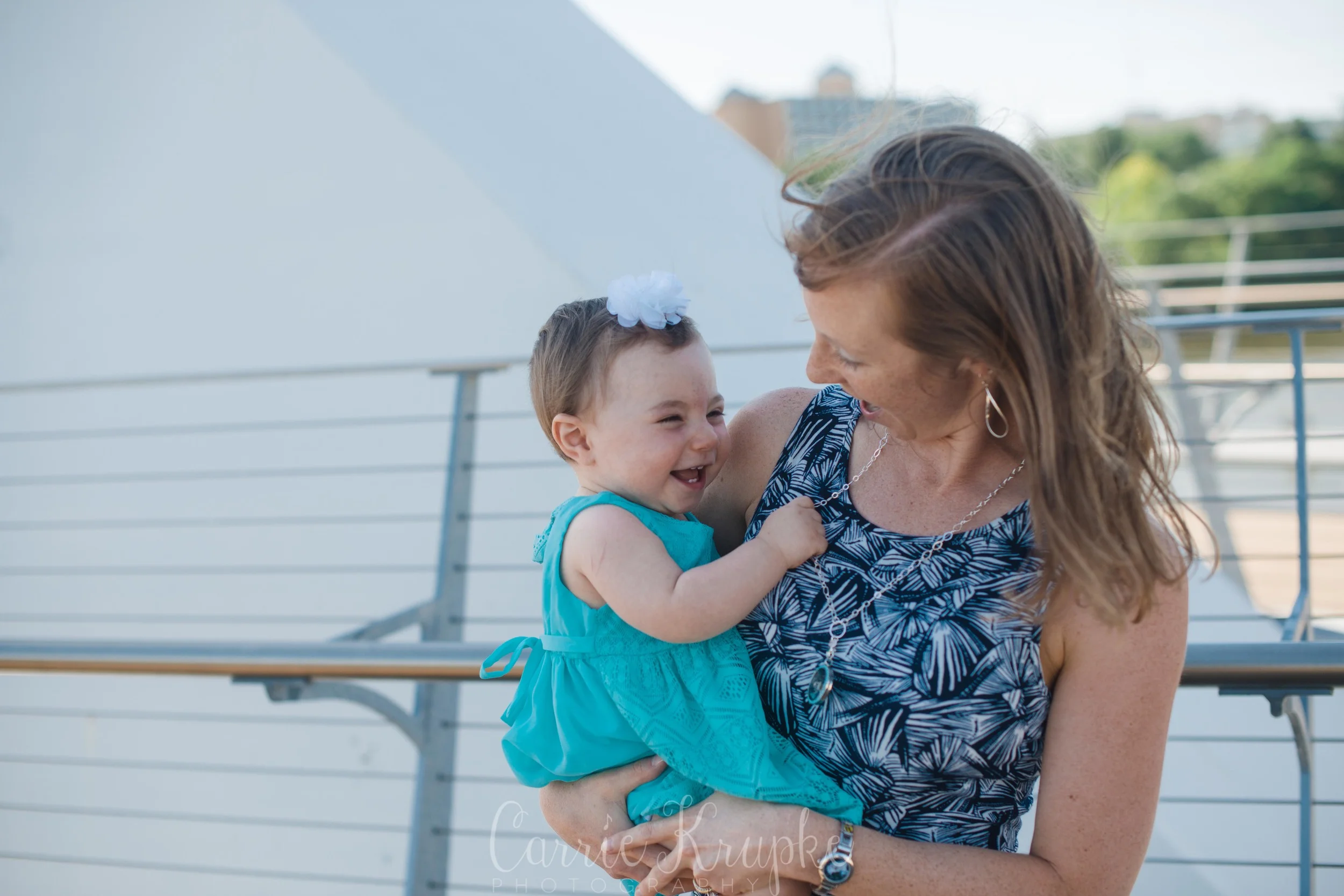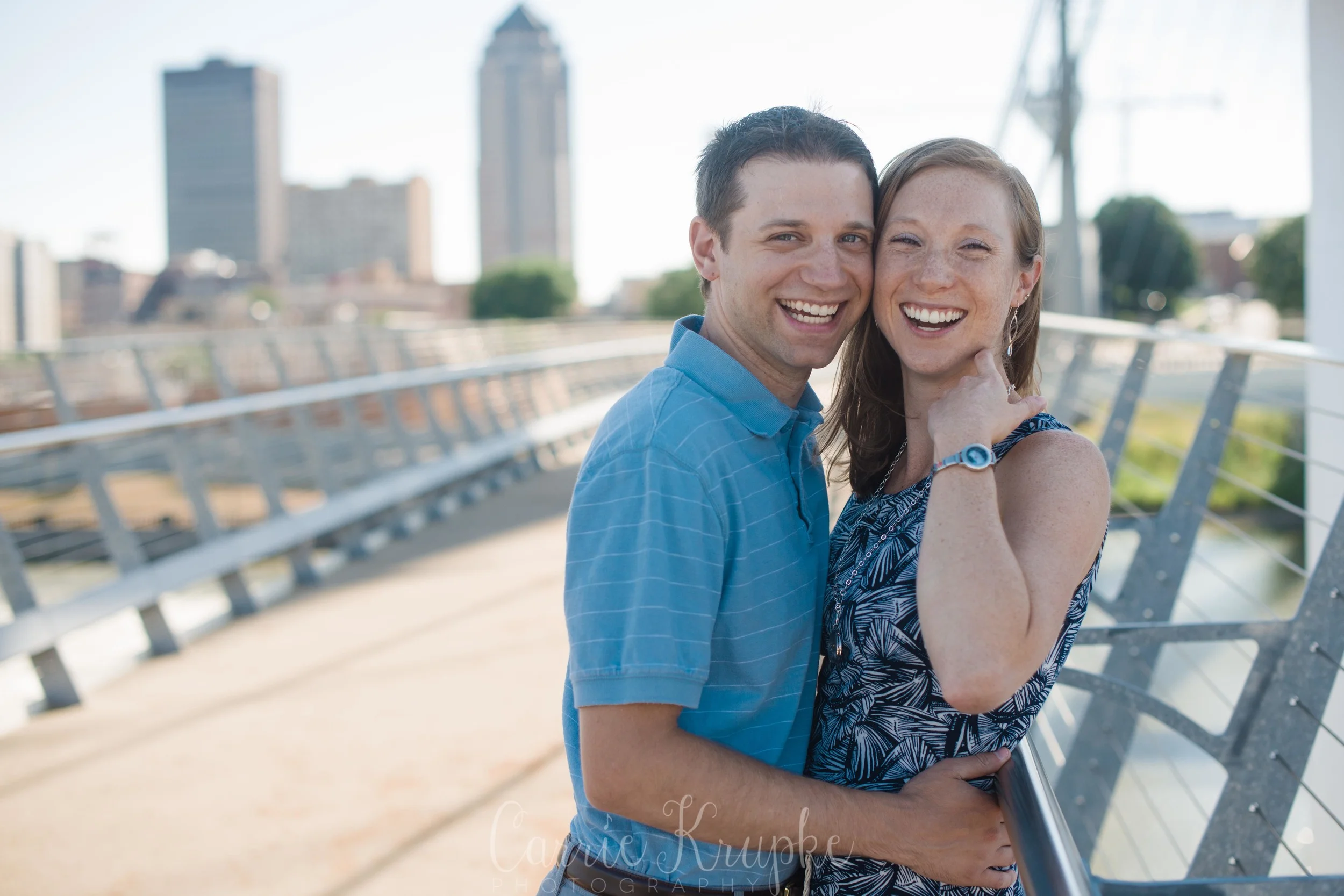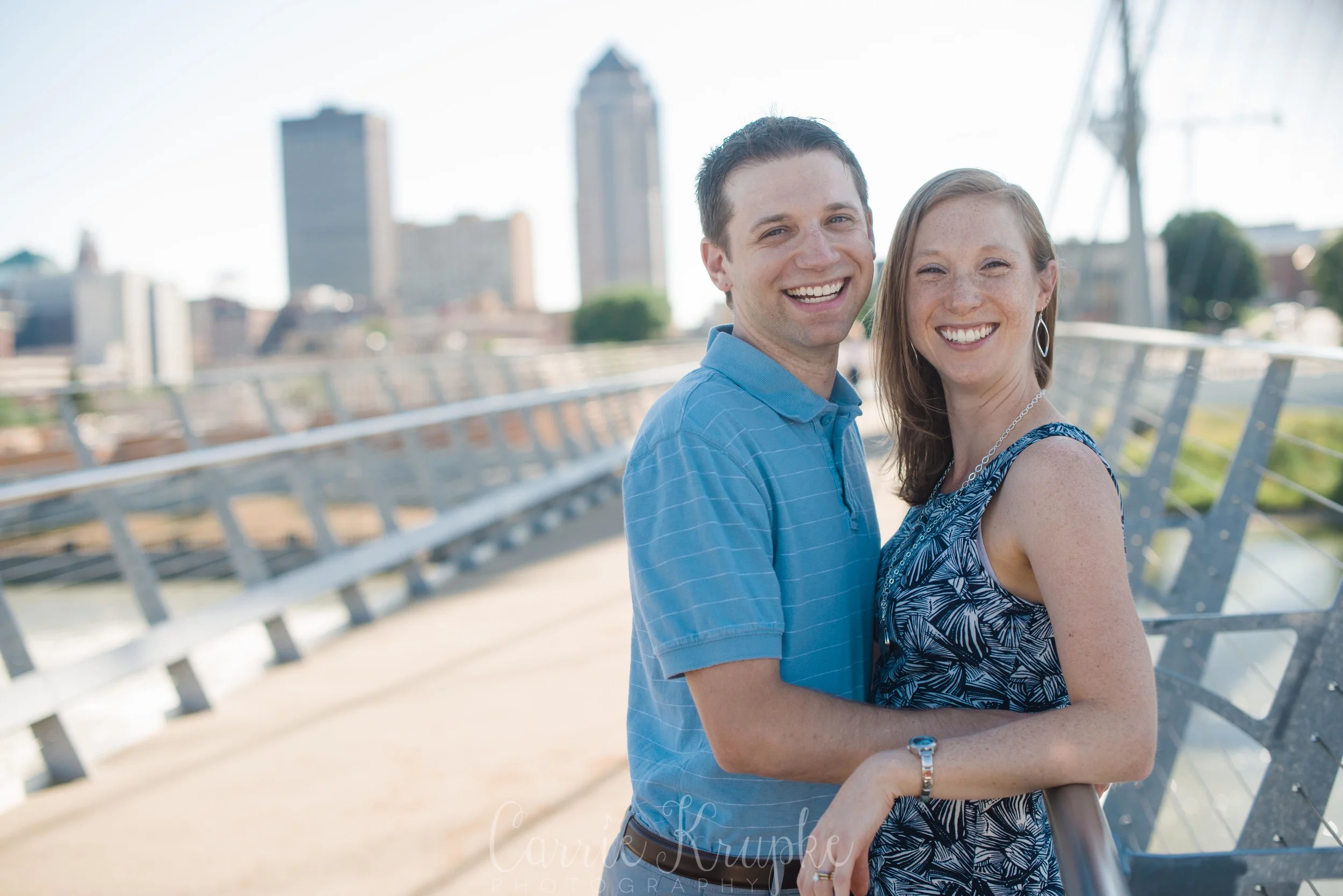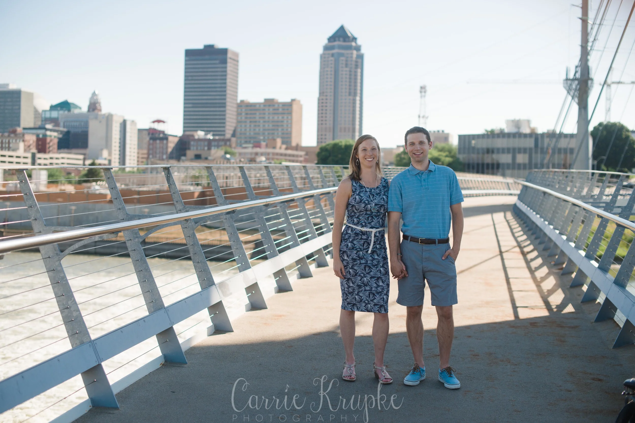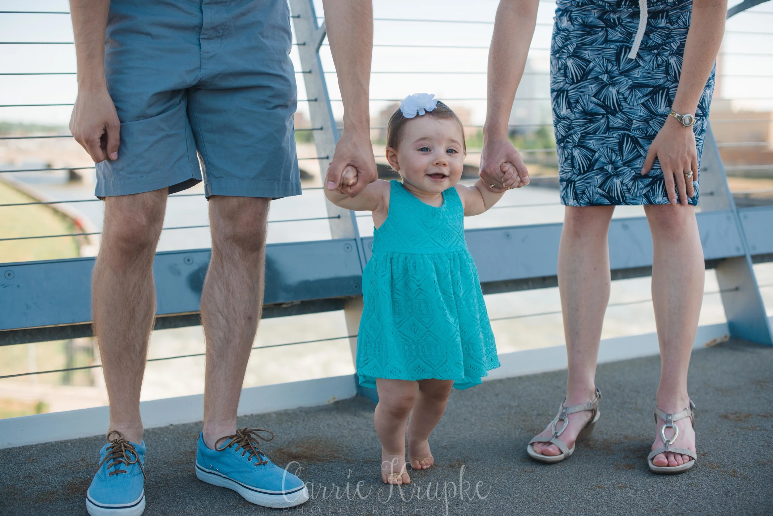 No one would’ve guessed by her newborn session that Ms. Ellie would be this happy, nay, ecstatic in front of the camera. Needless to say though, I’m thoroughly enjoying it. 🙂 Steph, Andy, Ellie and I met on Des Moines’ riverwalk bridge for a great view of downtown, with only occasional odd smells breezing by. (Side note: why do rivers smell weird?!) 🙂