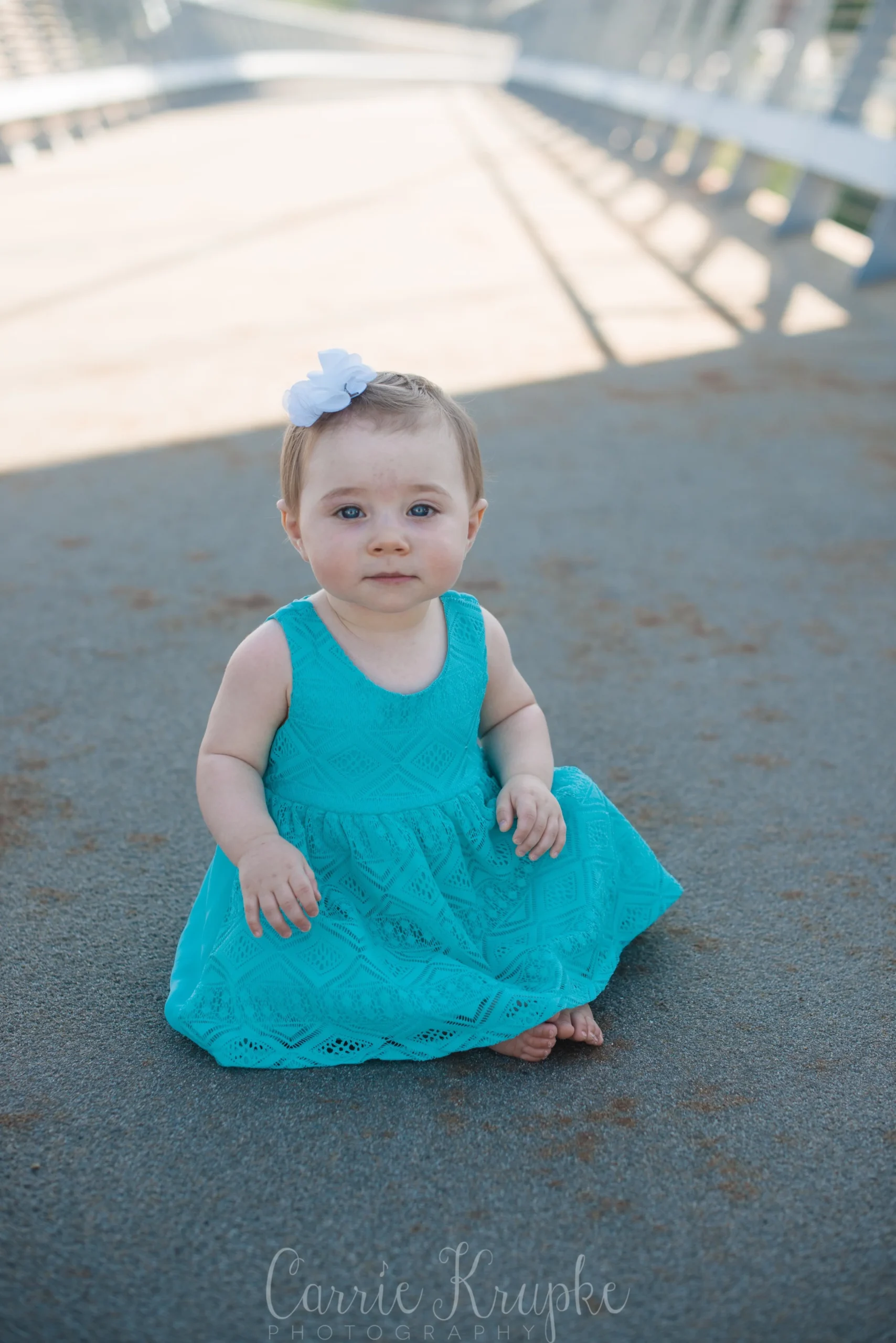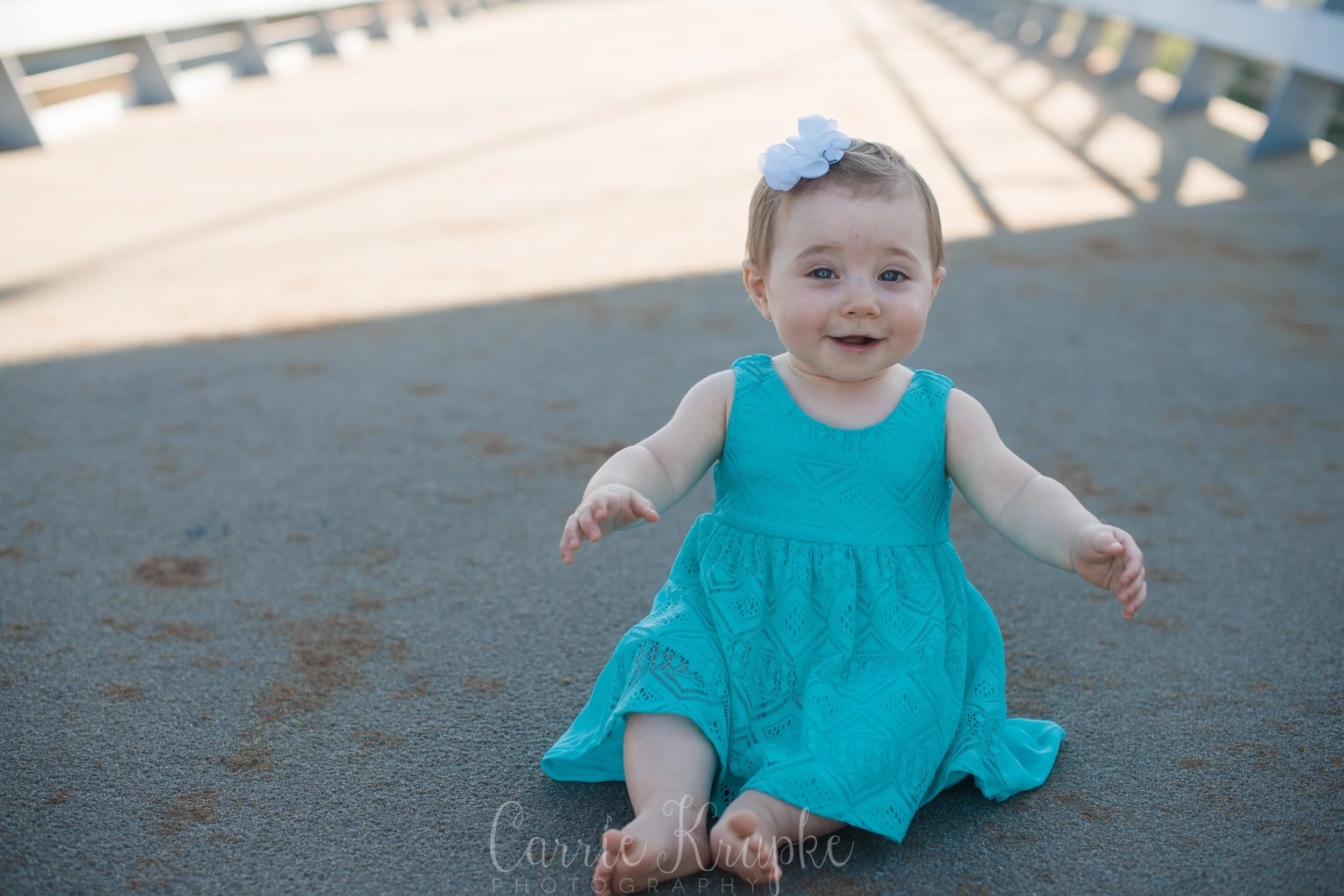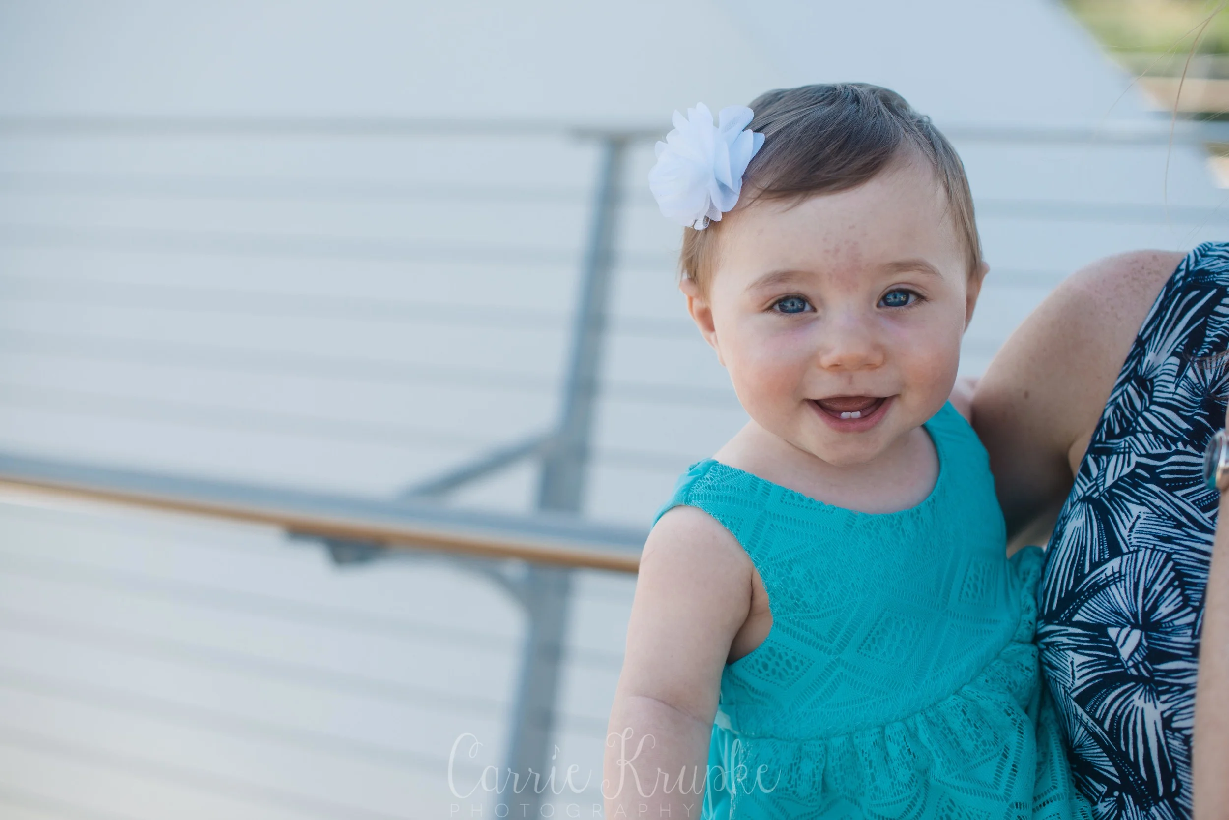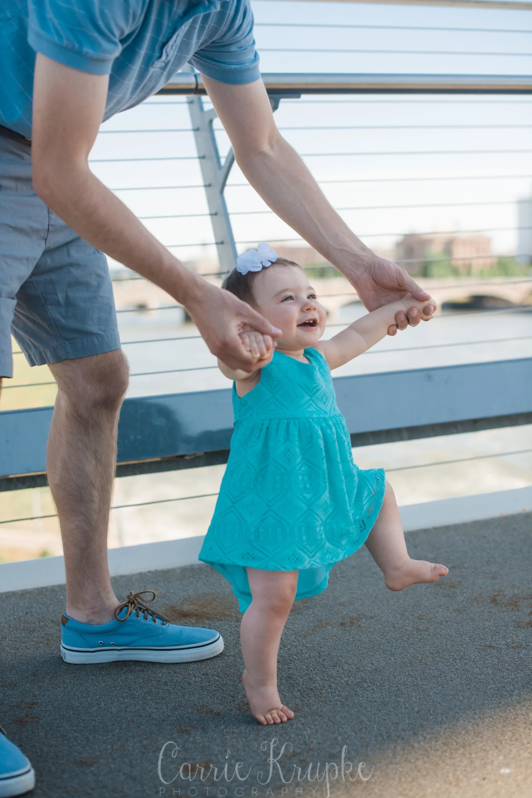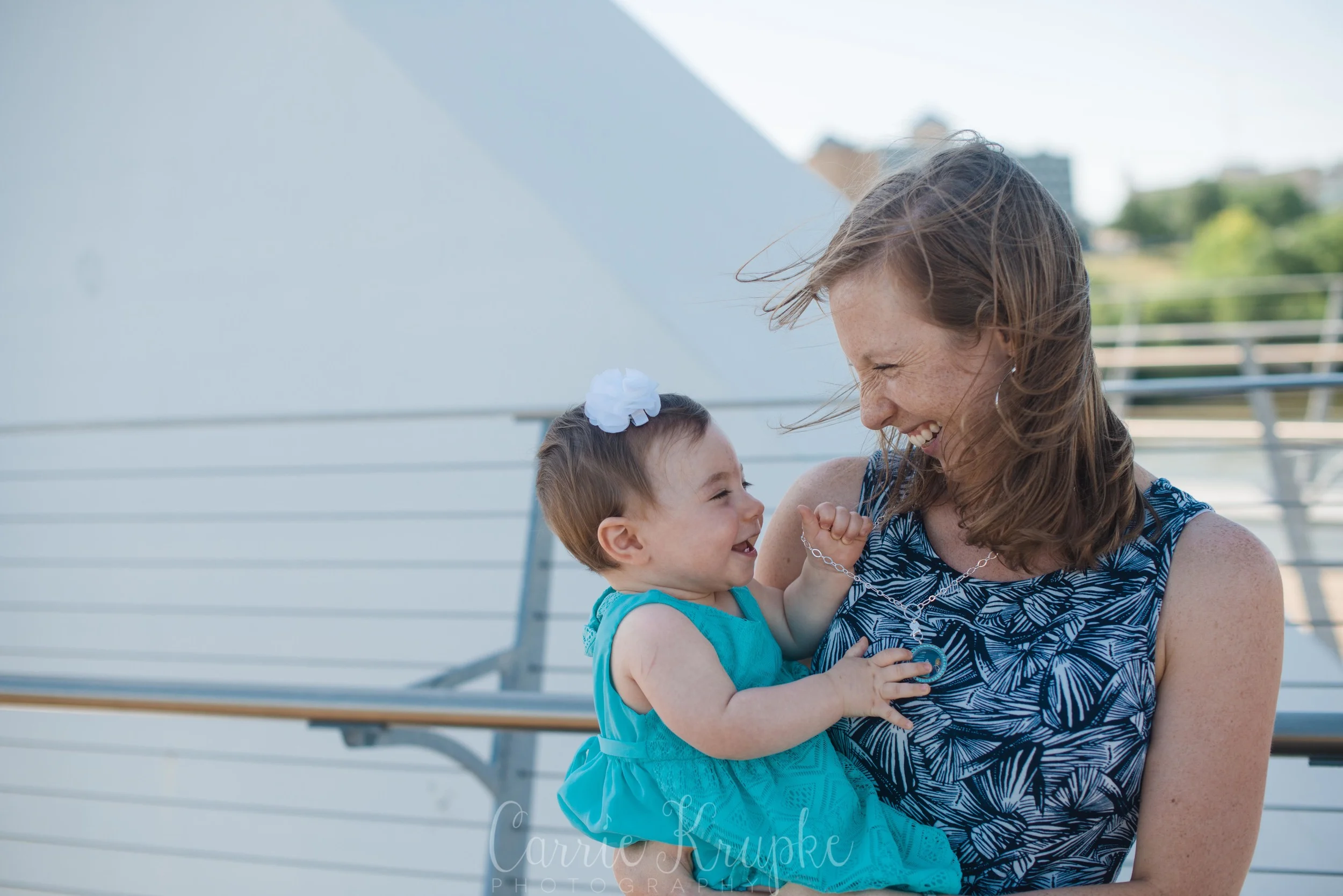 No one would’ve guessed by her newborn session that Ms. Ellie would be this happy, nay, ecstatic in front of the camera. Needless to say though, I’m thoroughly enjoying it. 🙂 Steph, Andy, Ellie and I met on Des Moines’ riverwalk bridge for a great view of downtown, with only occasional odd smells breezing by. (Side note: why do rivers smell weird?!) 🙂