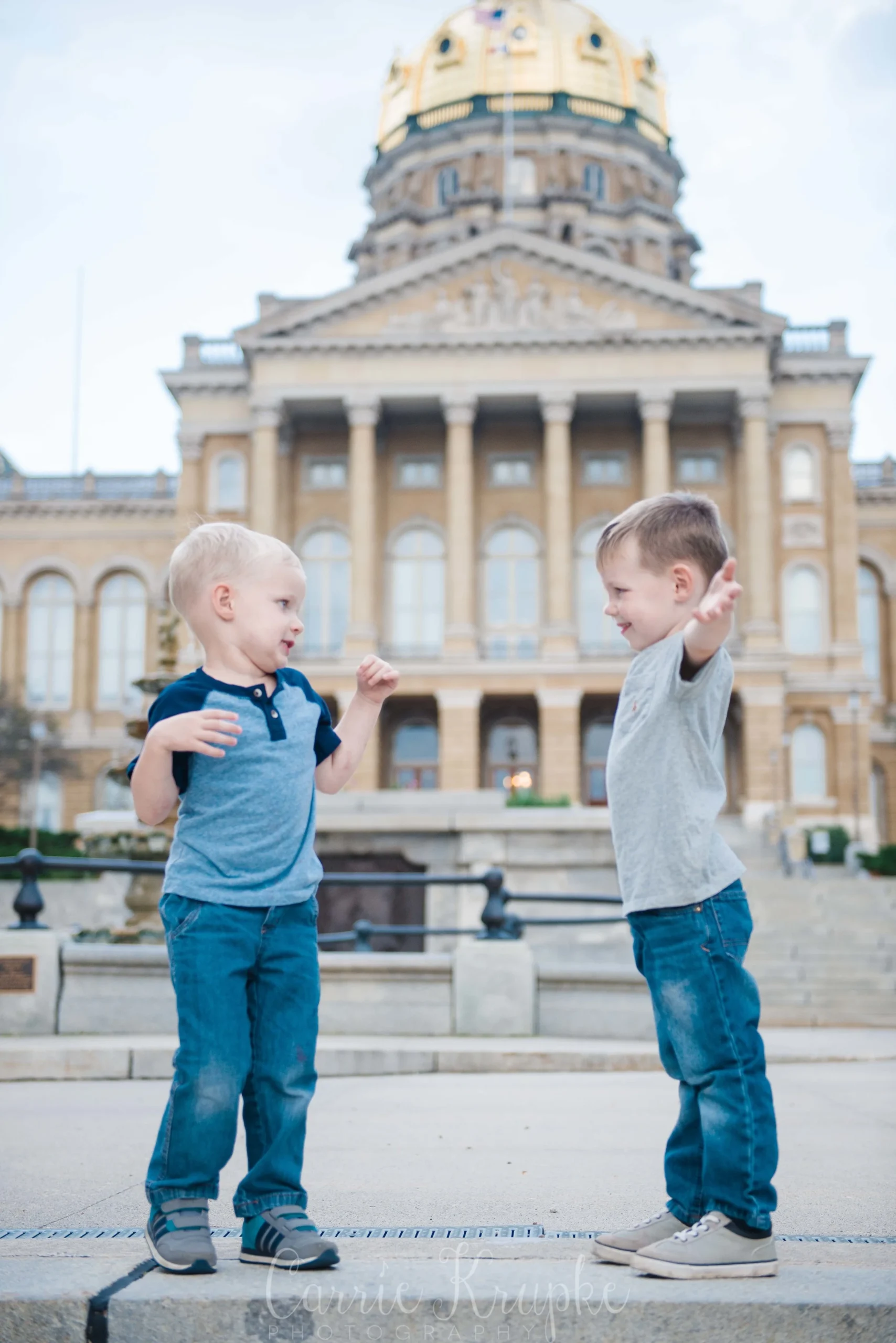 With sons 18 months apart, life is never dull, nor does it sit still for long! Amber & Ben run at a rapid pace, keeping up with Beckett and Reid and their jobs in the education field. (Shortly after this session, Ben headed to chaperone homecoming!!) Because their life is never dull, our sessions aren’t either and we had a ball using the capitol as our backdrop for some fun:
