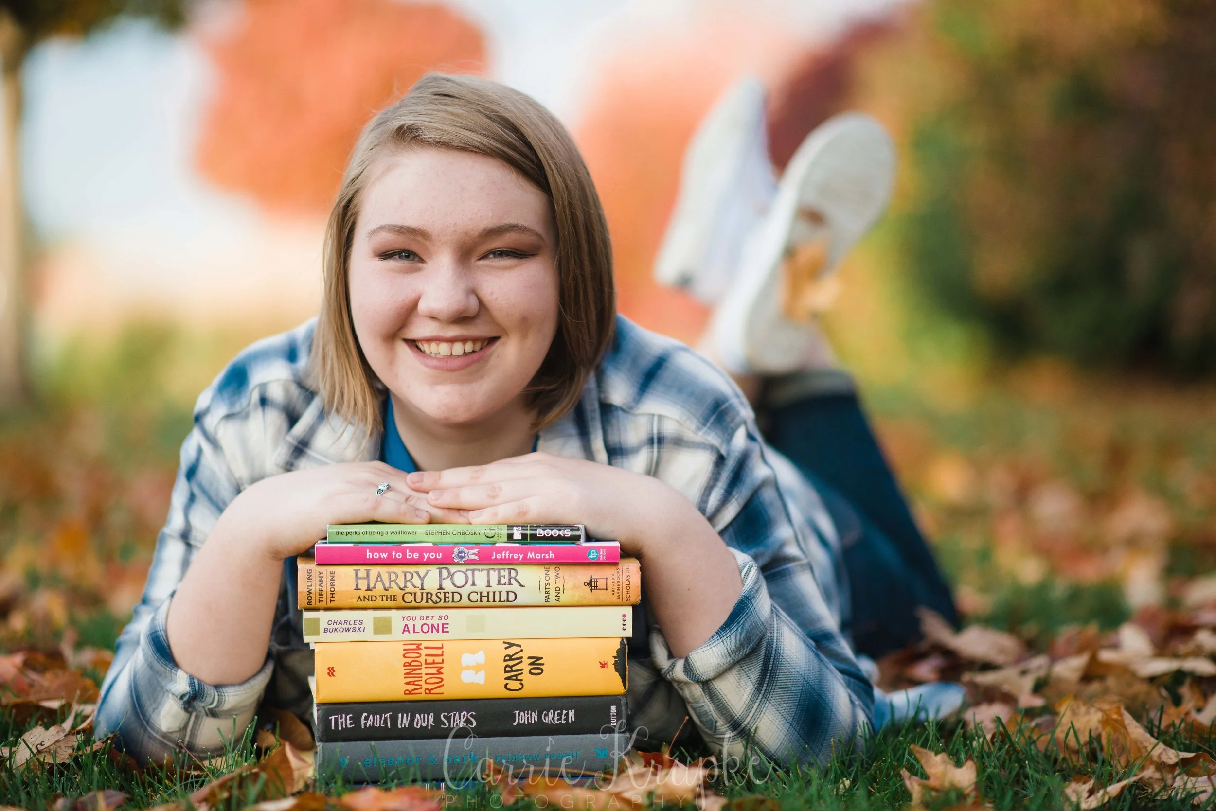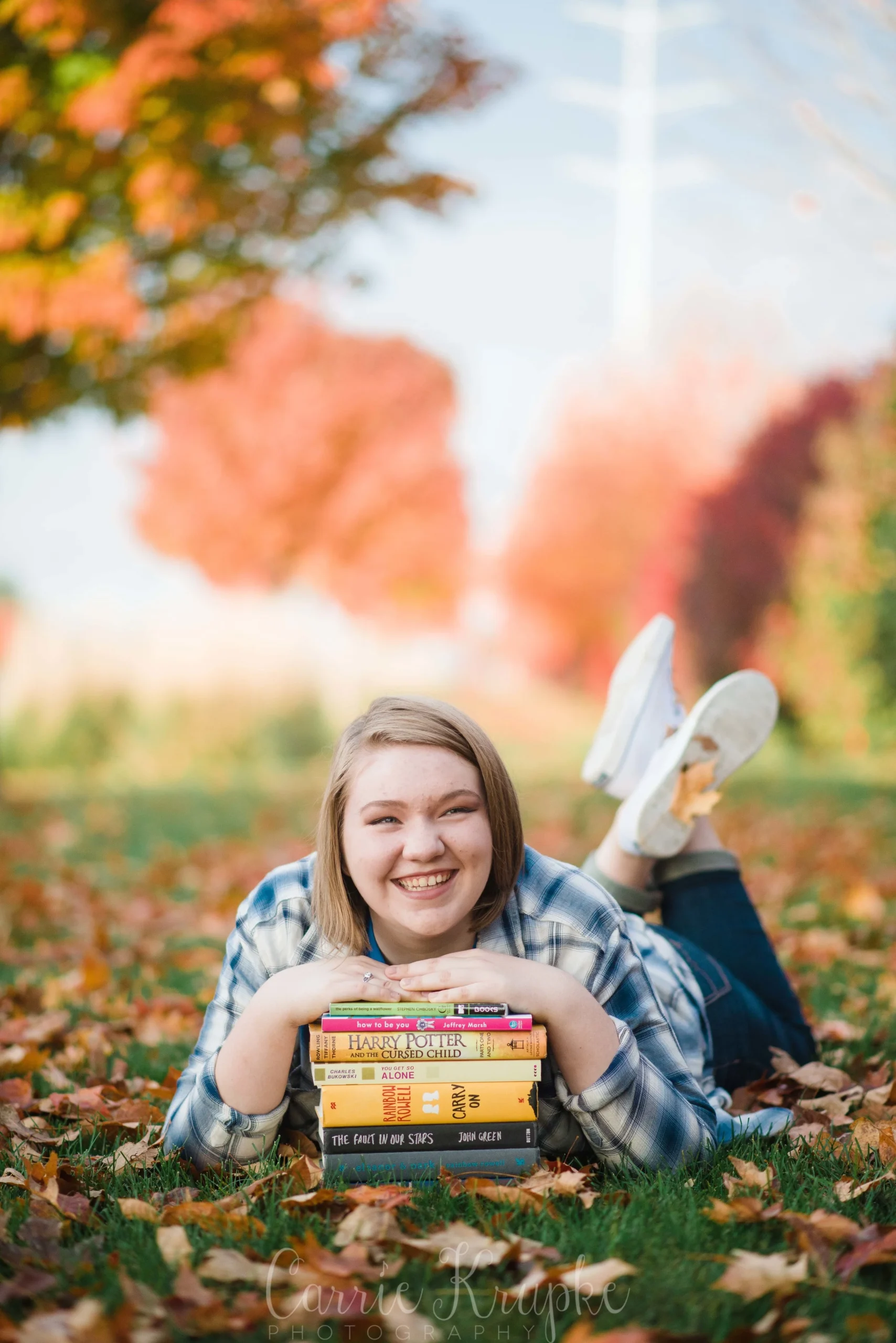 Alexis’ one request was to highlight the gorgeous fall colors and thankfully, even in late October, there were some awesome trees that reminded me of red balls of cotton candy. 🙂 It was at this spot that we highlighted her love of literature and her Mom brought an adorable baby photo as a comparison. Obviously, Alexis looks more grown up now, but the dimples that grace her cheeks remain. Additionally, we snagged my favorite photo from my seniors’ sessions-one with the parent that joins them on their session with me. Alexis did her homework and knew this shot was coming, but kept it a secret from her lovely Mom. Ha! Love!!