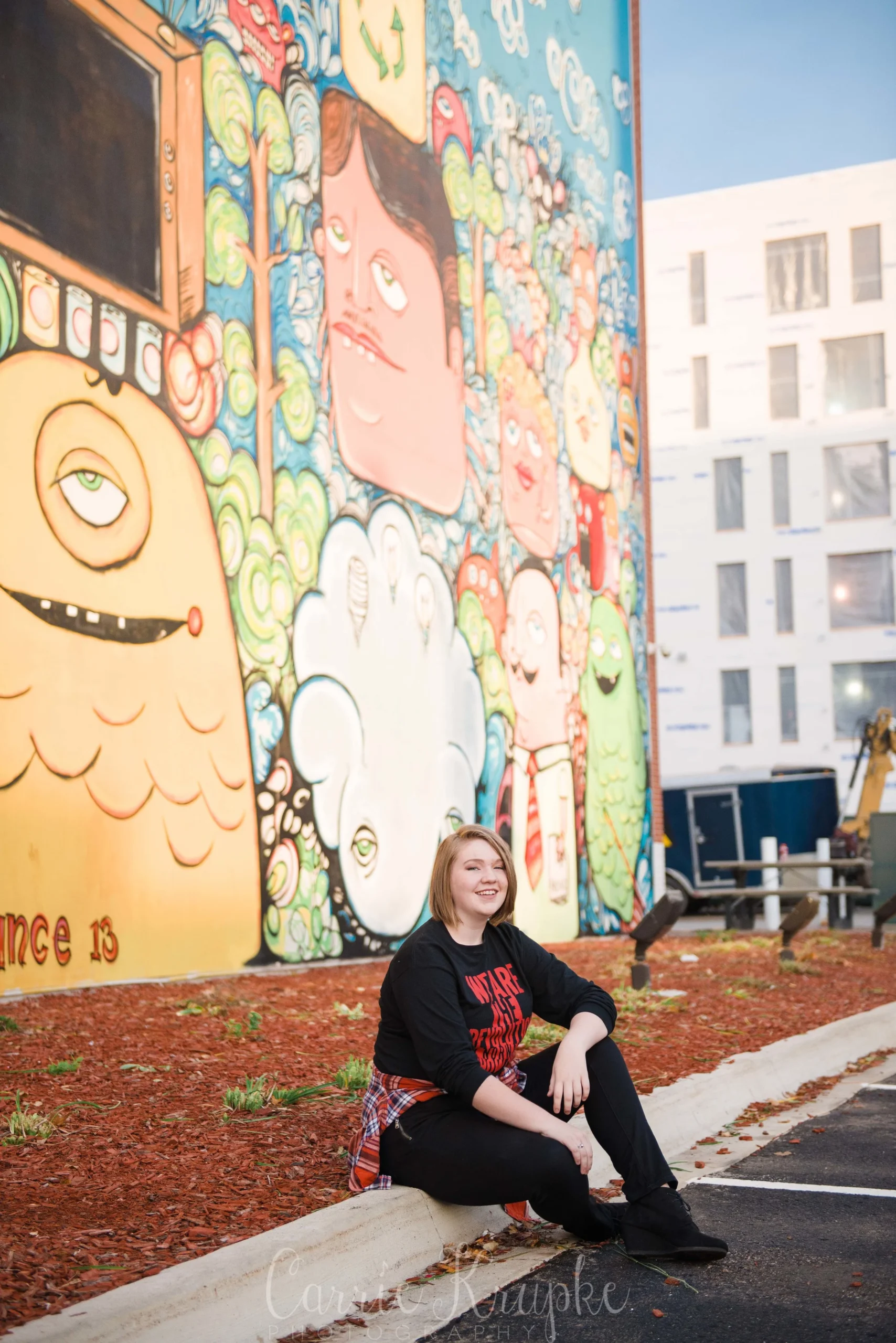 Spoken like a true future Art Major! I’m always intrigued by what our senior class members will be doing with their futures beyond high school and Alexis is looking at majoring in Art at University of Northern Iowa (if my memory serves me correctly!). Together, we explored downtown in a few new spots and then headed to Norwalk’s Performing Arts Center to wrap up our time on this beautiful, WARM(!), late October morning: