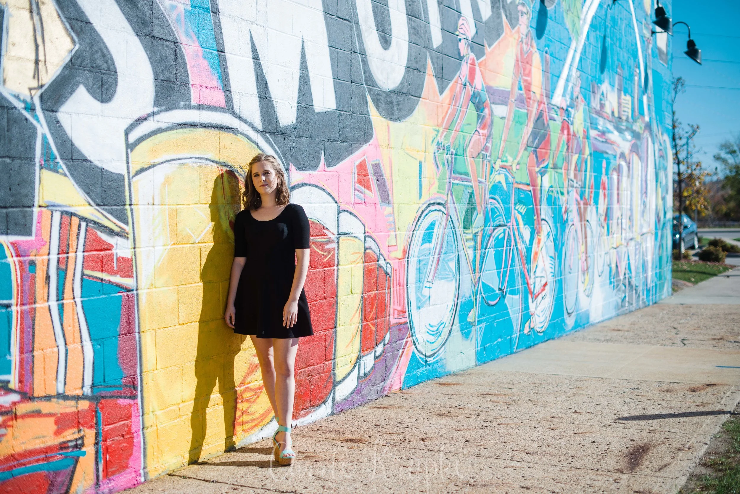 As we were headed to a spot on the east side of Des Moines, this wall caught my eye and Lizzy’s mom righted our course to find a parking spot. I LOVE carpooling with my senior clients so that I can have my eye out for spots such as this, while the driver looks out for traffic and parking!