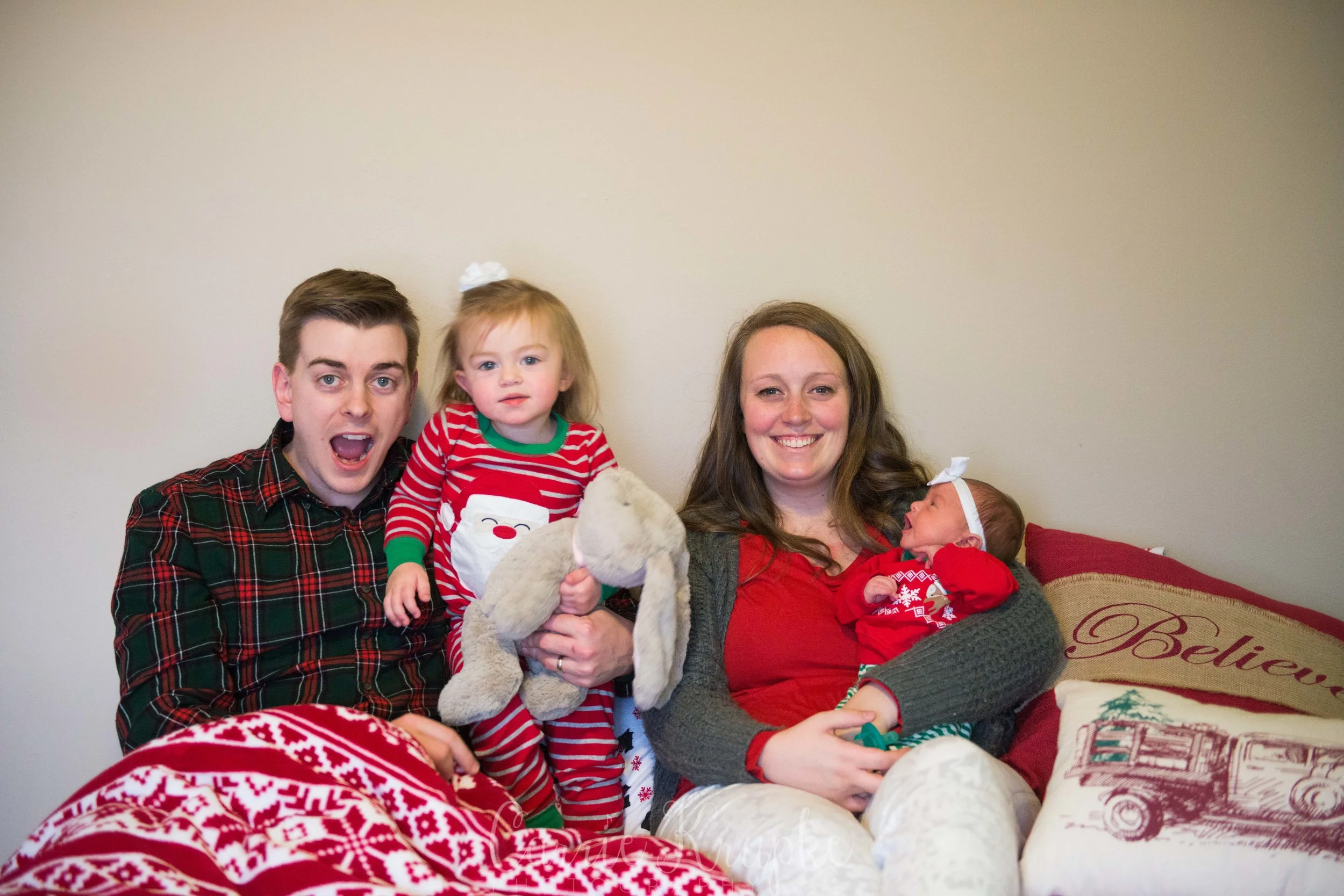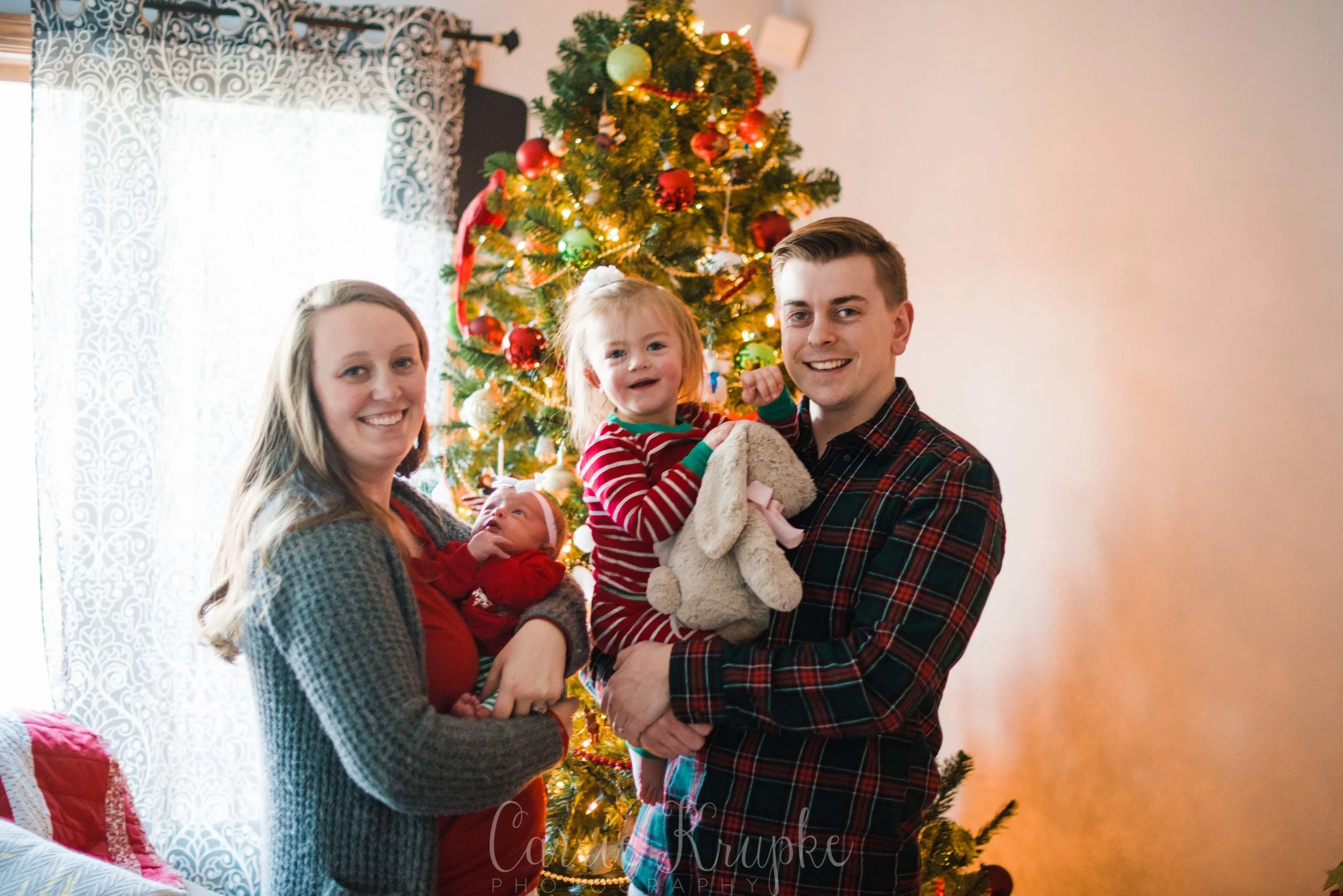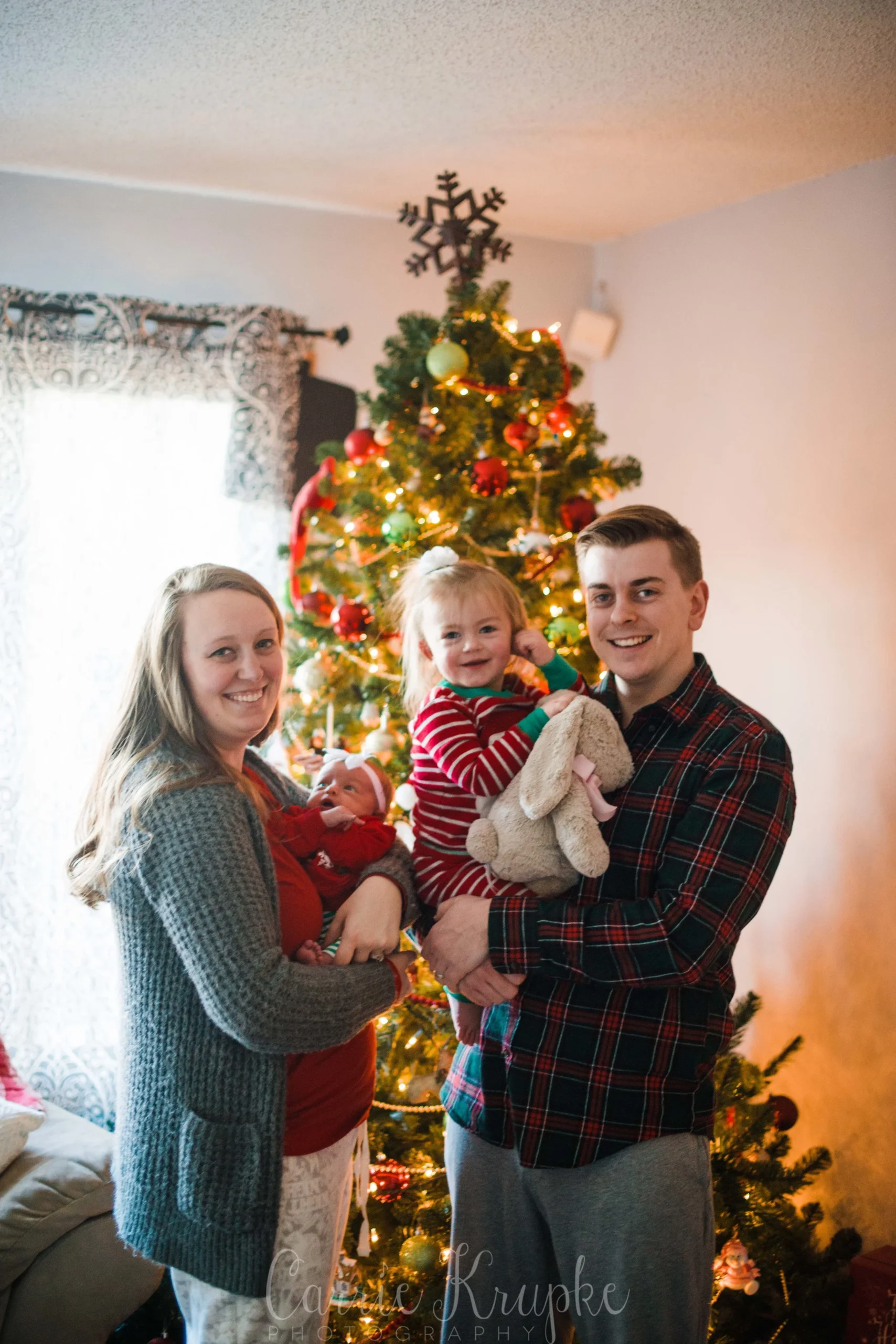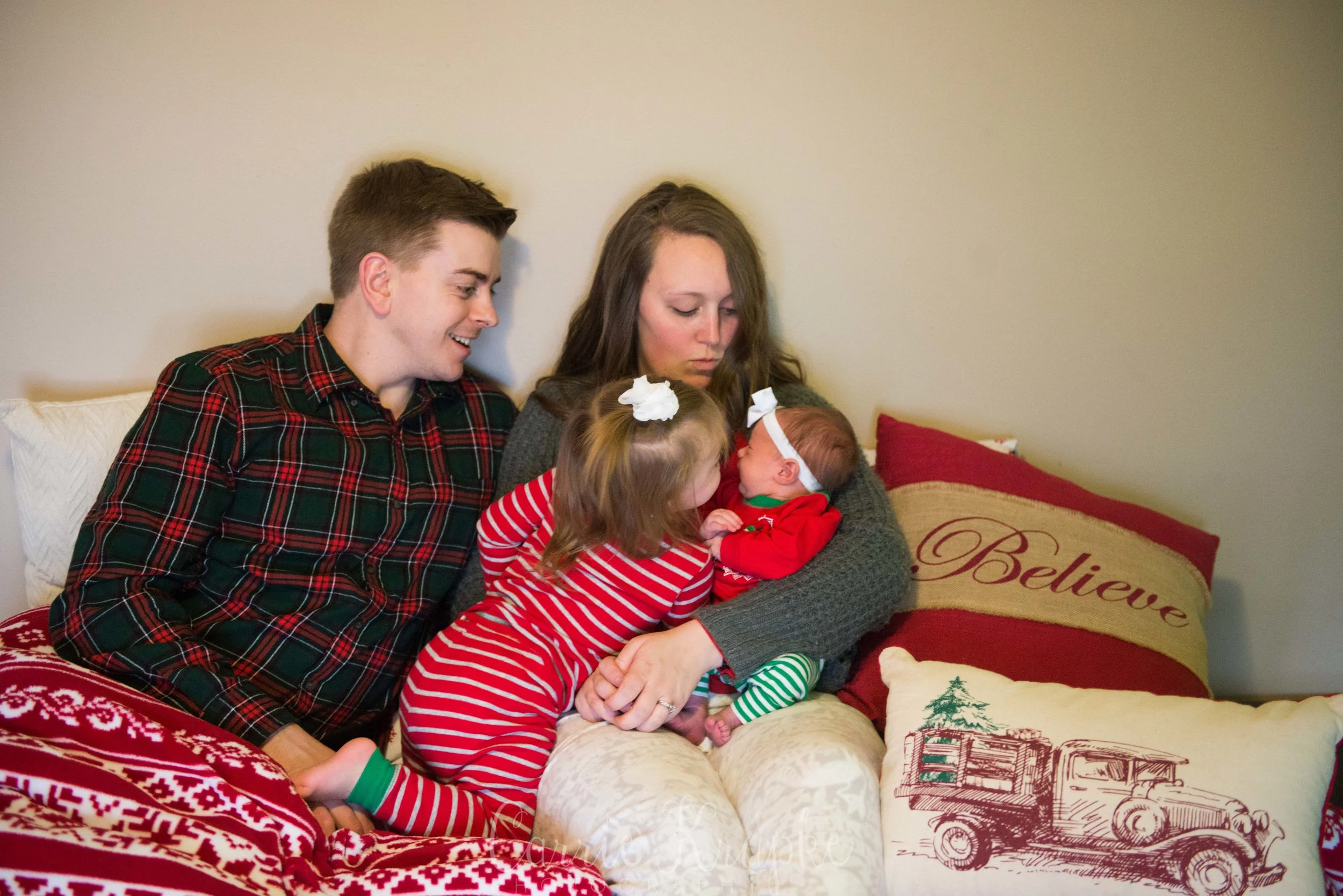 A dear friend of mine referred her cousin, Leah, to me for her family’s photos. So, Leah contacted me earlier this fall for when their newest addition was set to arrive late November/early December. What a sweet, sweet family of (now) four! Delayed slightly by some doctor’s appointments, we went for a more lifestyle approach to this session and it cemented in my mind a new approach to newborn photography for my business. It was more relaxed, captured their family as they truly are and didn’t exhaust all members involved! With Christmas decorations up (since this was done the week before the holiday), it created a charming backdrop for this precious time in their lives. Neil even had the “fireplace” going with holiday tunes for ambiance.