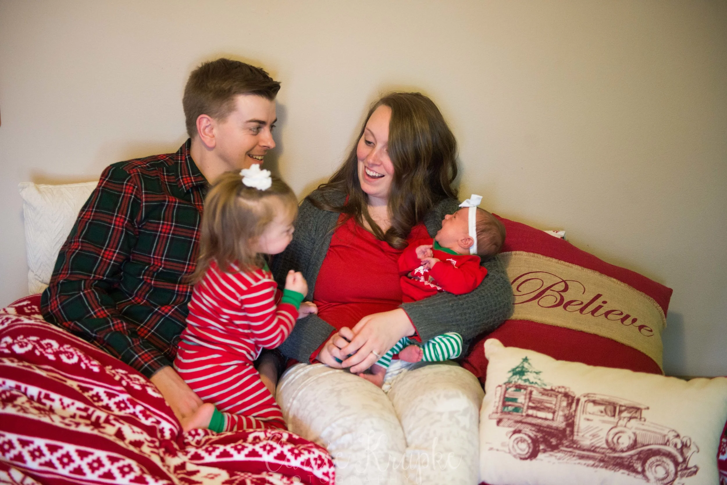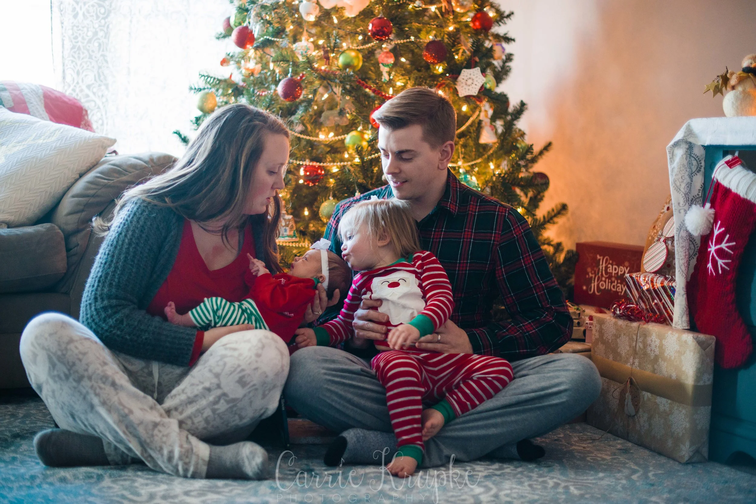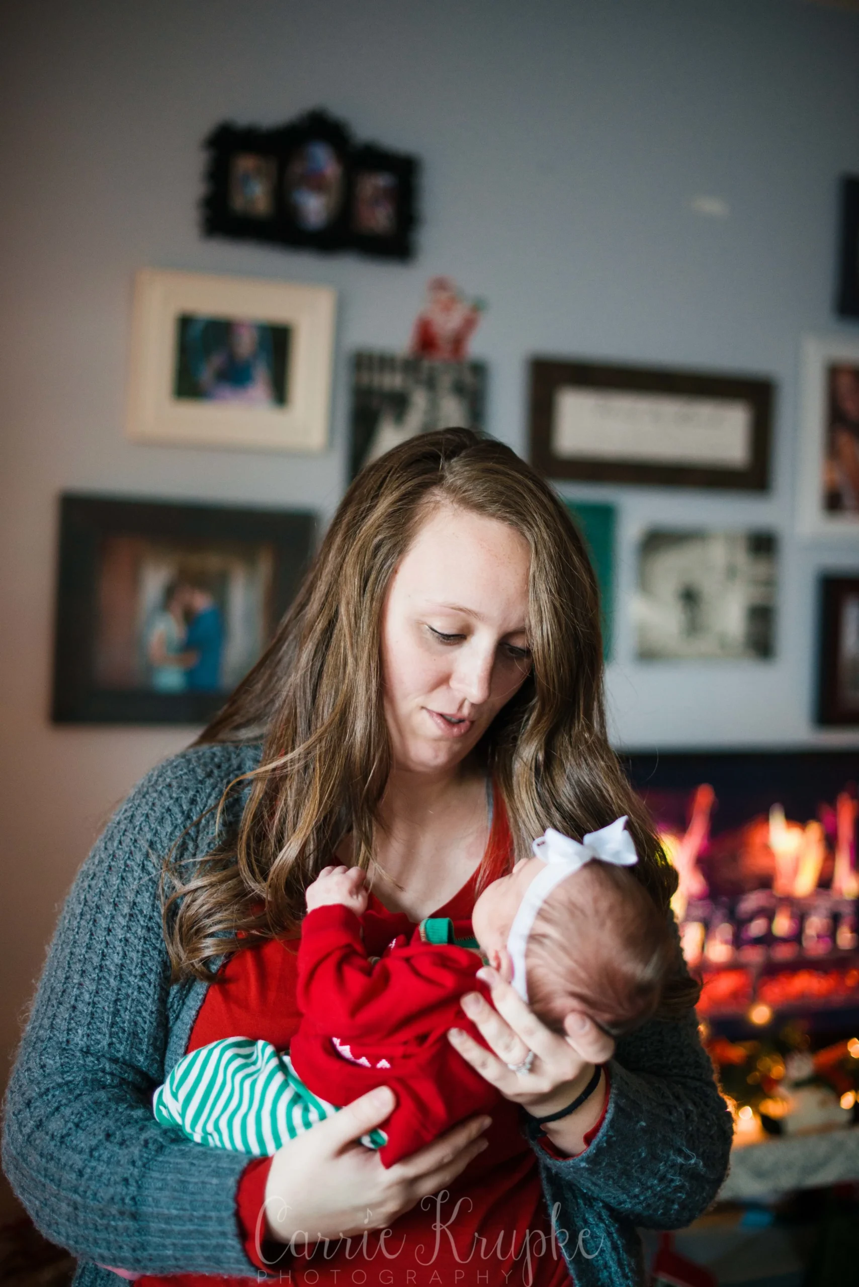 A dear friend of mine referred her cousin, Leah, to me for her family’s photos. So, Leah contacted me earlier this fall for when their newest addition was set to arrive late November/early December. What a sweet, sweet family of (now) four! Delayed slightly by some doctor’s appointments, we went for a more lifestyle approach to this session and it cemented in my mind a new approach to newborn photography for my business. It was more relaxed, captured their family as they truly are and didn’t exhaust all members involved! With Christmas decorations up (since this was done the week before the holiday), it created a charming backdrop for this precious time in their lives. Neil even had the “fireplace” going with holiday tunes for ambiance.