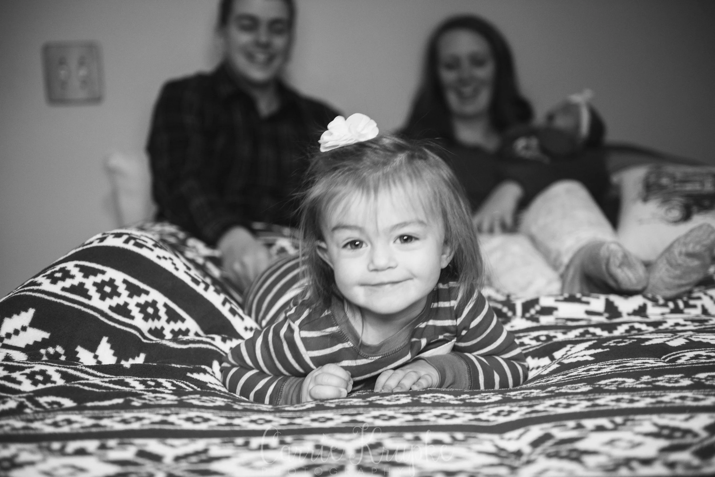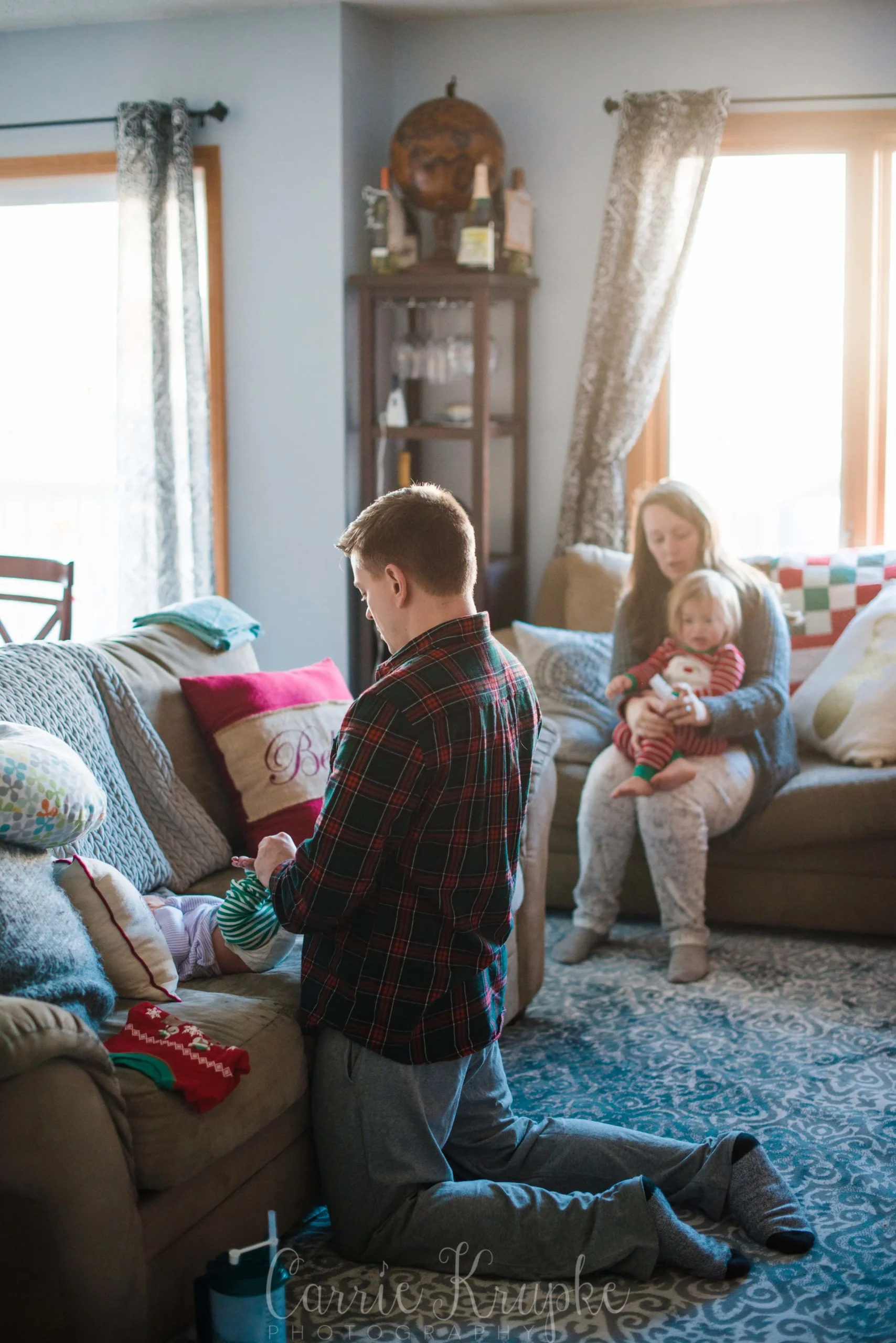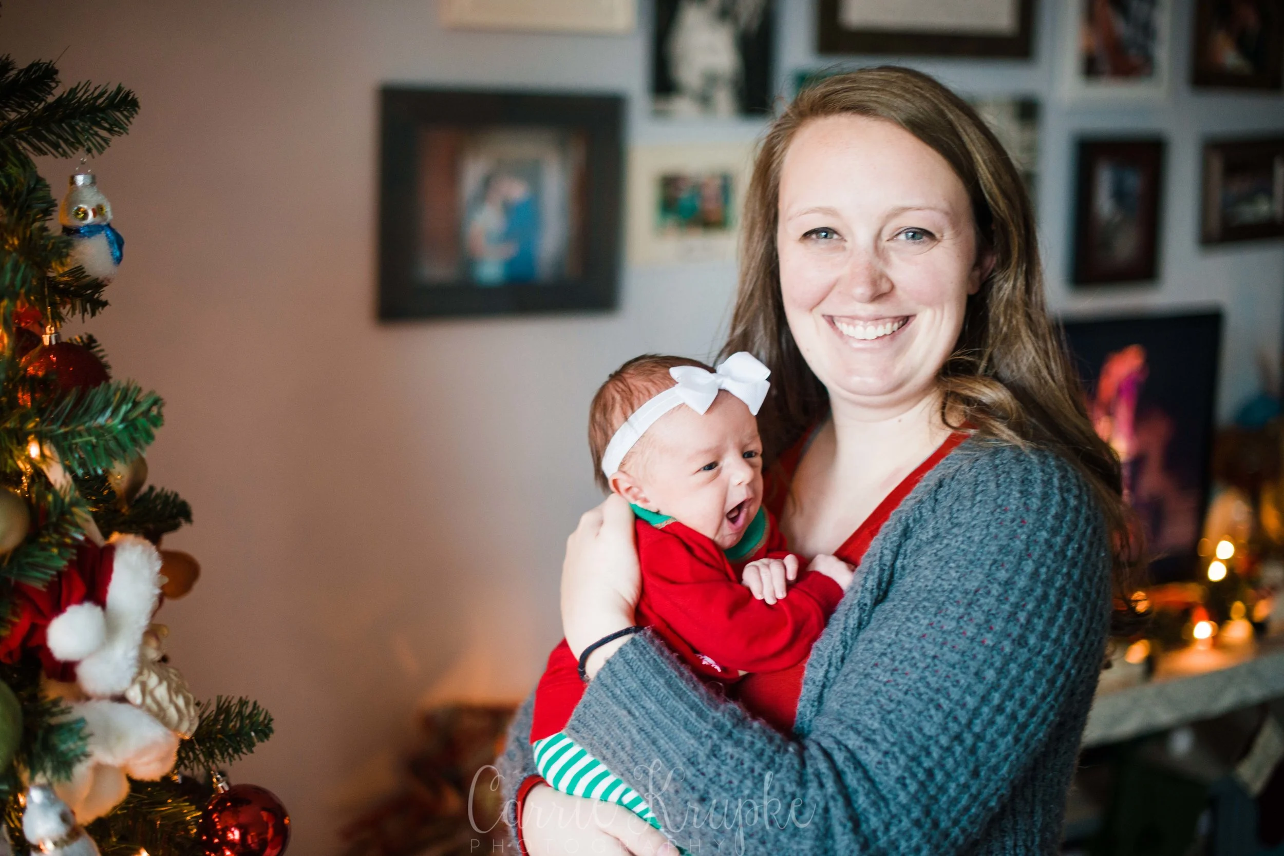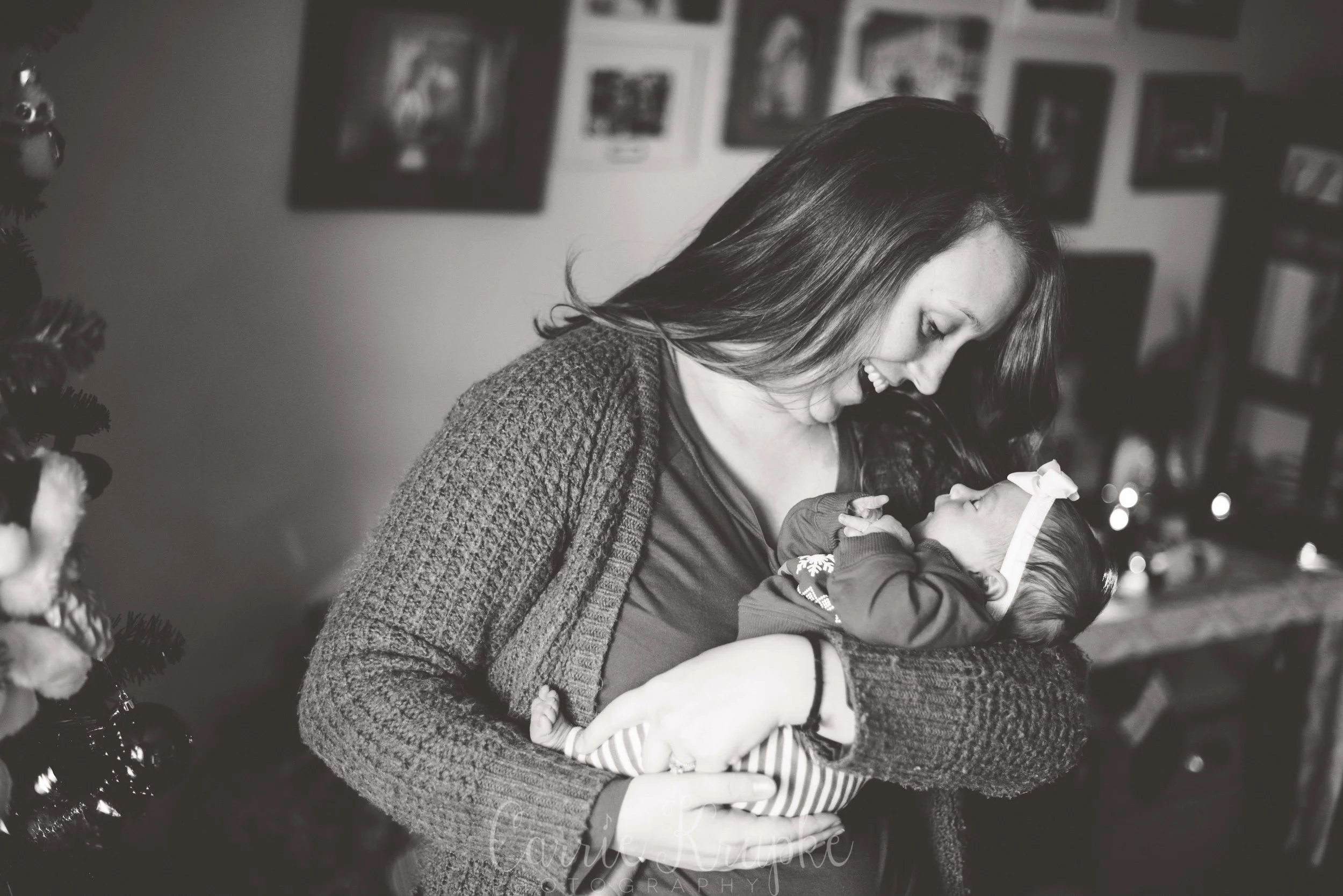 A dear friend of mine referred her cousin, Leah, to me for her family’s photos. So, Leah contacted me earlier this fall for when their newest addition was set to arrive late November/early December. What a sweet, sweet family of (now) four! Delayed slightly by some doctor’s appointments, we went for a more lifestyle approach to this session and it cemented in my mind a new approach to newborn photography for my business. It was more relaxed, captured their family as they truly are and didn’t exhaust all members involved! With Christmas decorations up (since this was done the week before the holiday), it created a charming backdrop for this precious time in their lives. Neil even had the “fireplace” going with holiday tunes for ambiance.