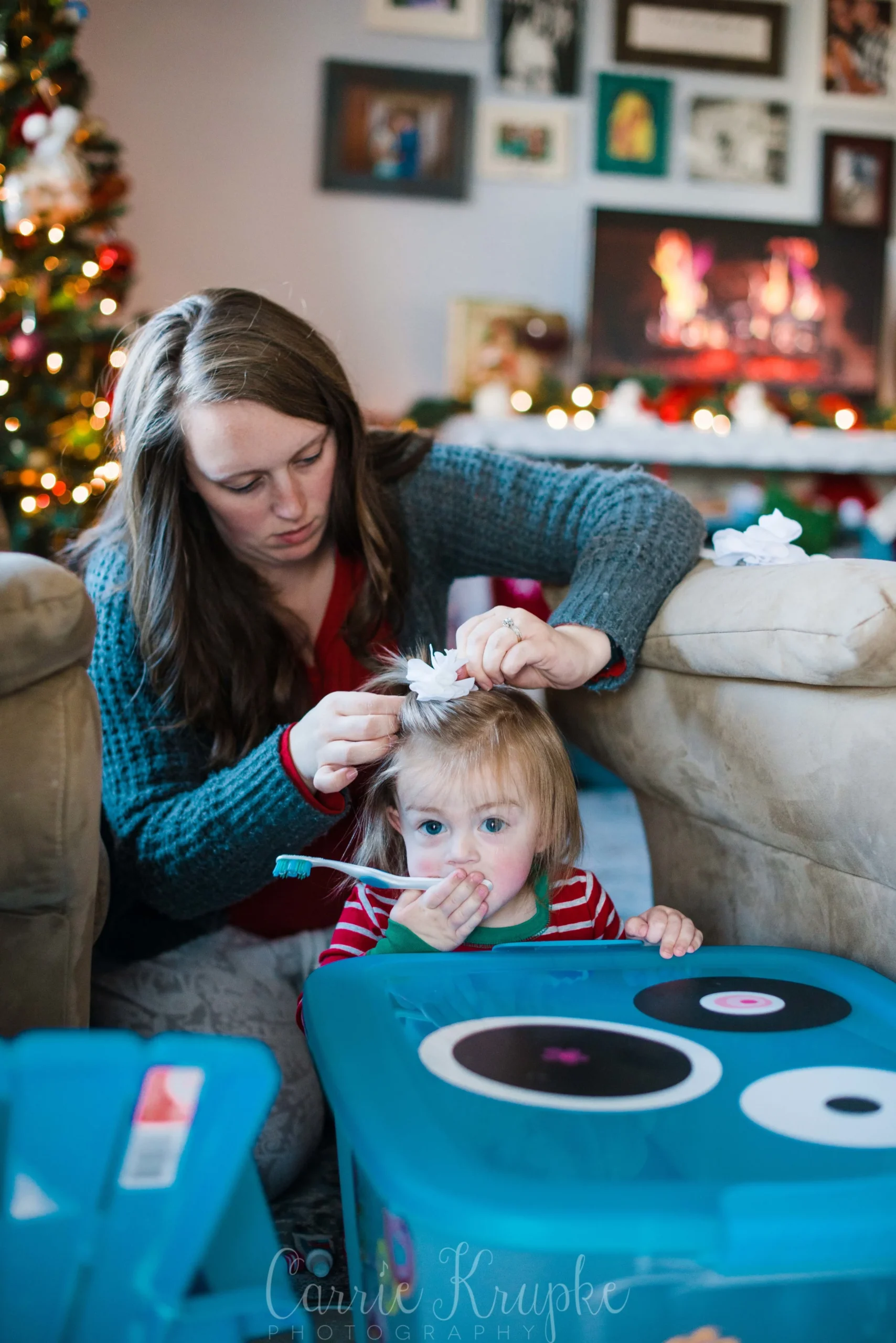 After a round of diaper changes and hair fixing, we focused on the newest addition, Ms. Adeline: