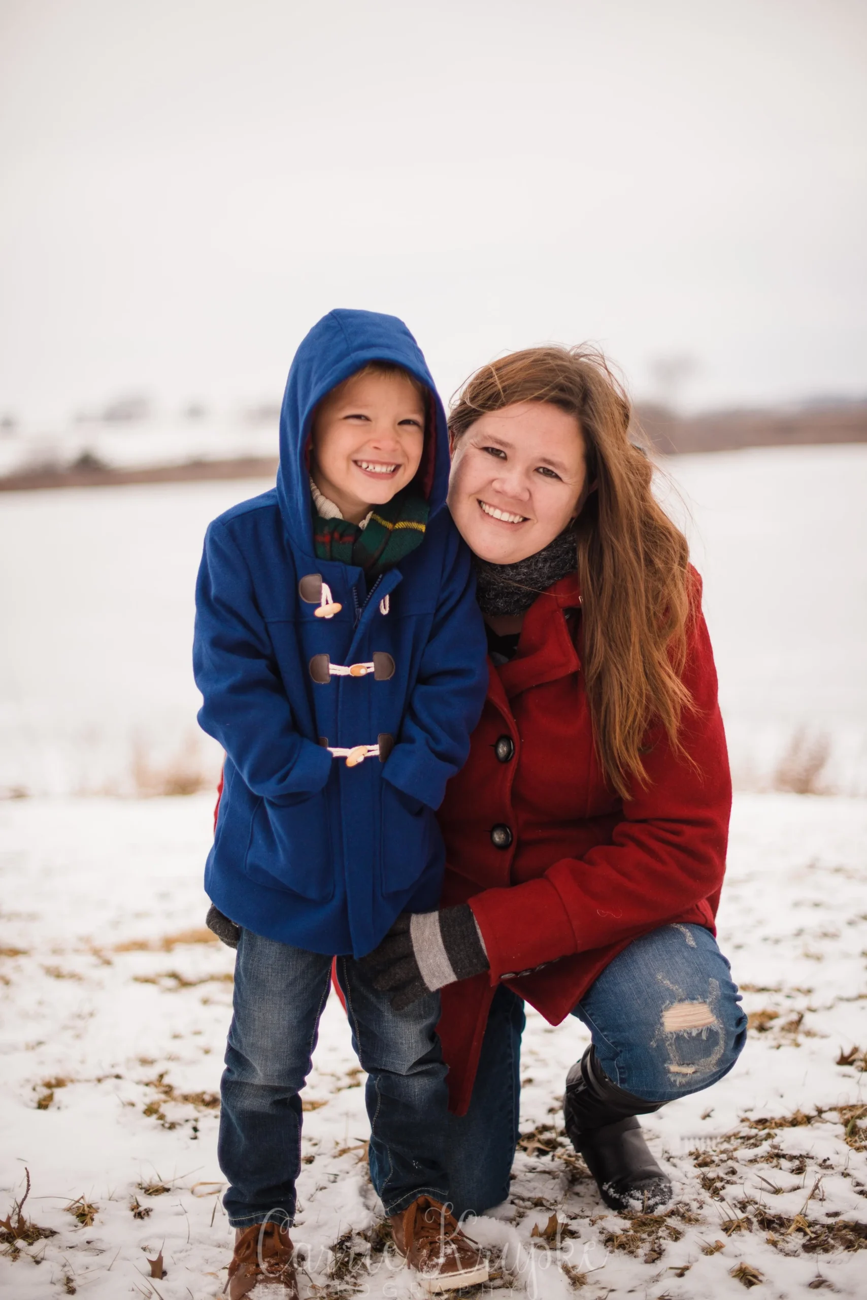 The good Lord knows when Stacy’s coming to Iowa because He delivers snow just for her and her son, Soren. And just like the book, When You Give a Mouse a Cookie, one thing leads to another and When You Give Stacy Snow, she’ll want a photo session. Even though it was roughly 20 degrees out and windy. We did our best to capture Soren, Stacy and their extended family members as quickly as possible and all party members were such troopers!!!