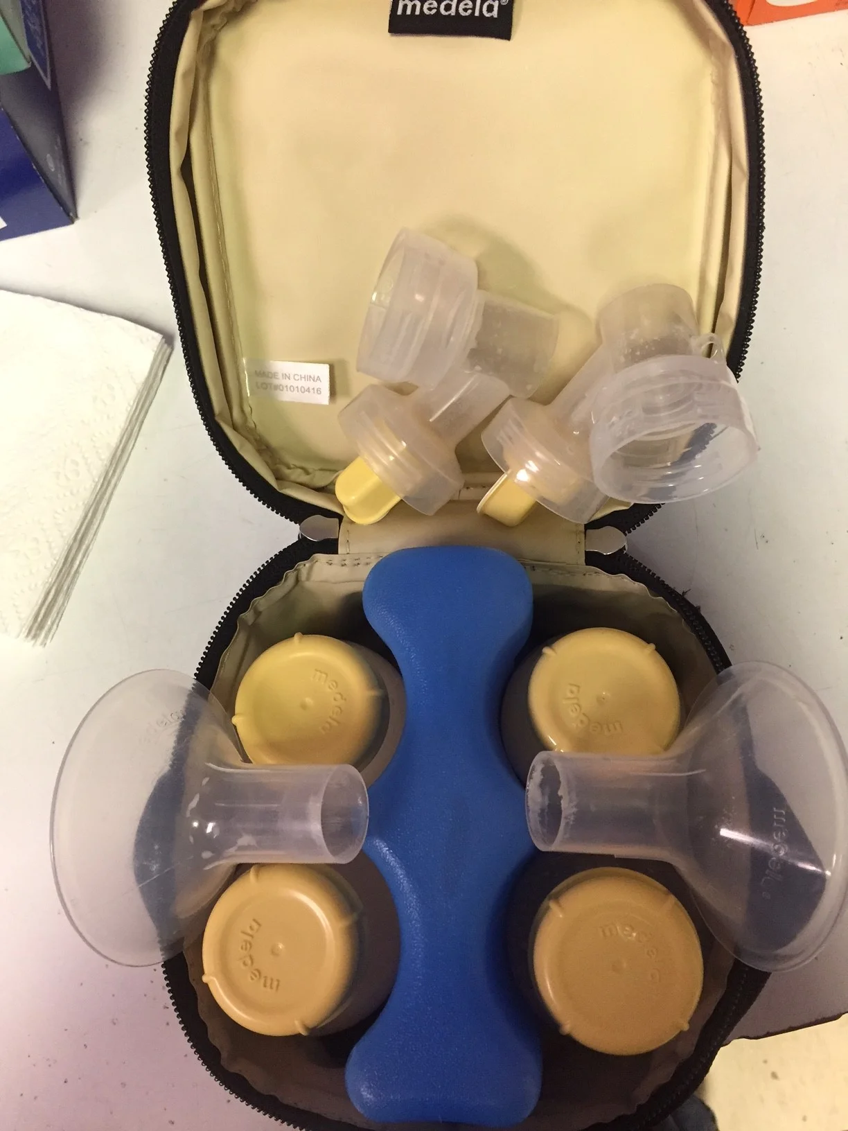 Lastly, a list of things I have in my pump bag or on hand to make things run smoothly at work: