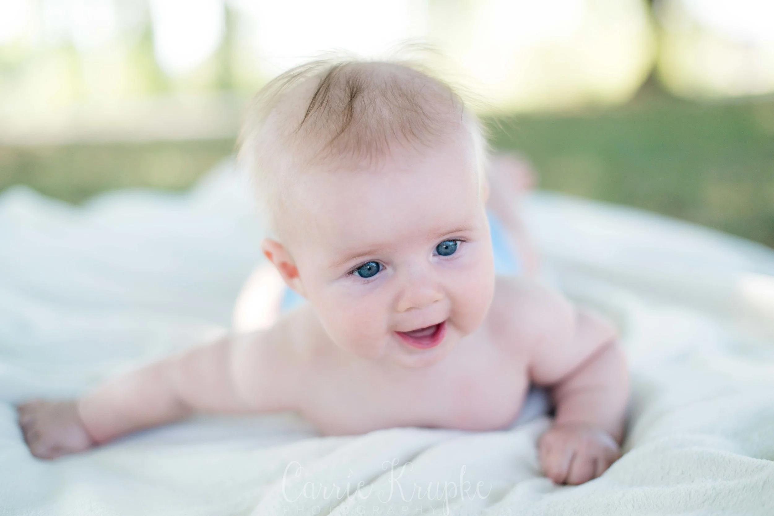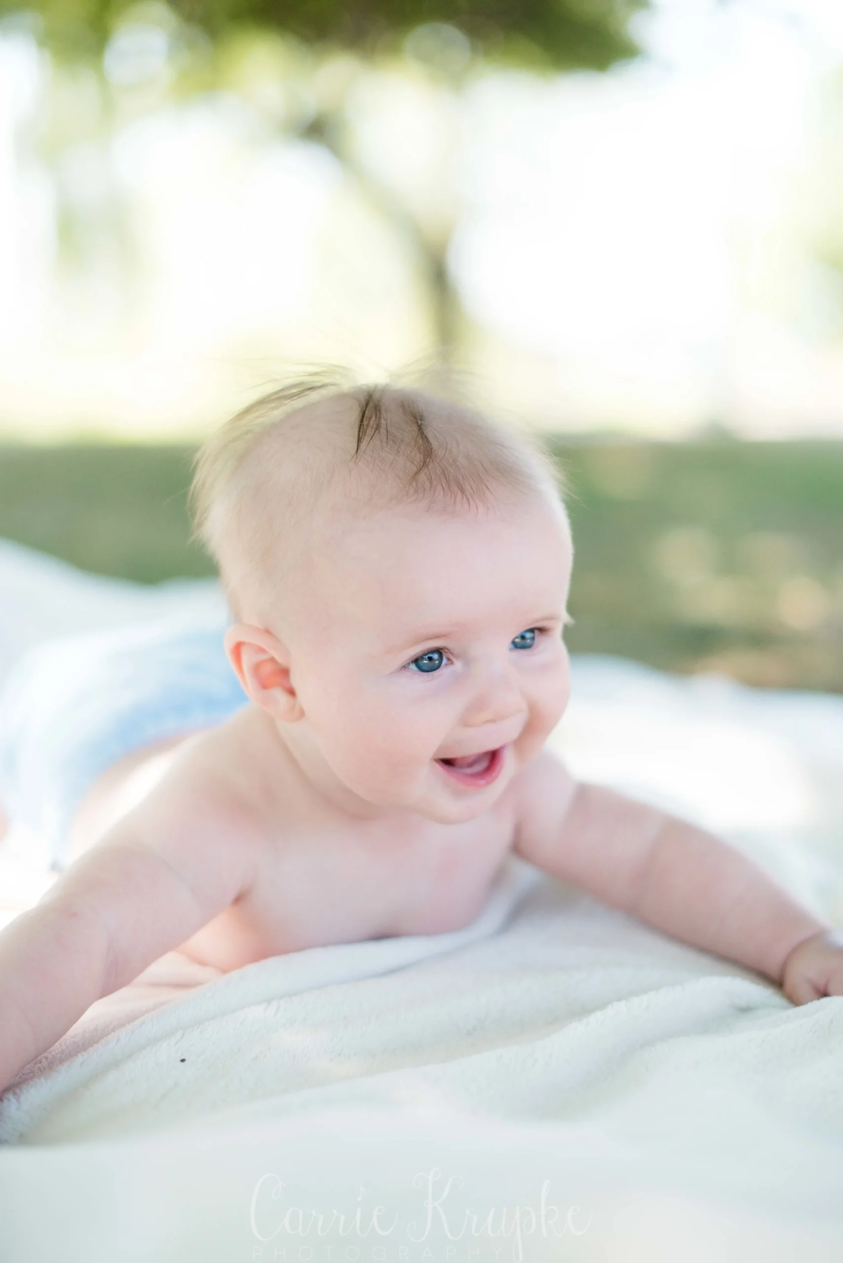 We first met Mr. W a few months back and it was high time for his Tummy Time shoot! But, when the skies are blue and his eyes even blue-er, we start tummy up!