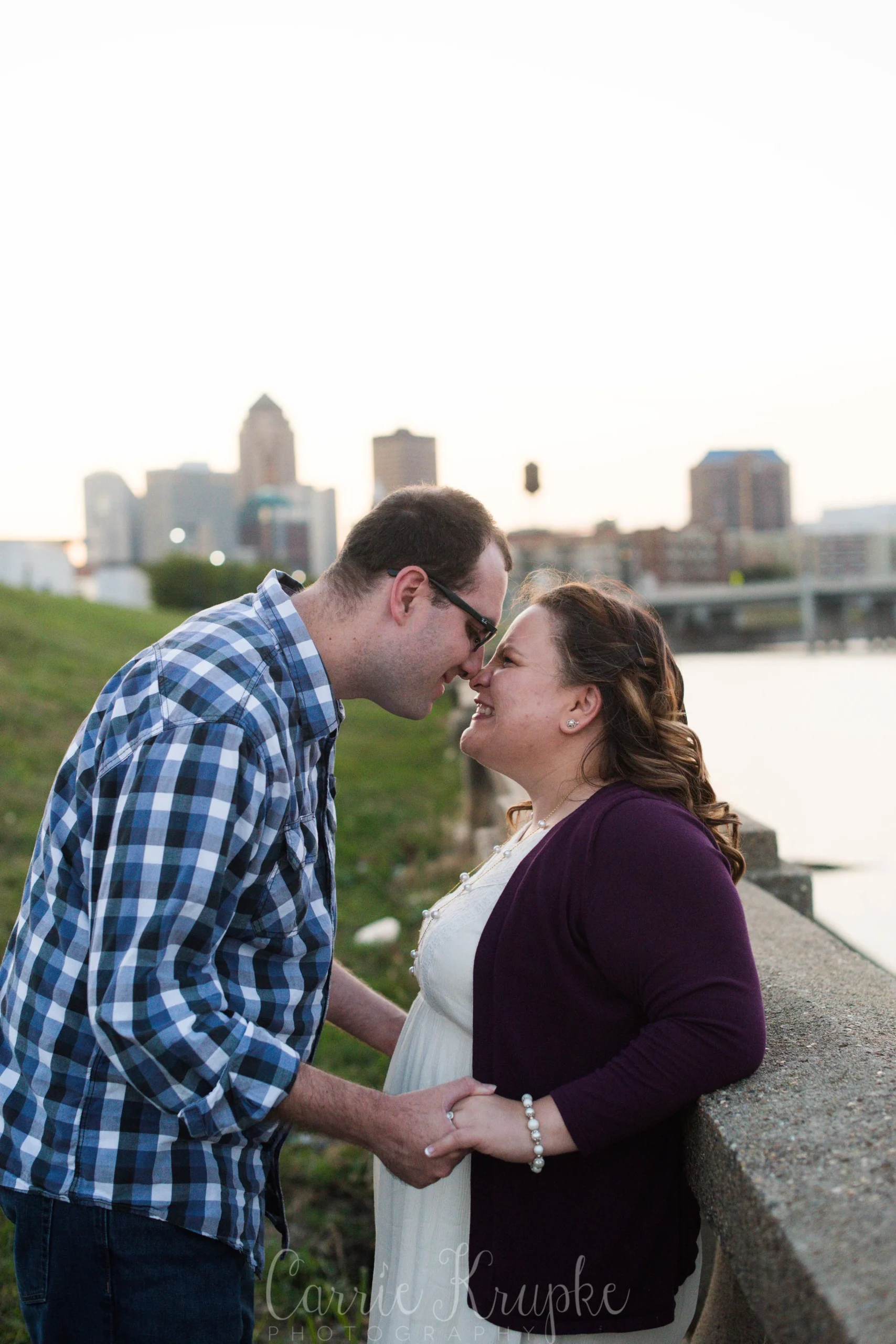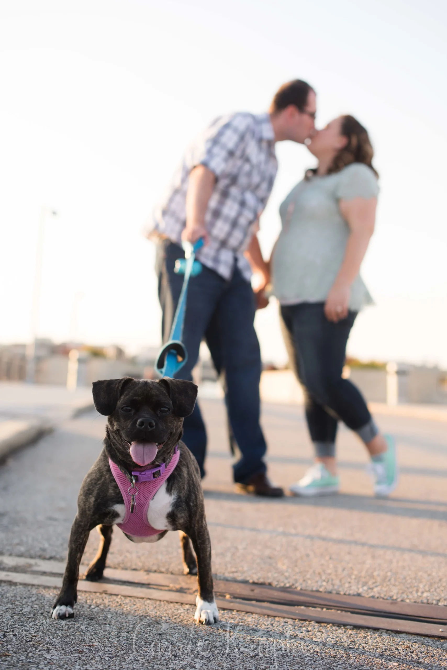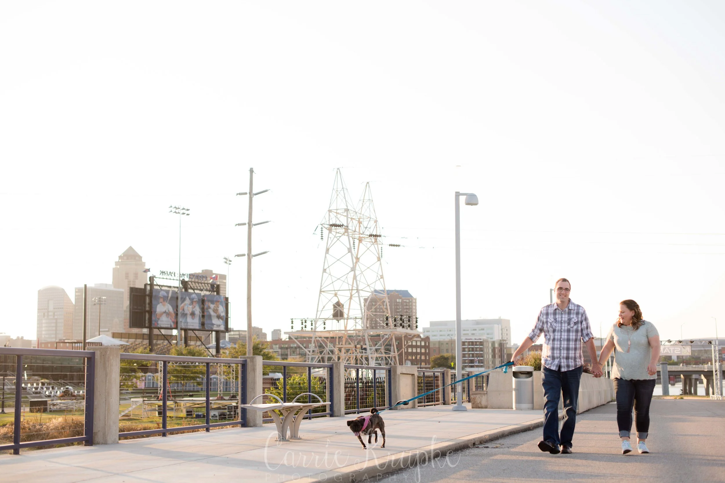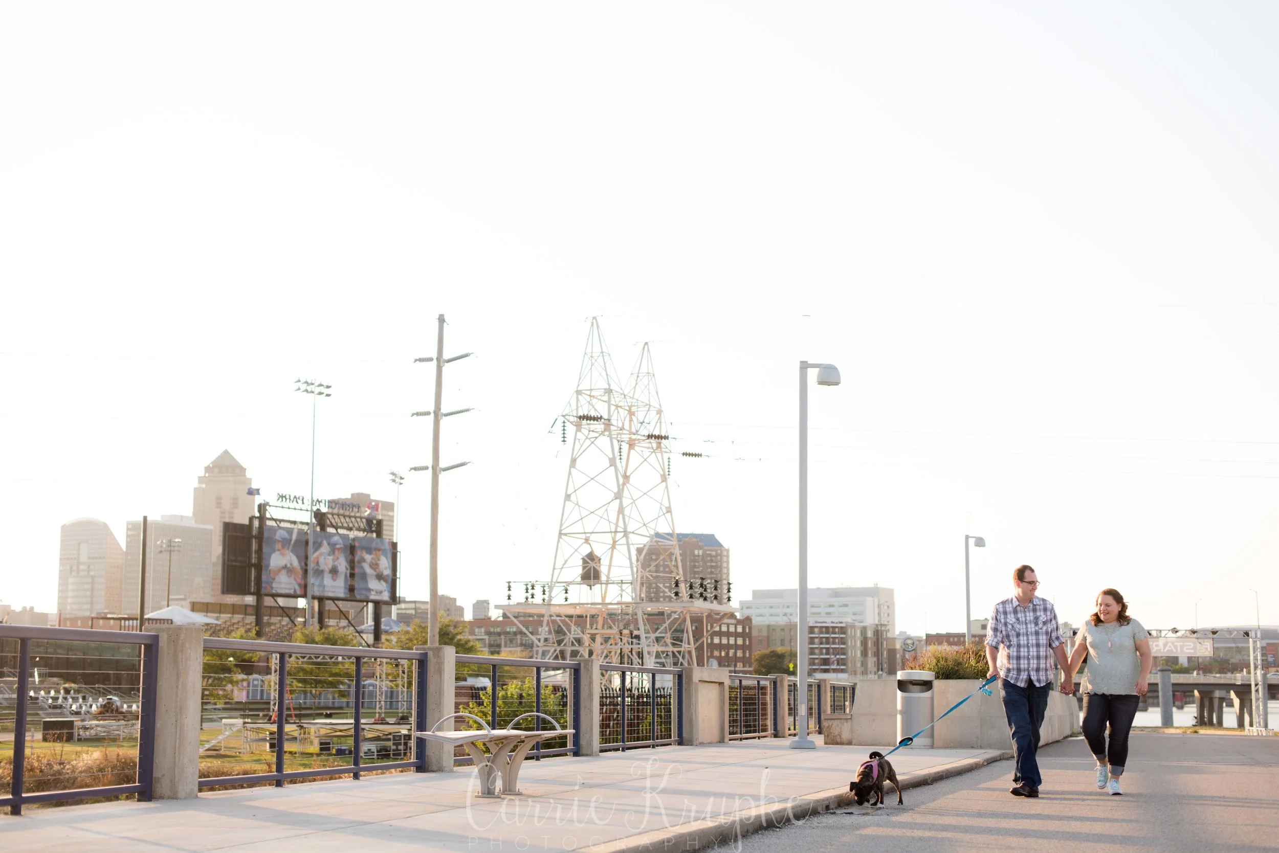 A few slobbery kisses (from Bella, not each other) later and we walked over to the river walkway/bike trail. I love this spot because there isn’t any vehicle traffic with a great view of downtown. This part was safe, for sure. It’s the following adventure we took that was semi-questionable. 🙂