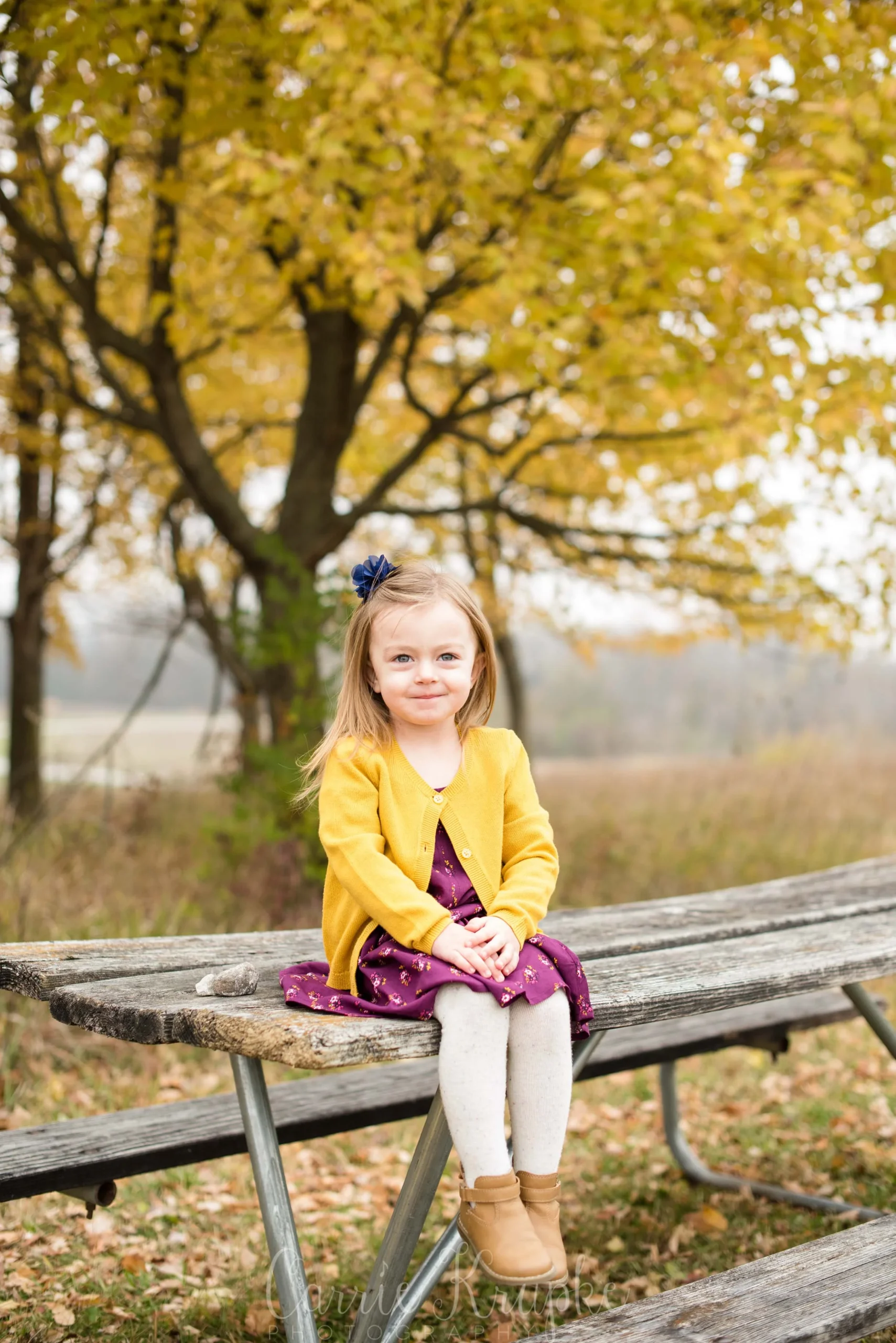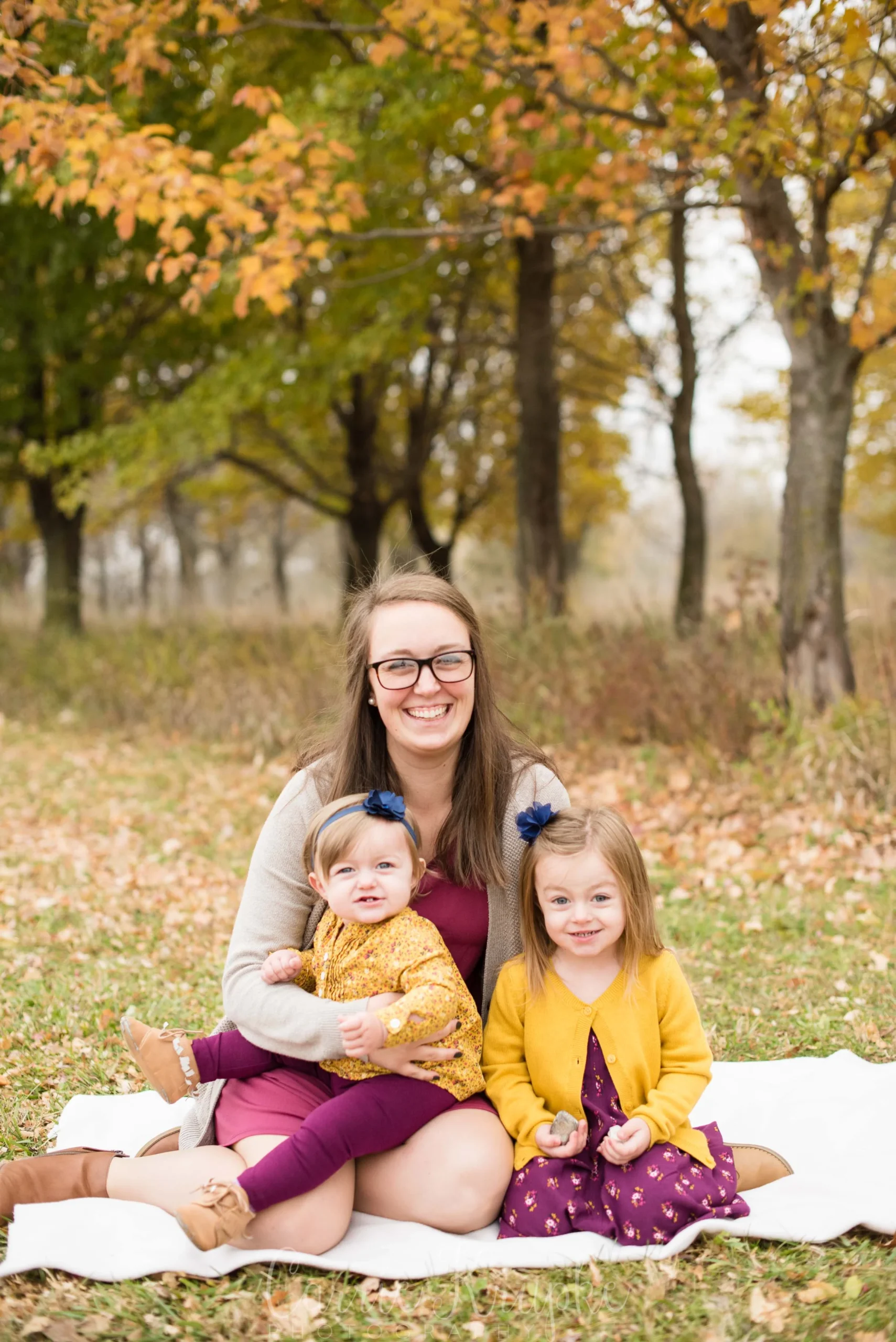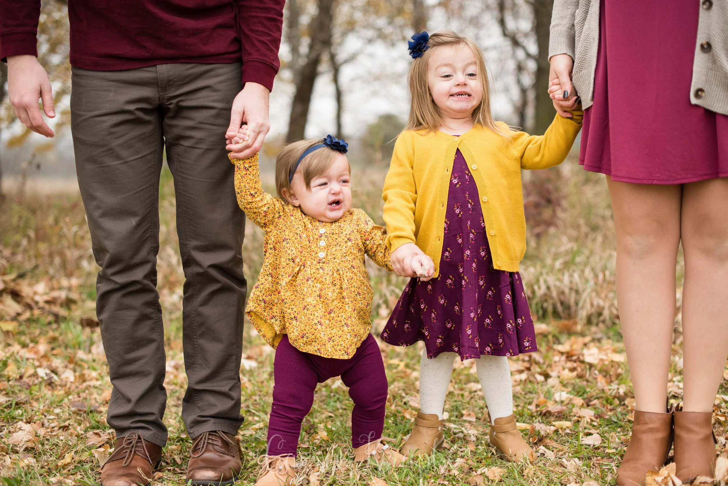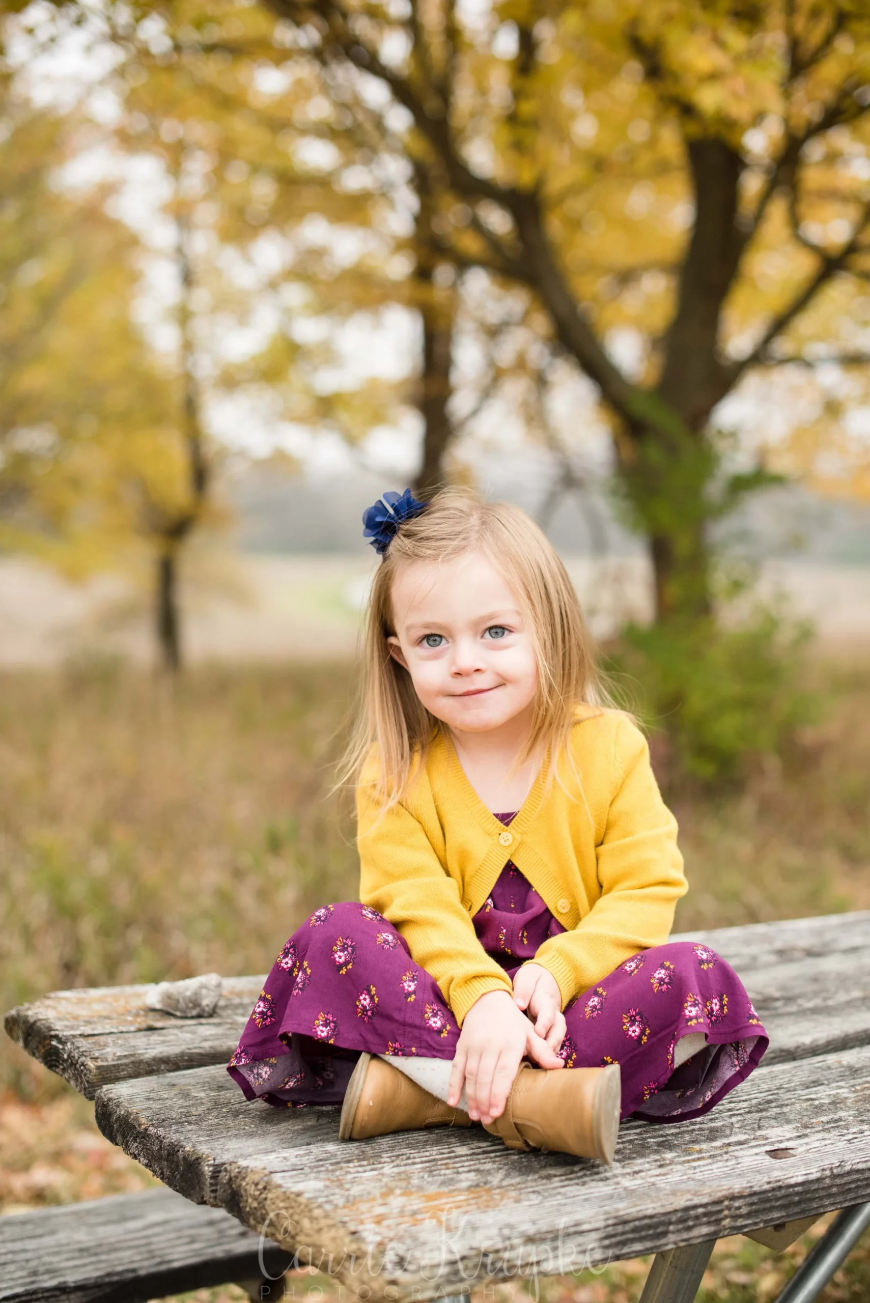 Oh my goodness, are these little girls so darling or what!? I first met this sweet family almost a year ago and I was floored that a new-again Mama had gotten Christmas decorations out with a fully decked out tree and everything in the midst of adjusting to a newborn! Leah and Neil are both rockstars and their girls, Sedelle and Adeline, did such a great job for their photos in this fall mini session! We started with Sedelle while Leah got Adeline changed: