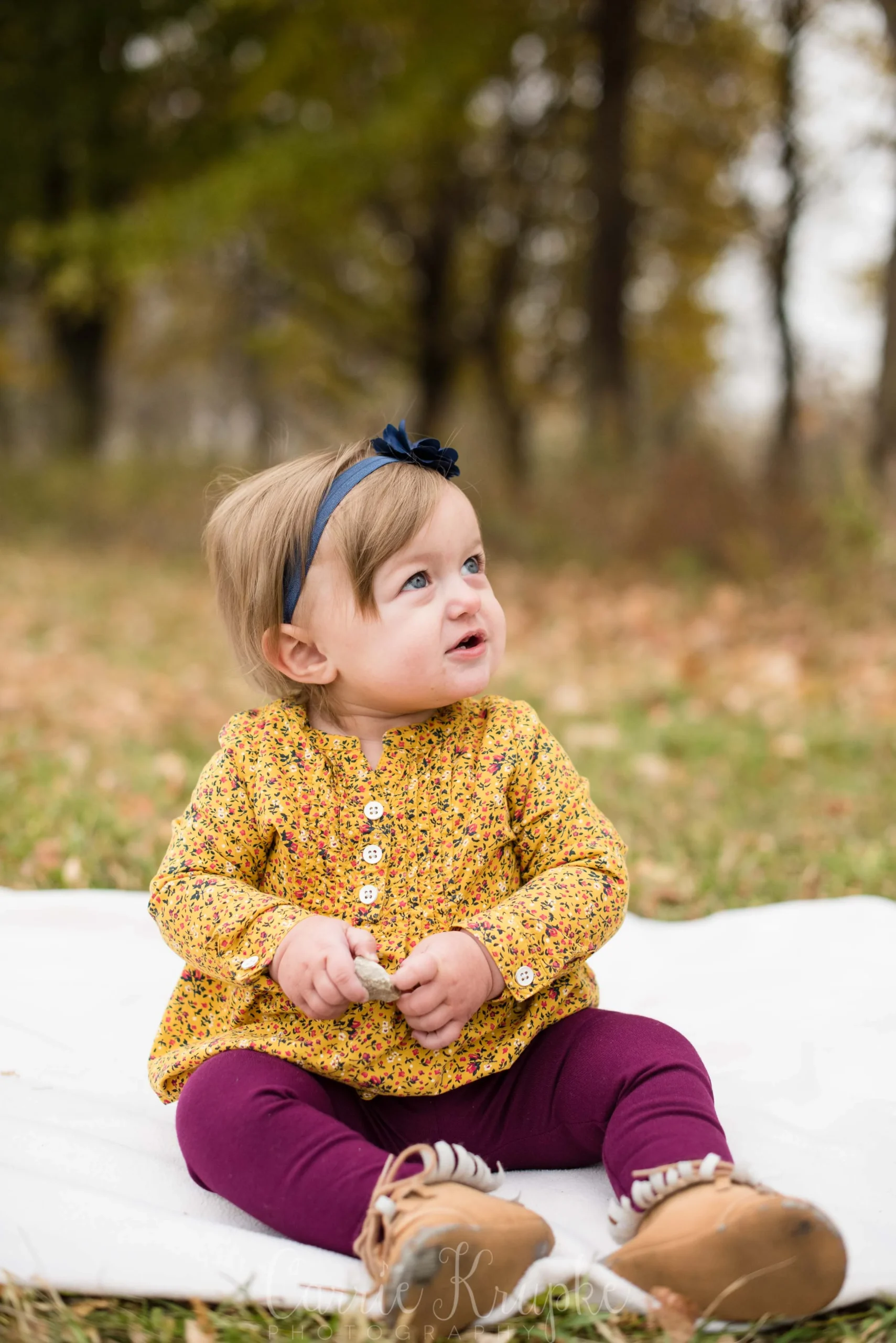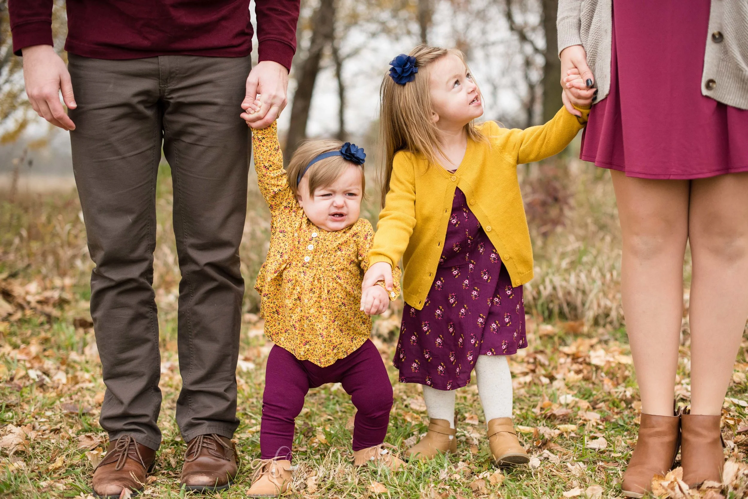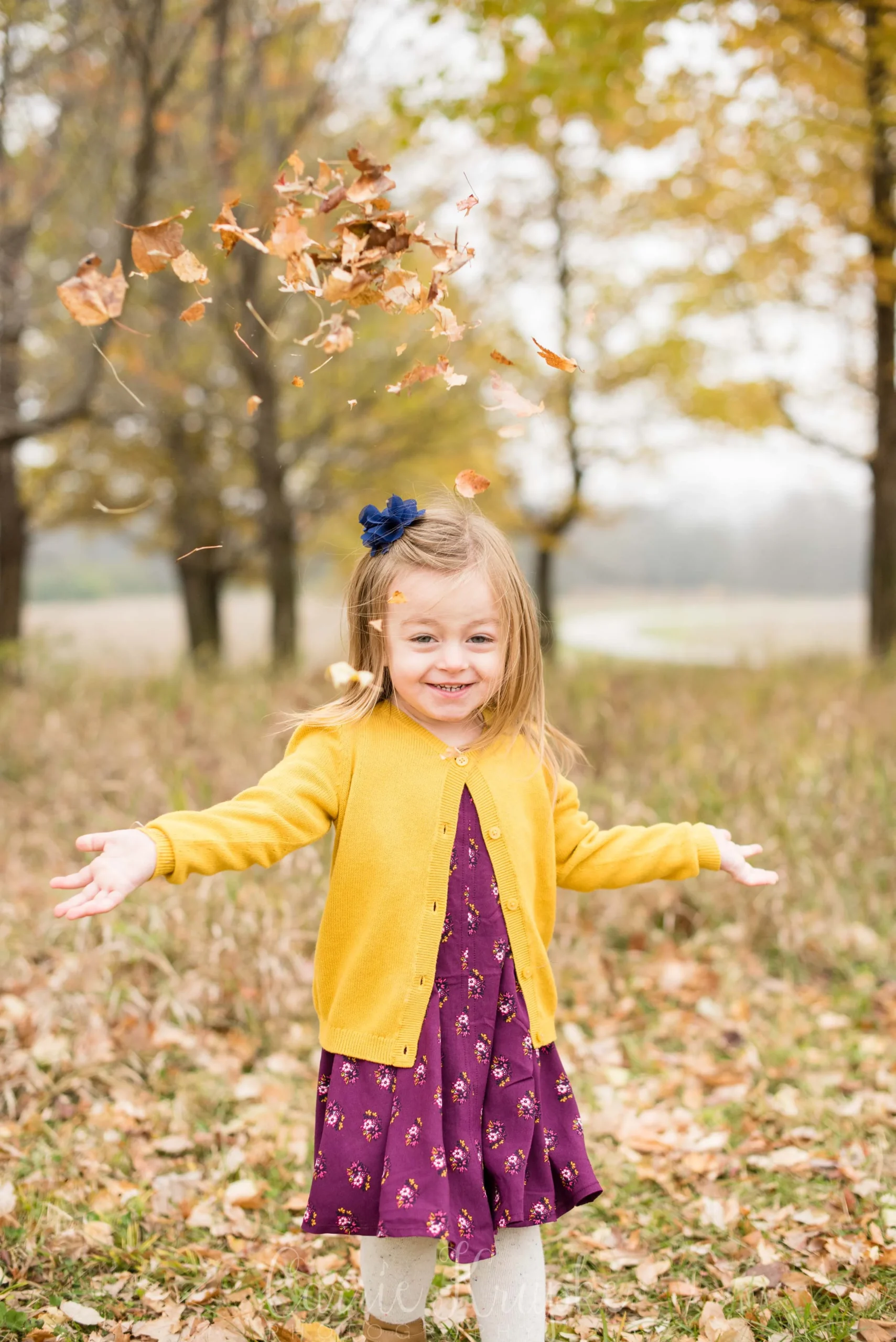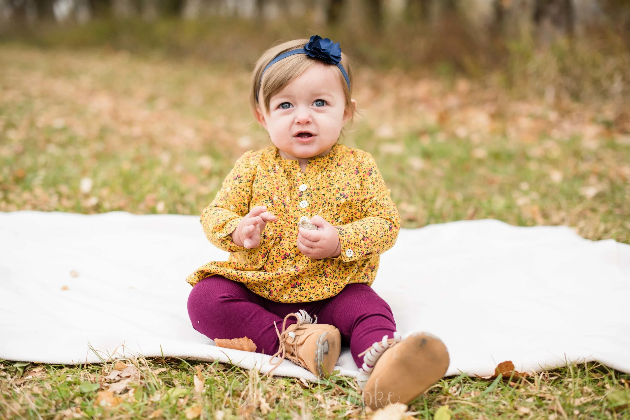 Oh my goodness, are these little girls so darling or what!? I first met this sweet family almost a year ago and I was floored that a new-again Mama had gotten Christmas decorations out with a fully decked out tree and everything in the midst of adjusting to a newborn! Leah and Neil are both rockstars and their girls, Sedelle and Adeline, did such a great job for their photos in this fall mini session! We started with Sedelle while Leah got Adeline changed: