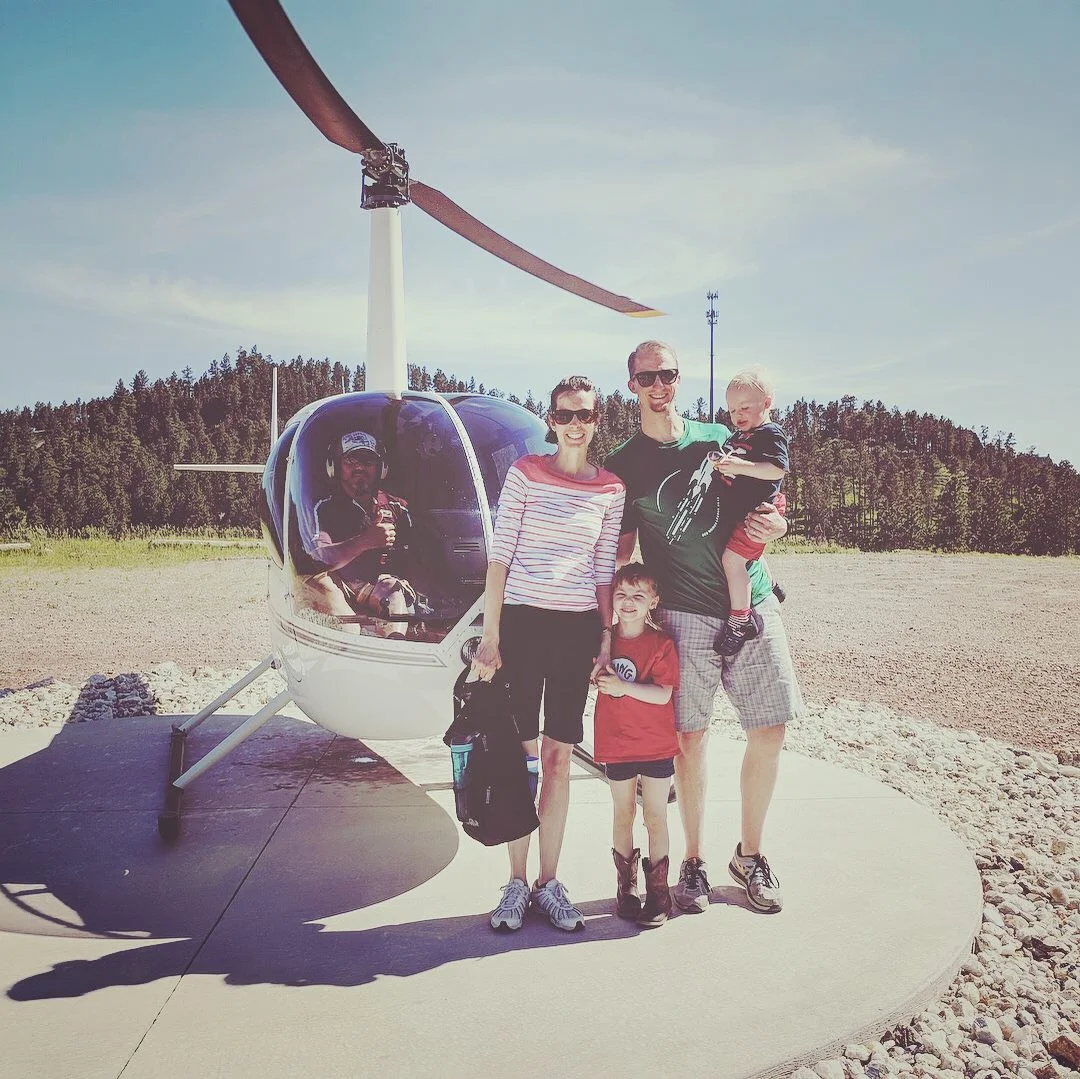 Wednesday June 13th: We started our morning early at Mt. Rushmore (the kids slept better in their designated places, and were still up early). Thankful to get to Rushmore before the big rush of tourists (see what I did there?), took the Presidential Trail that led us to look up Washington’s nose and headed back into town for Bear Country (a drive-through zoo, if you will), lunch and nap. After nap, we did a helicopter ride for a different view altogether! Check one off my Bucket List and Loch was enthralled!