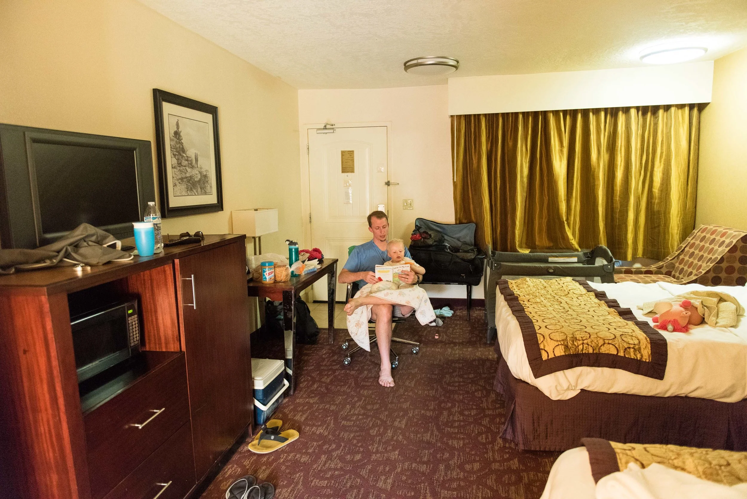 Monday June 11th: leave at 8:00pm after I finished up a senior session, leave for Sioux Falls to help break up the ride to Mt. Rushmore. We drove through CRAZY rain (thankful for that stuff they put on our windshield when we had the car checked over prior to leaving), were in awe of an incredible sunset, and were very thankful for an 80mph speed limit. (I have the occasional lead foot….) Arrived in Sioux Falls at 11:30pm to a hotel room without the beds made yet, so we scored another one down the hall. Took the kids a little bit to fall back asleep, but we made it work with Loch sleeping on Gerard’s chest most of the night.