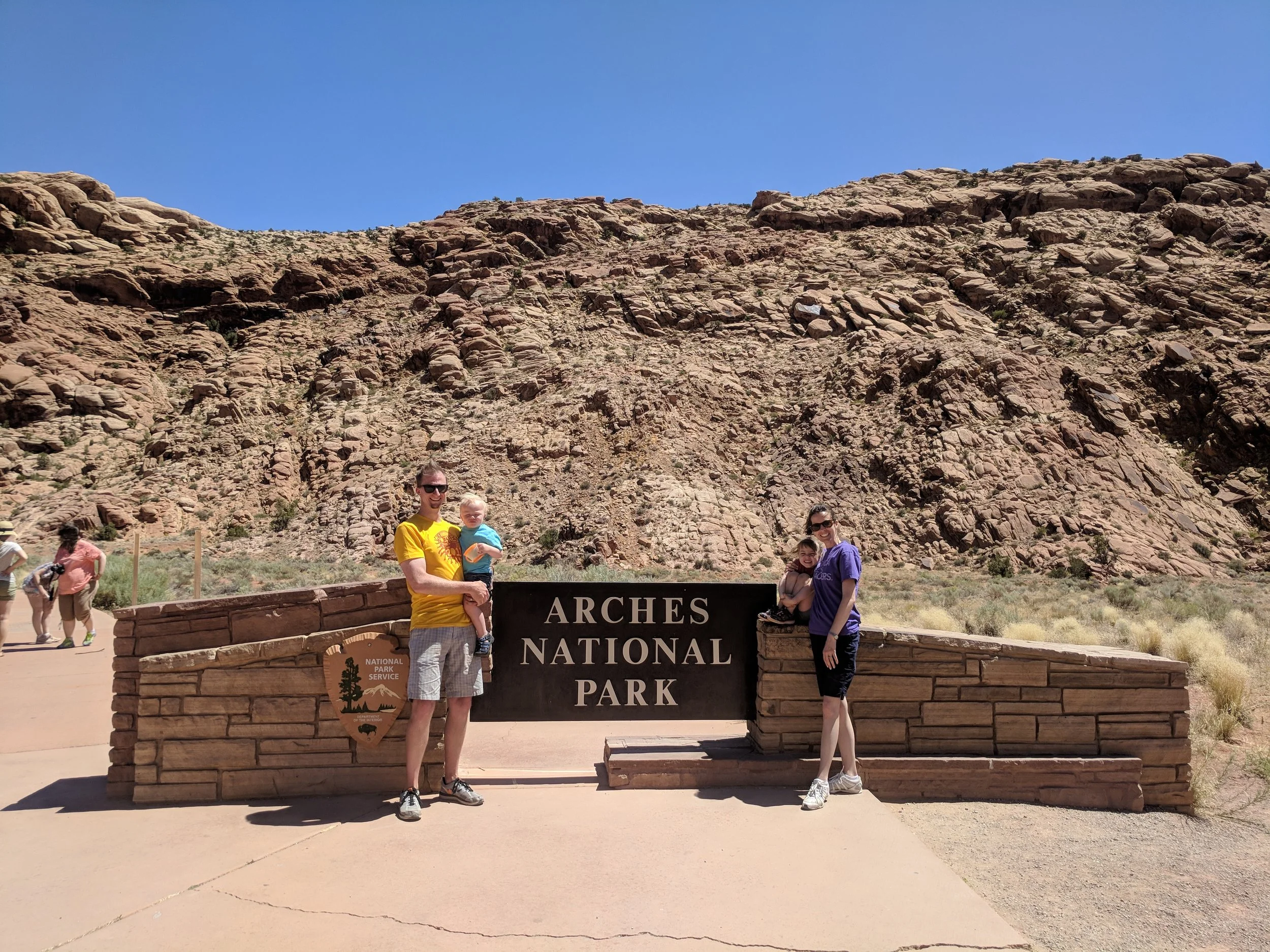 Sunday June 17th: more park play, came home to pack up, had lunch and drove 3.5hrs to Moab, UT for Arches Nat’l Park. To stretch our legs, we walked up and down the main street thoroughfare, had a ribs dinner from a food truck, found gelato for Laidy & Mommy, and ice cream & a souvenir shirt for Daddy.