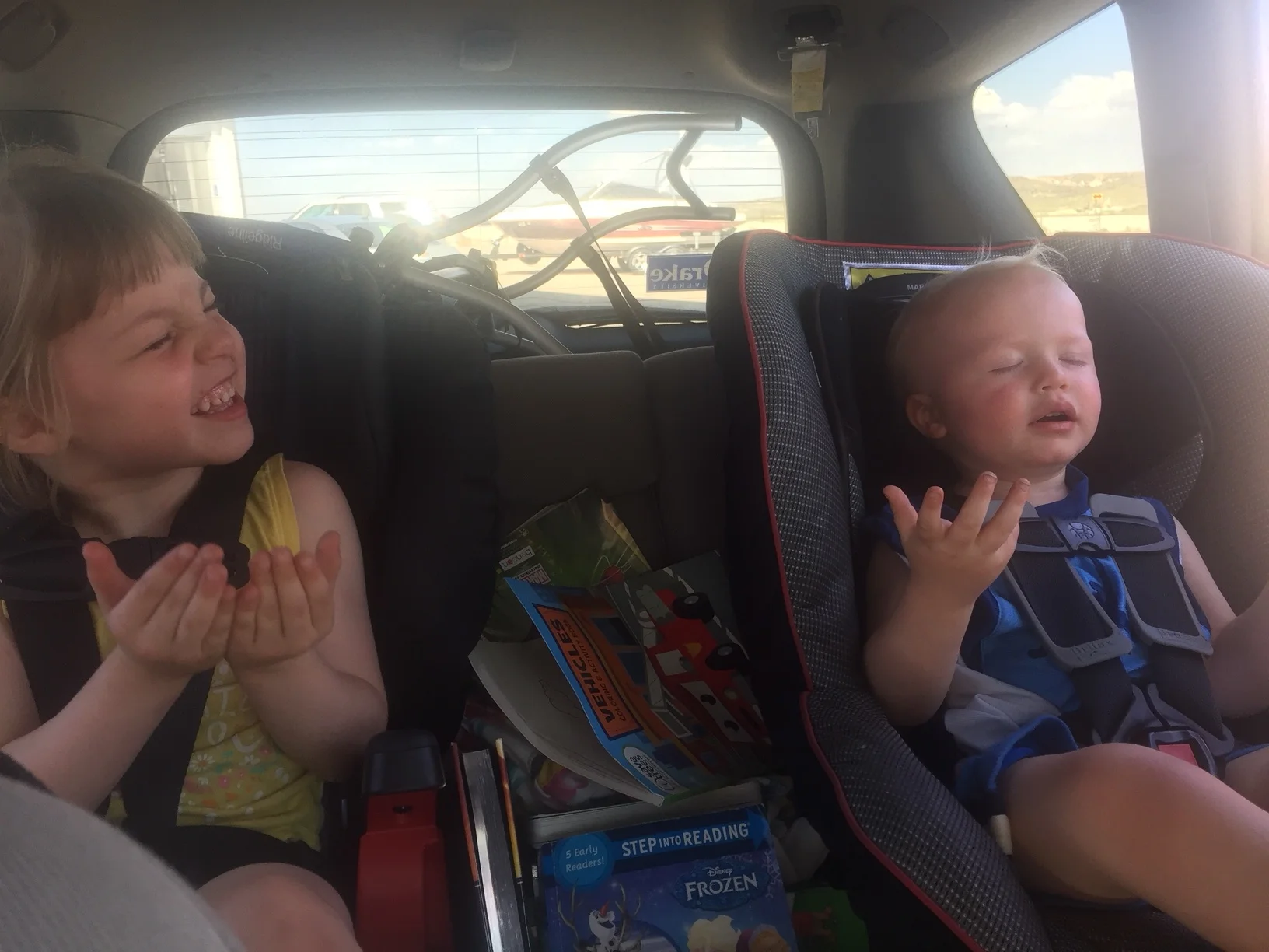 -a backpack of surprises from Dollar General ($50 total) with activity books, sticker books, crayons, beach ball to blow up, glow sticks (for night car dance party fun) and other fun things for Laidy & Loch to enjoy as we made different rest stops. Laidy is at a great stage of being able to read to herself and Loch, follow directions in activity books and Loch loves to doodle/color and roll toy cars up and down his legs. But, obviously, pack what your Littles are interested in. 🙂 We always prefaced a surprise with, “Close your eyes and hold out your hands!”