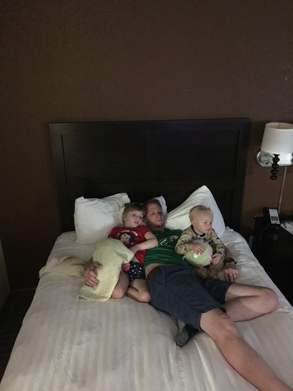 Friday June 22nd: we took our time waking up (or at least, Daddy let Mommy take her time as he does every morning). Gerard took the kids down to breakfast and brought me mine. I ate while he readied the kids for the pool and we had the facilities to ourselves. We enjoyed pool time, took showers, packed up and hit the 2.5hr drive home feeling pretty breezy but tired. Gerard & I switched drivers half way and somehow Laidy stayed up the entire time whereas Loch was out halfway through his first bite of granola bar. We made it home at 3:00pm, I went to pick up Ella from the kennel while Gerard took the kids to the grocery store. We rendez-voused at home with a Casey’s Pizza for dinner and started Night Night routine at 6:30pm. Tears and cries ensued from 7:15-8:00, but we persevered and all was quiet around 8:30pm. And laundry began…