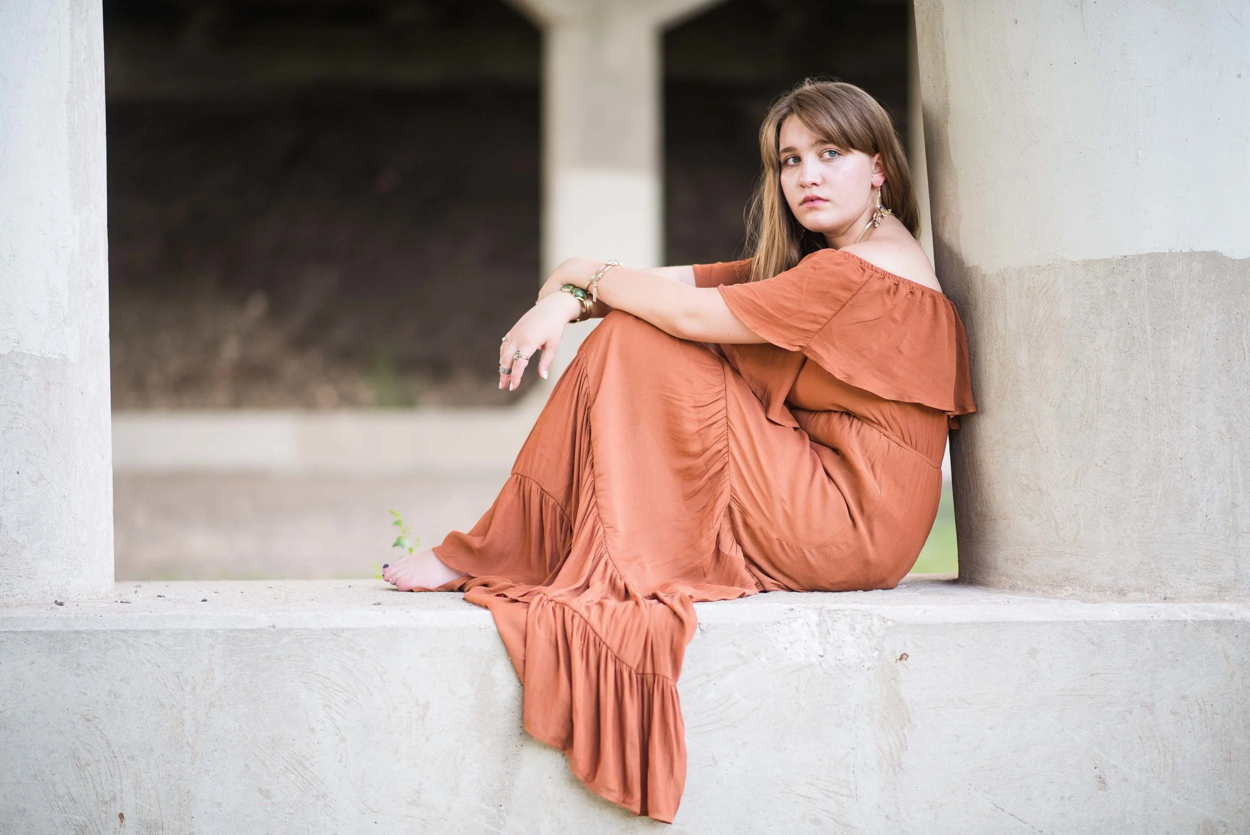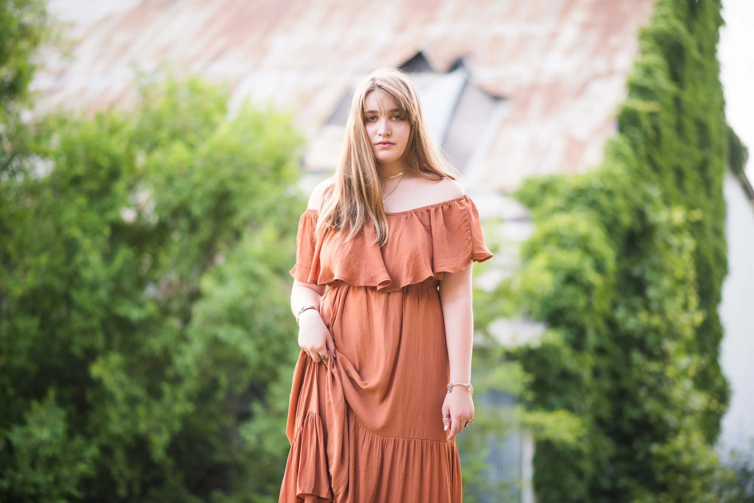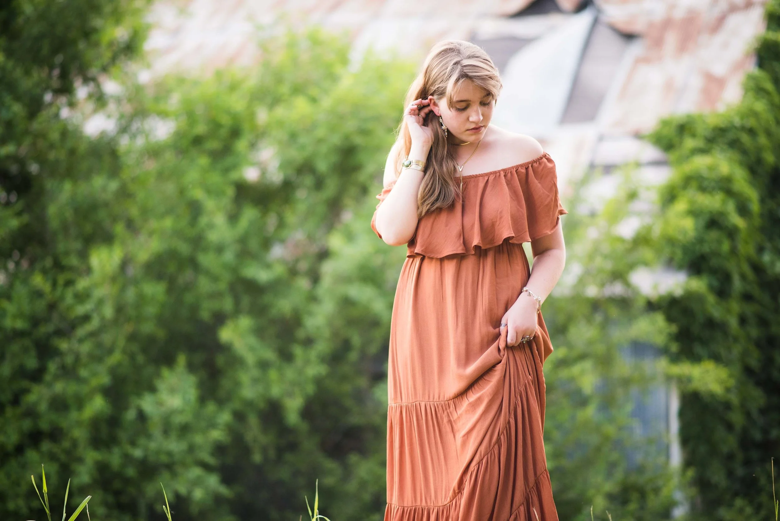 But she can wear country/nature equally well! We had a great time with this rust-colored dress and the light breeze. 🙂