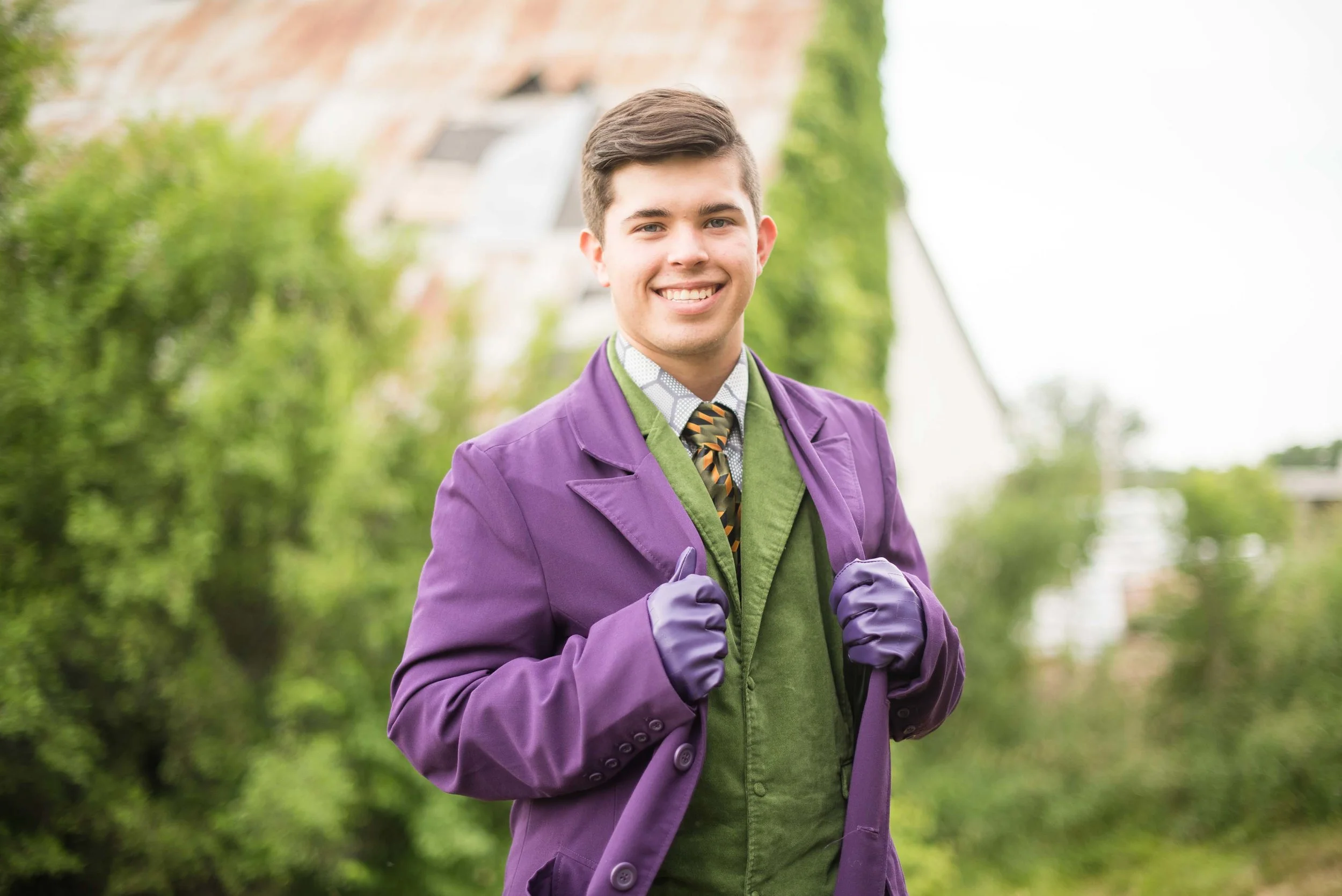 His mom approached me mid-February at a Show Choir Team Dinner and detailed this amazing Joker Suit that Alex has worked to compile over the years. Of all the super heroes and villains, Alex’s favorite is The Joker and he has a great smile impersonation of him to boot! We started our time together in full costume with props and I think it helped start the session at a level of comfortability that is rare. And it was because Alex was wearing his favorite thing. That reinforced a great lesson on what to communicate to future seniors: wear what you love and it will translate into your photos even more!