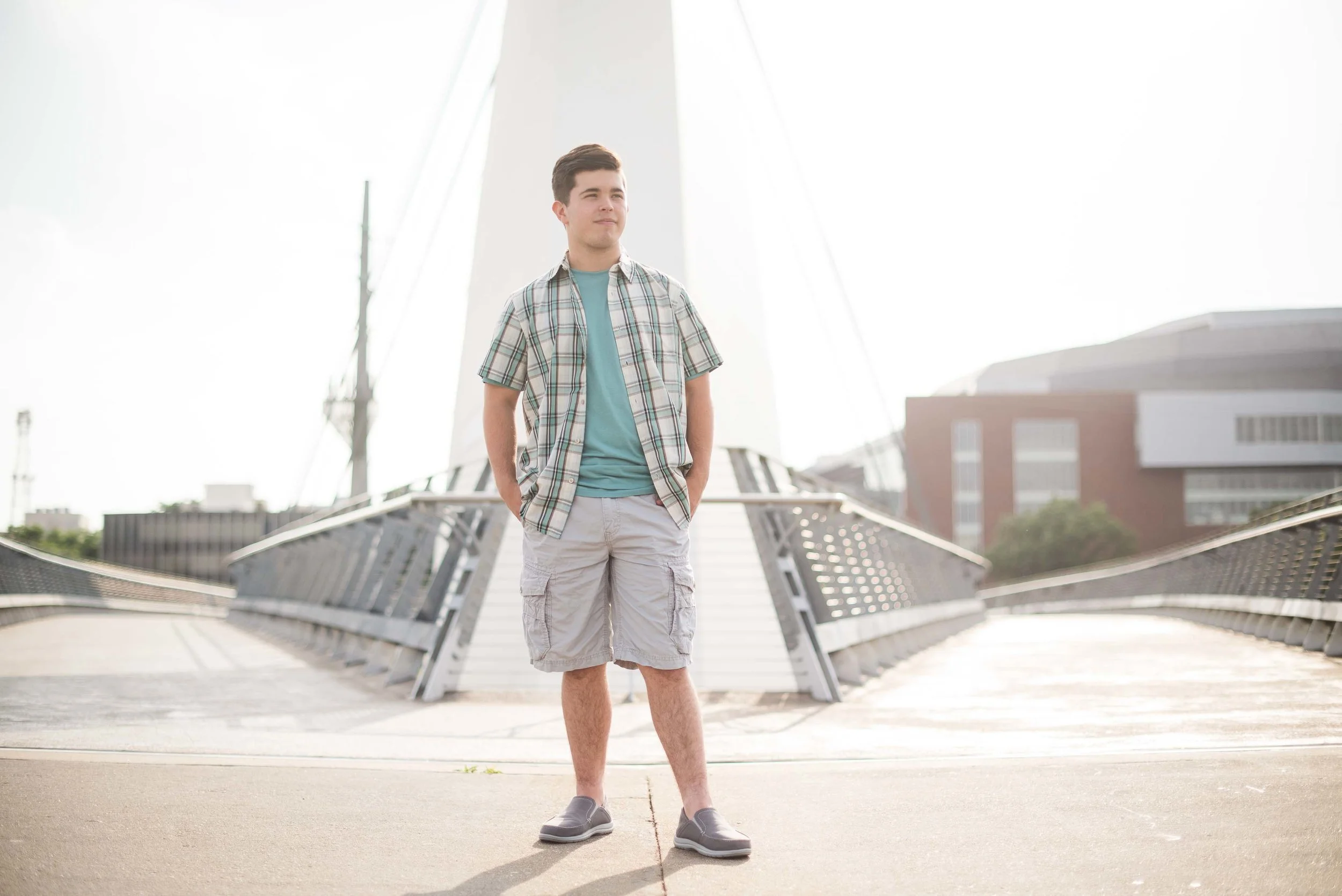 After a quick outfit change, Alex was totally ready to and in the groove to take awesome shots along the Des Moines river and we quickly got our posing down to a science. 🙂
