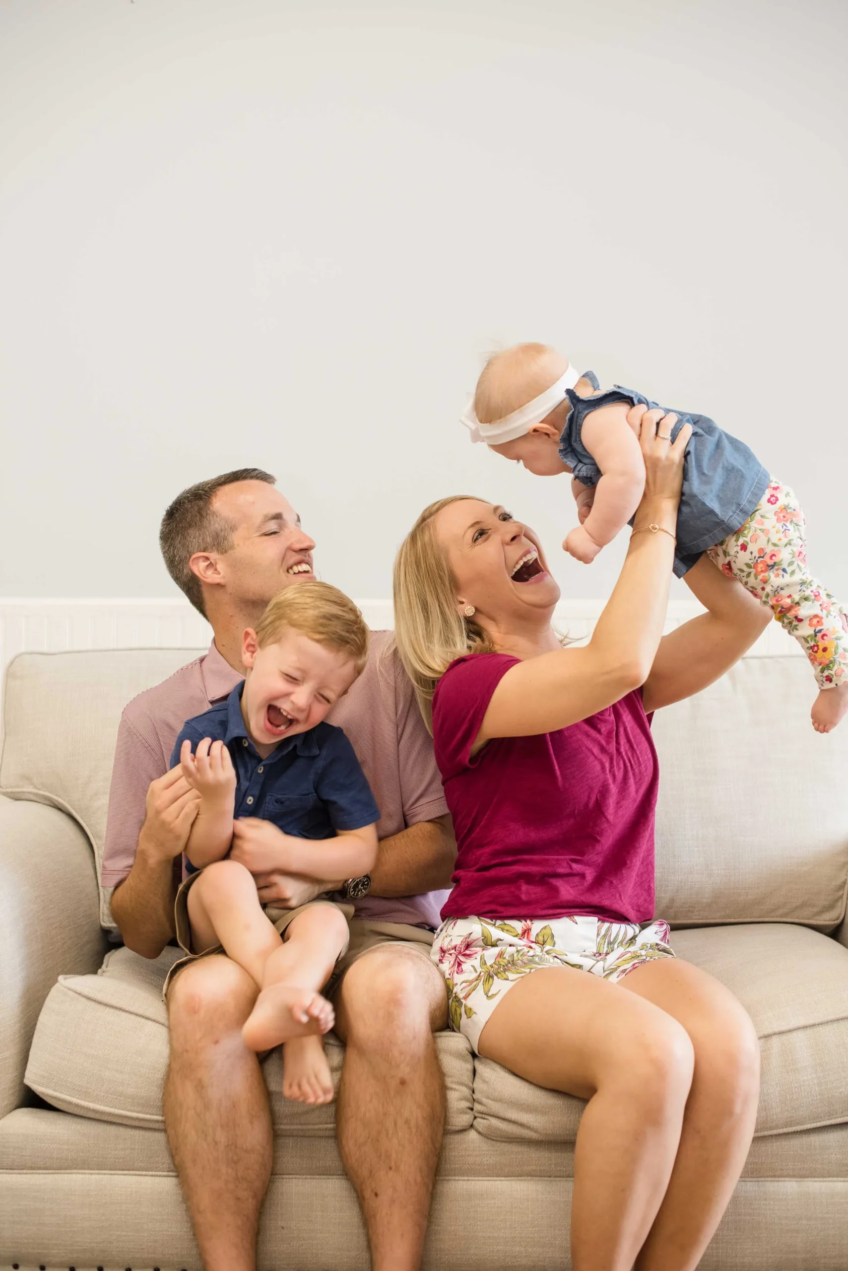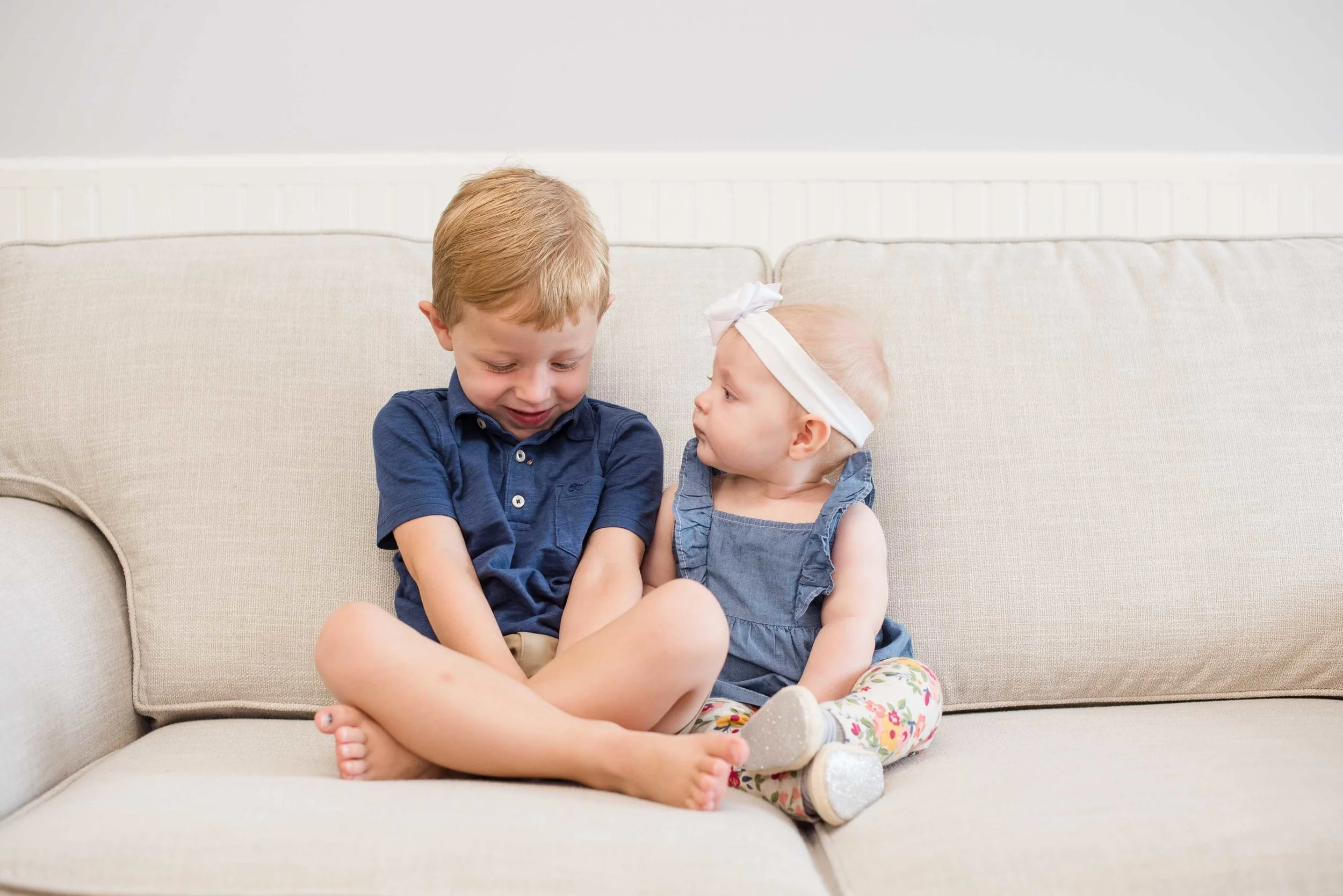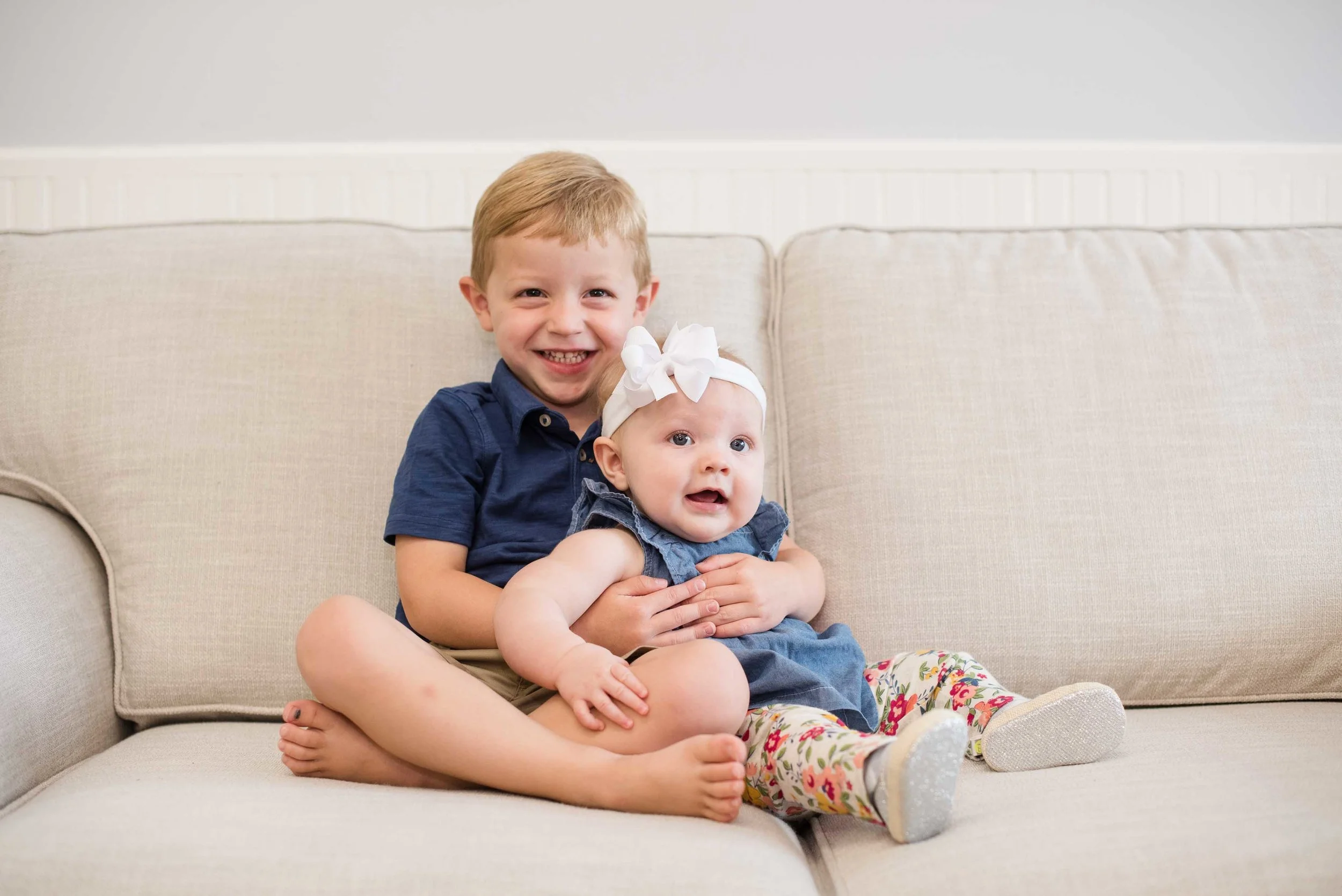 You meet Alison and immediately understand why she is an incredible Kindergarten educator. Oh, the patience! Oh, the sweetness and gentleness! And oh, my goodness, how much her children look like her! You first met Ms. Molly in December and she’s now a proud owner of all the rolls that come with being 6 months. Big bro Charlie is a great protector of her and willingly shared toys to help our session go off without a hitch despite the rainy morning on which we found ourselves.