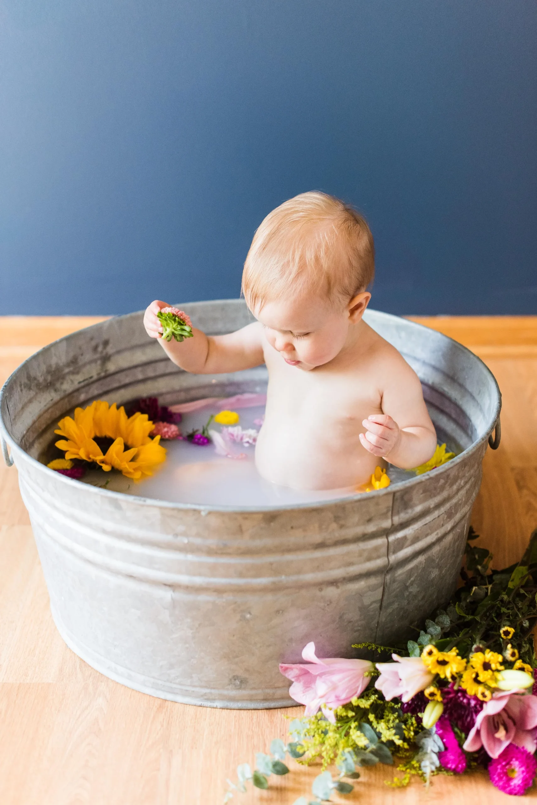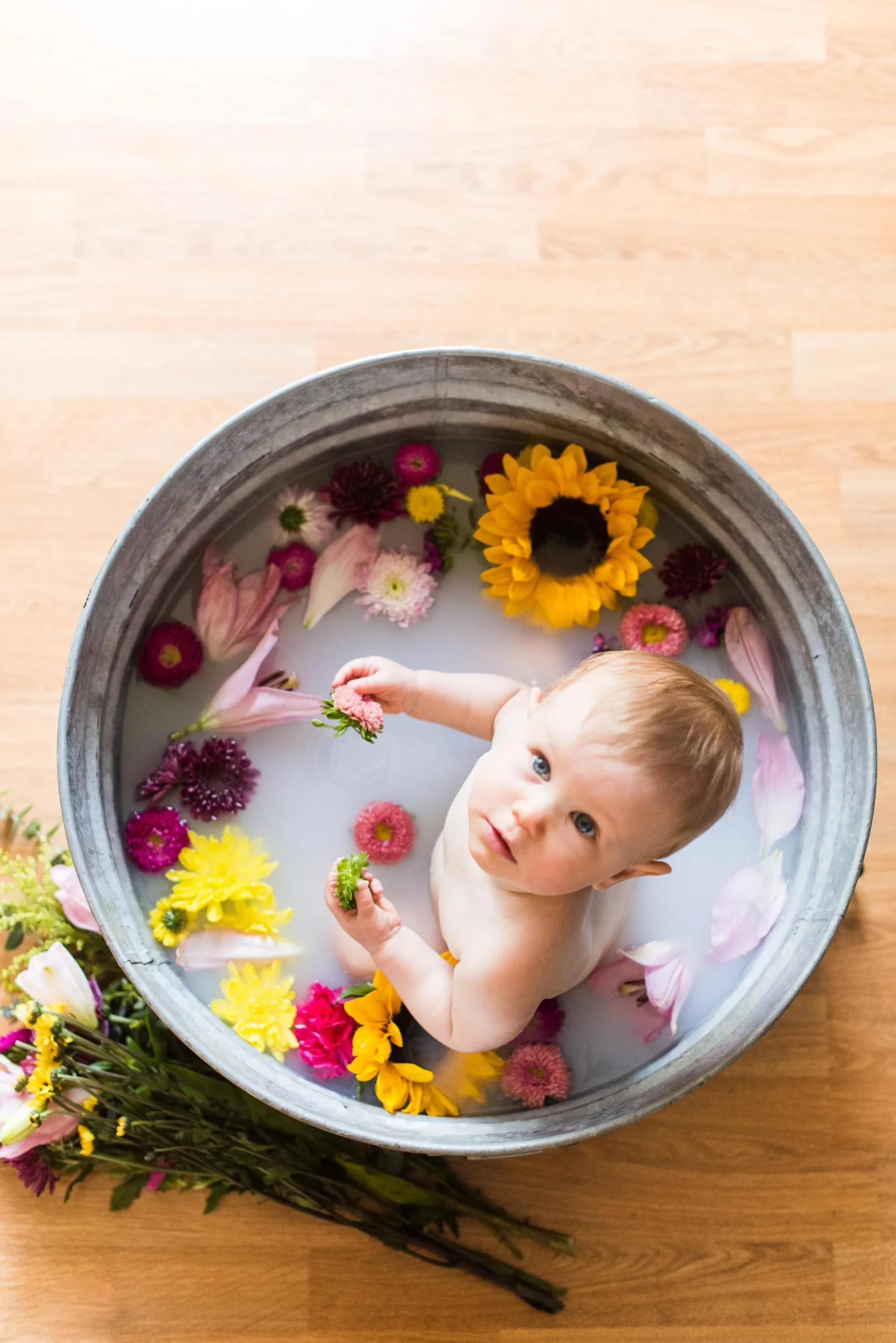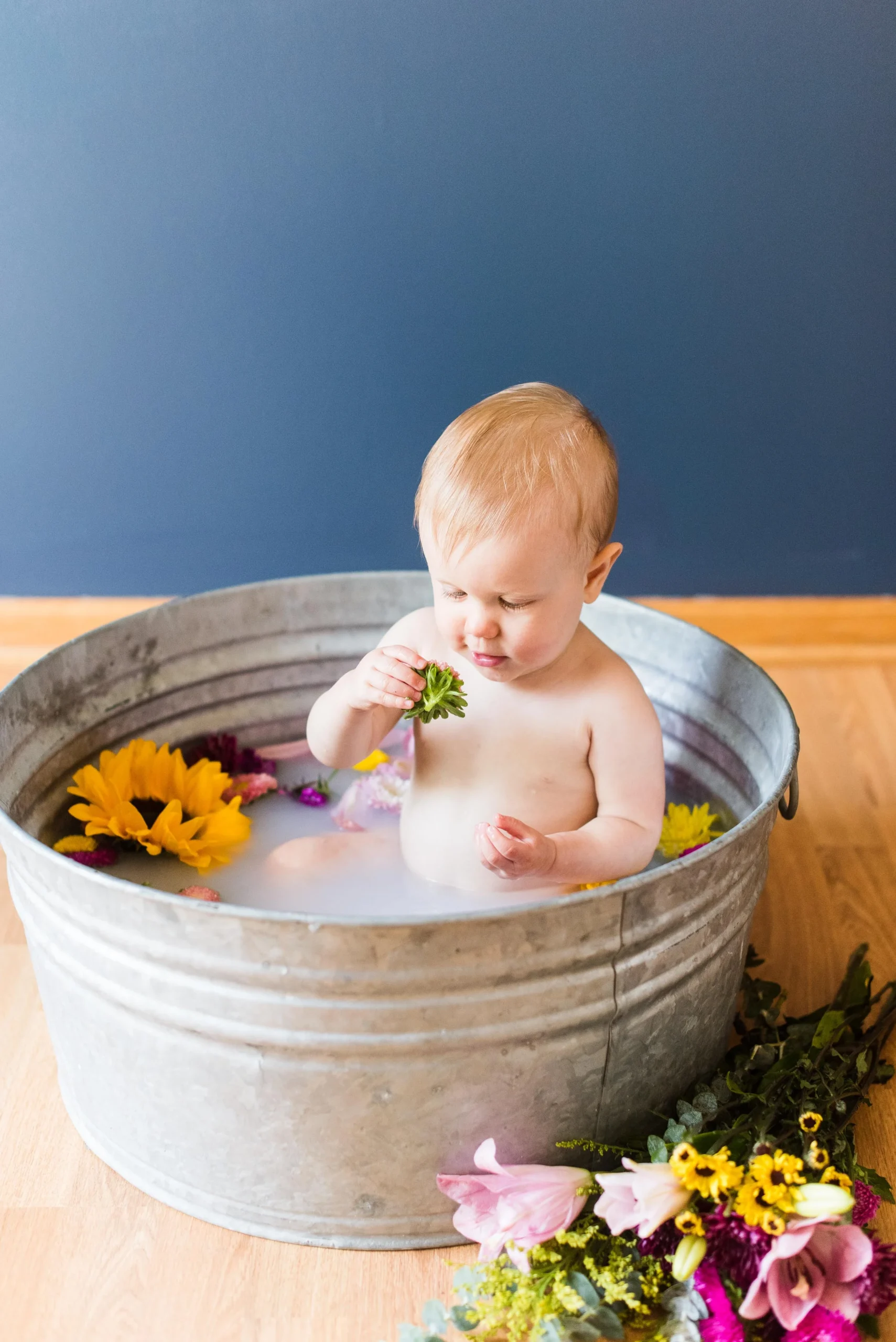 I LOVE MY CLIENTS!! I would say the bulk of my clients become great friends and Jess + Ben are such as these. From their engagement, to their wedding day, to their maternity and newborn….Now, Ms. Ellie is ONE and Jess challenged me to become a better photographer and host a milk bath in my kitchen! I am way out of the loop on this trend and we worked our magic with Jess’ sense of style and fun flair with the photographic knowledge I’ve got in my tool belt. We had a blast and Ellie did fantastic every step of the way! Enjoy!