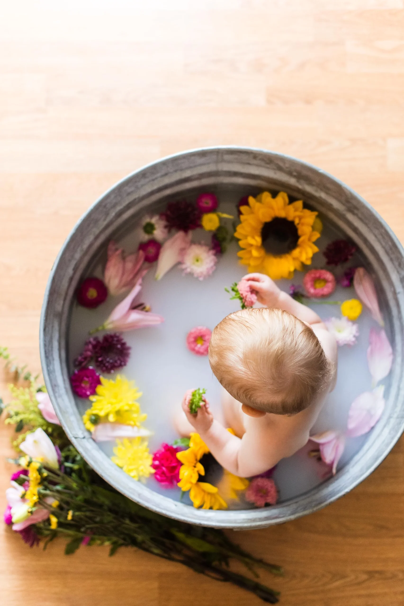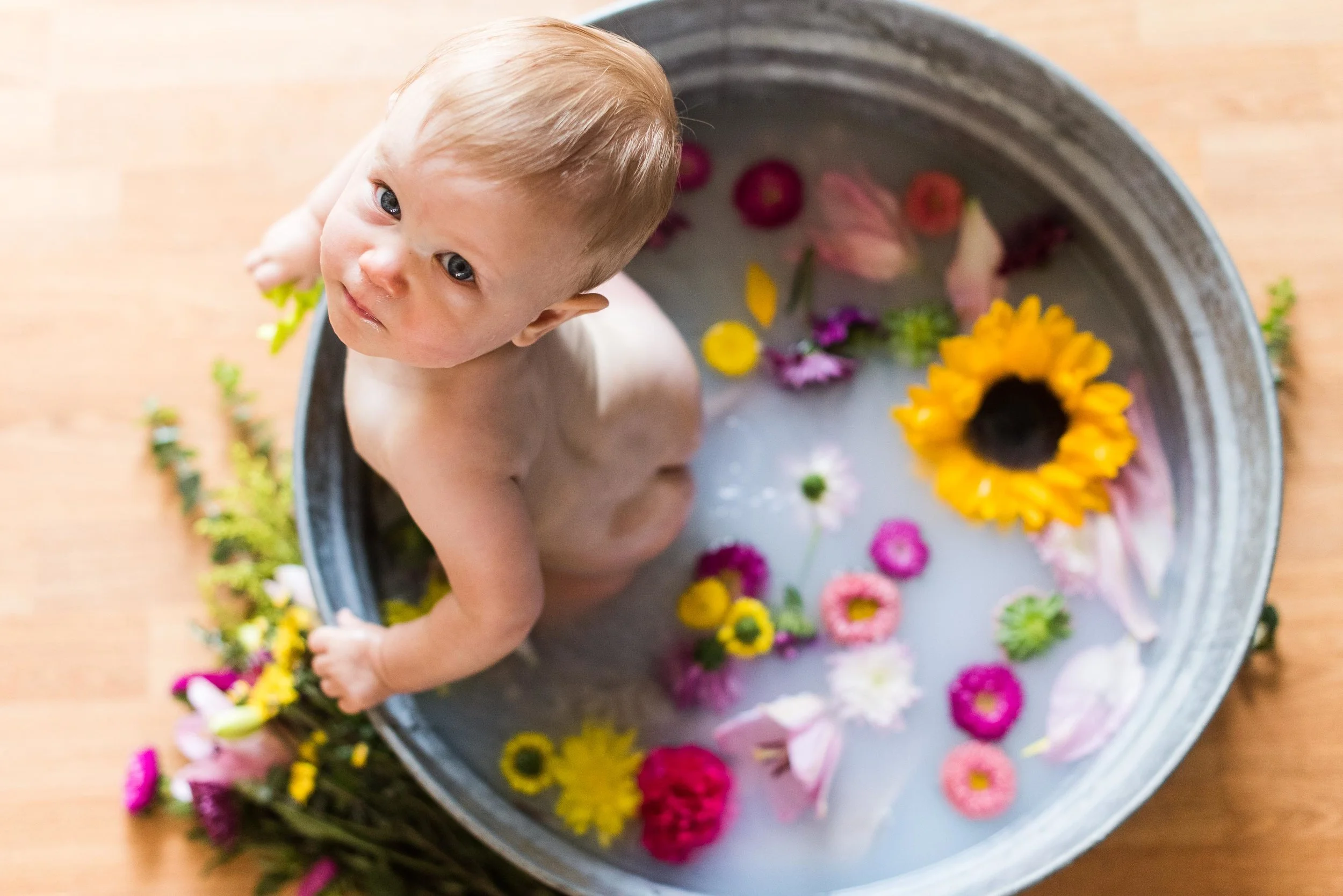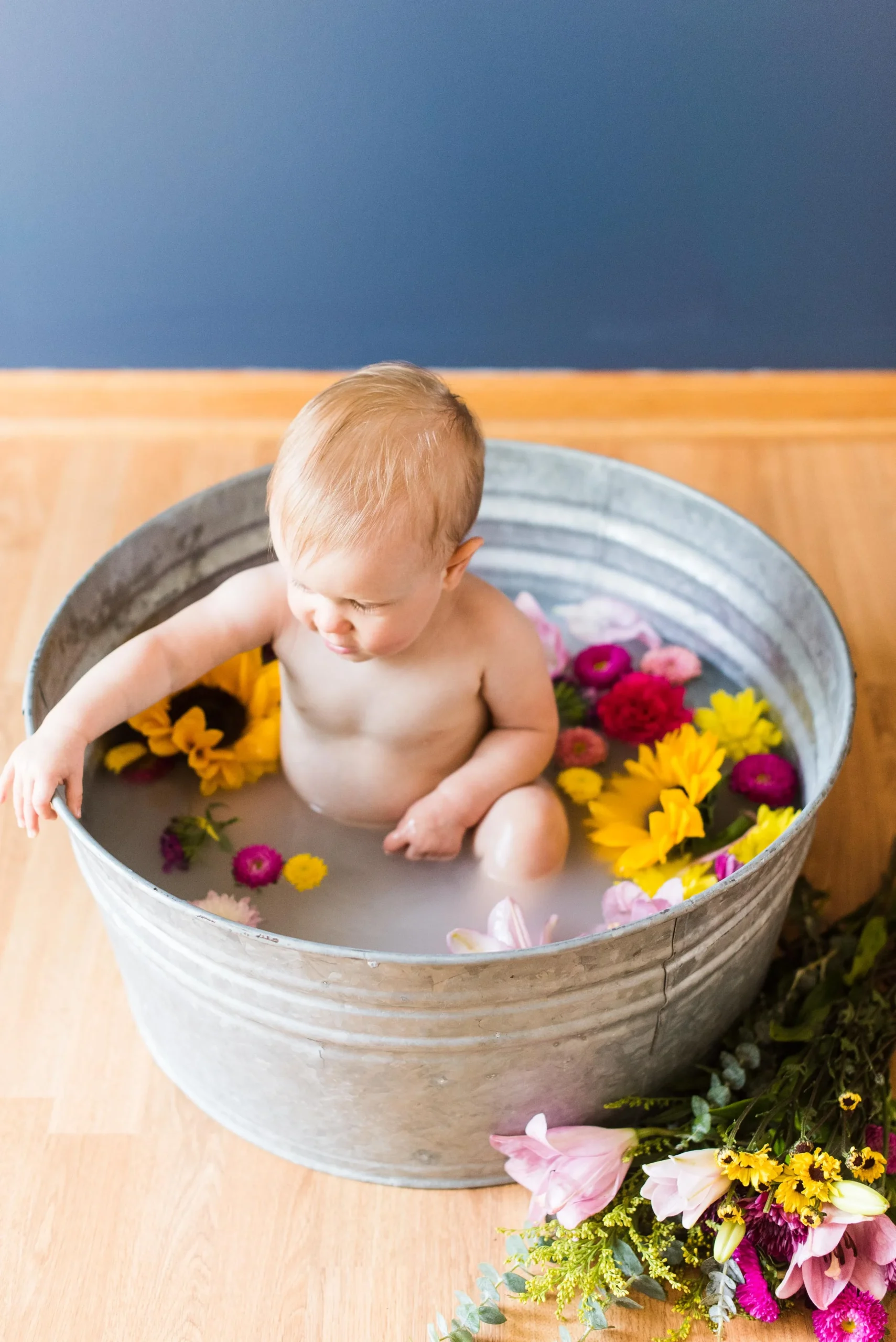 I LOVE MY CLIENTS!! I would say the bulk of my clients become great friends and Jess + Ben are such as these. From their engagement, to their wedding day, to their maternity and newborn….Now, Ms. Ellie is ONE and Jess challenged me to become a better photographer and host a milk bath in my kitchen! I am way out of the loop on this trend and we worked our magic with Jess’ sense of style and fun flair with the photographic knowledge I’ve got in my tool belt. We had a blast and Ellie did fantastic every step of the way! Enjoy!