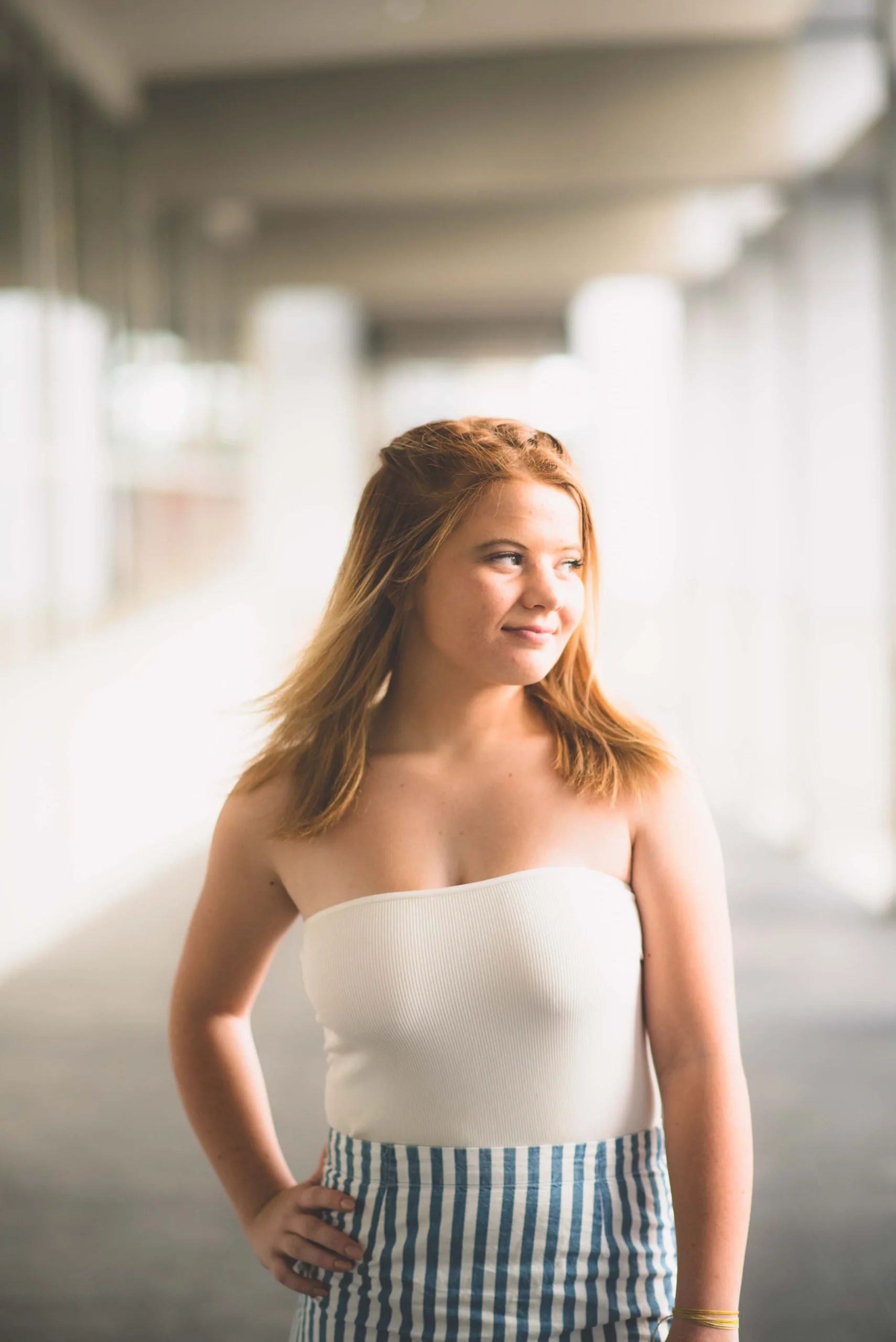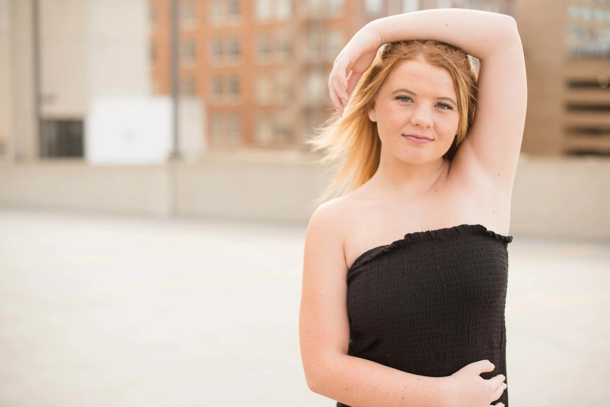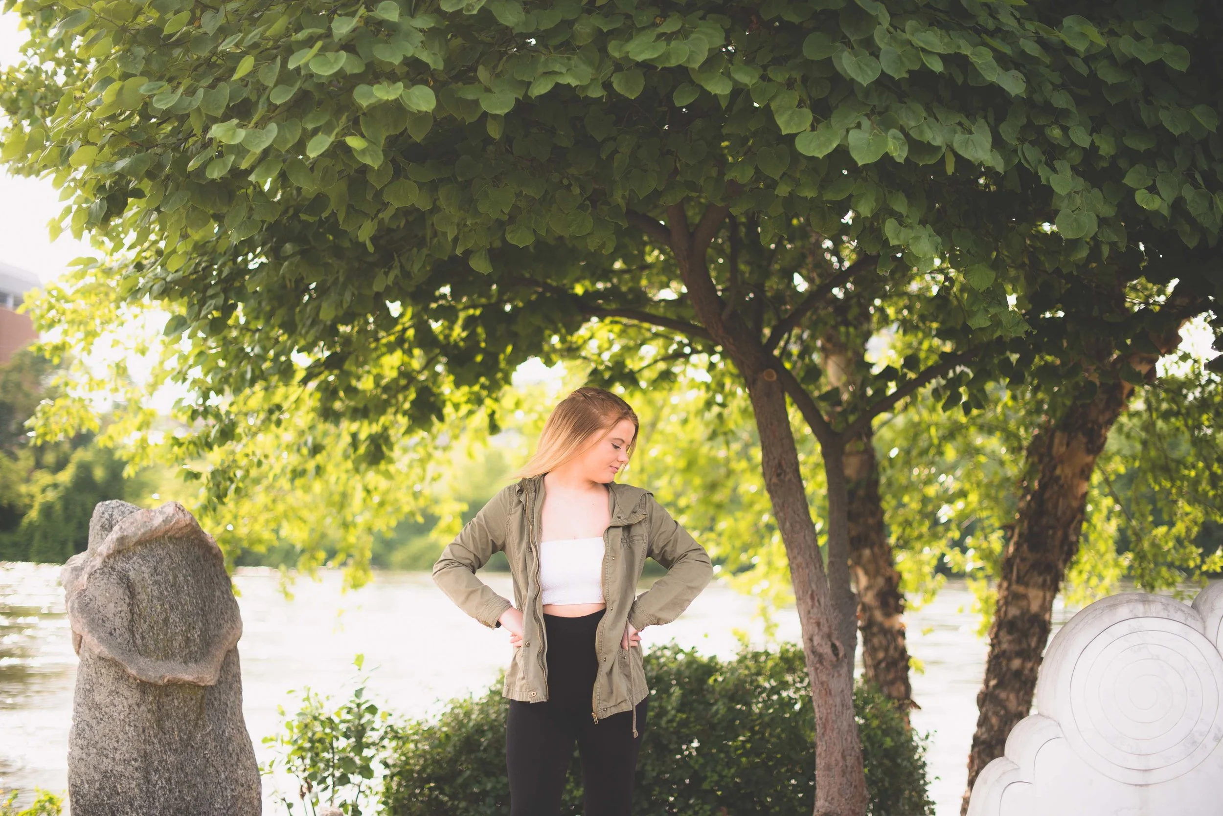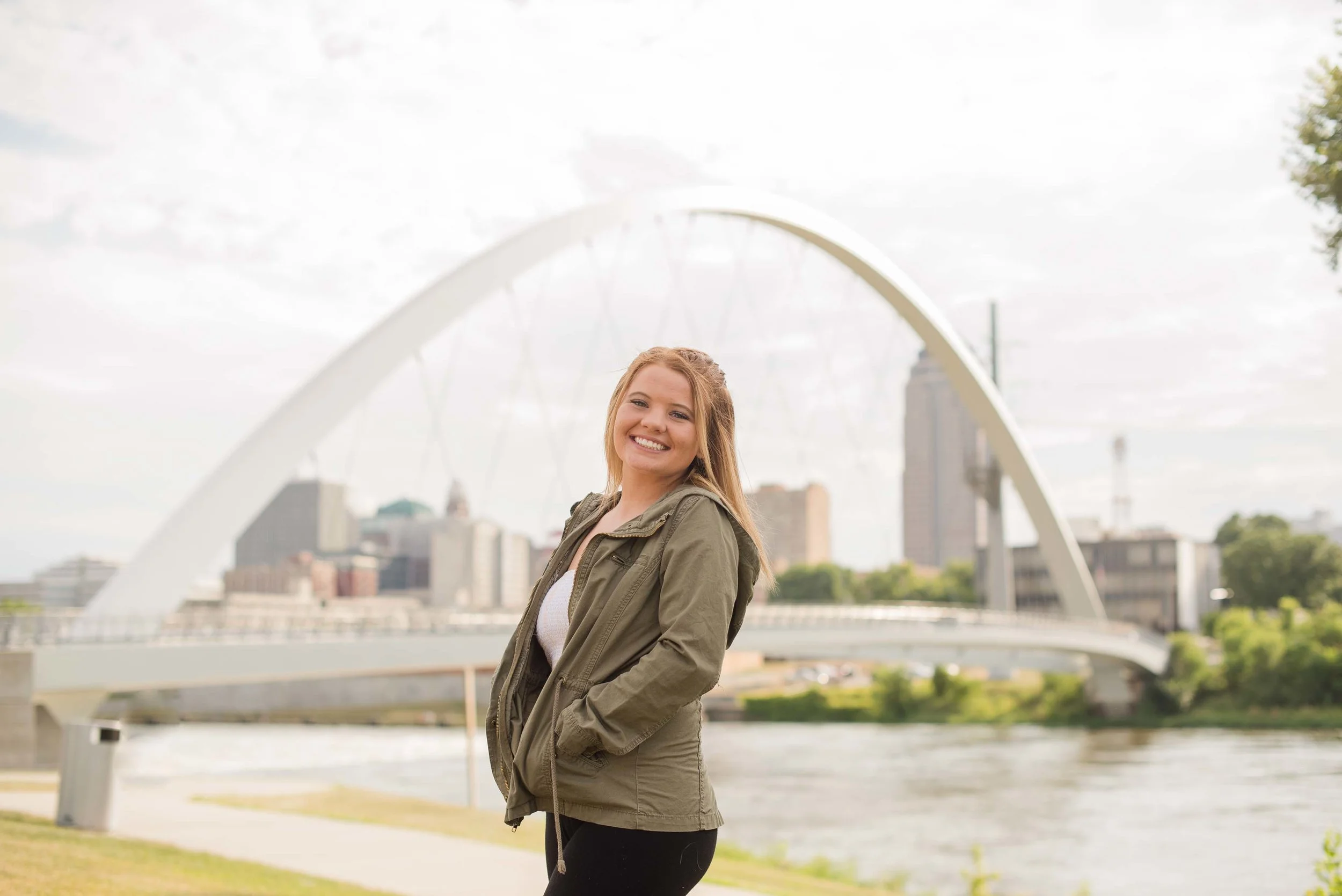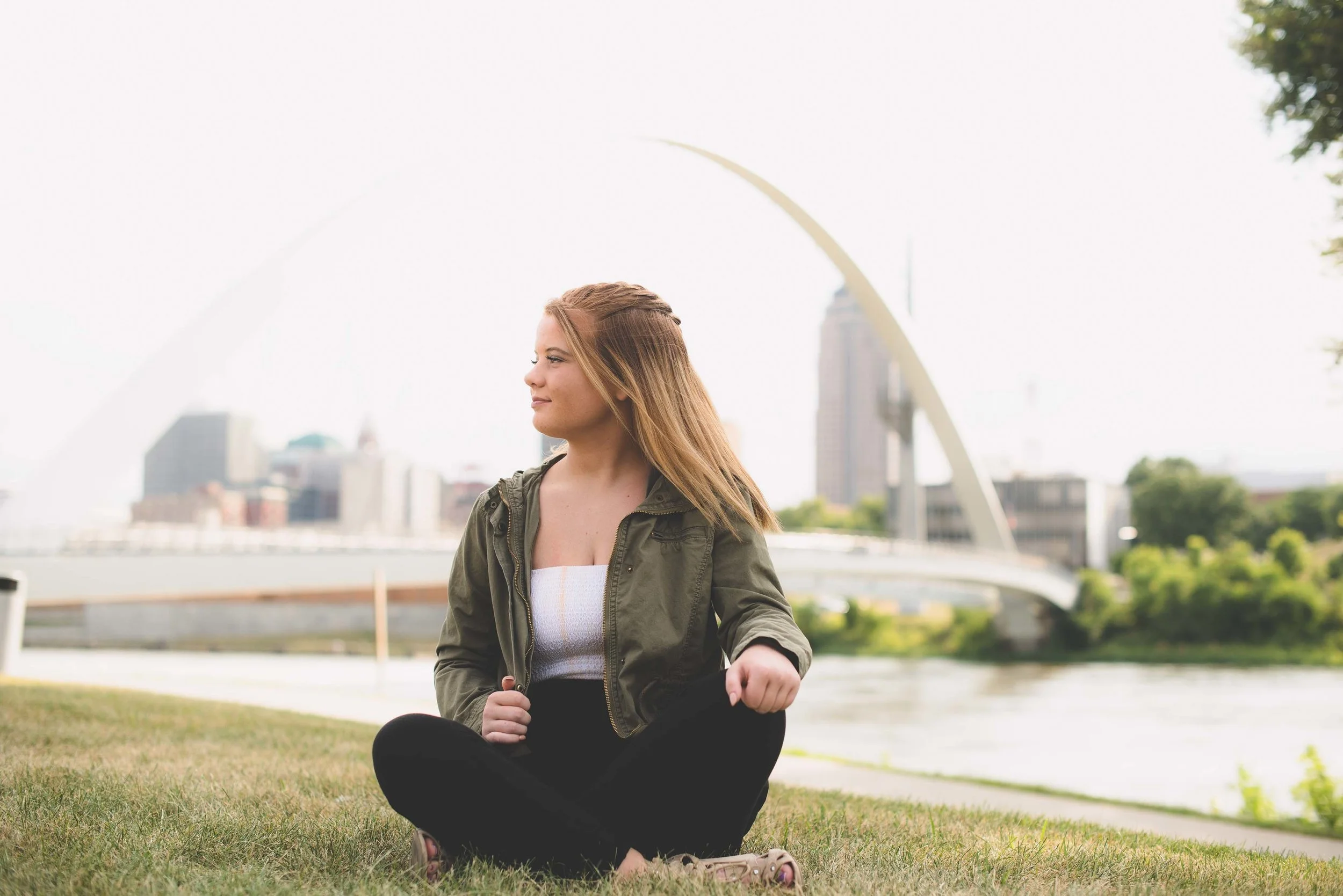 I am so glad to have met Gracie! She was the fortunate winner of the session that I donated to Norwalk’s After Prom. What a fun and spunky spirit Gracie has! She requested mainly urban and architecture, so we started our time where my previous session had finished-at the river walk with a great view of downtown: