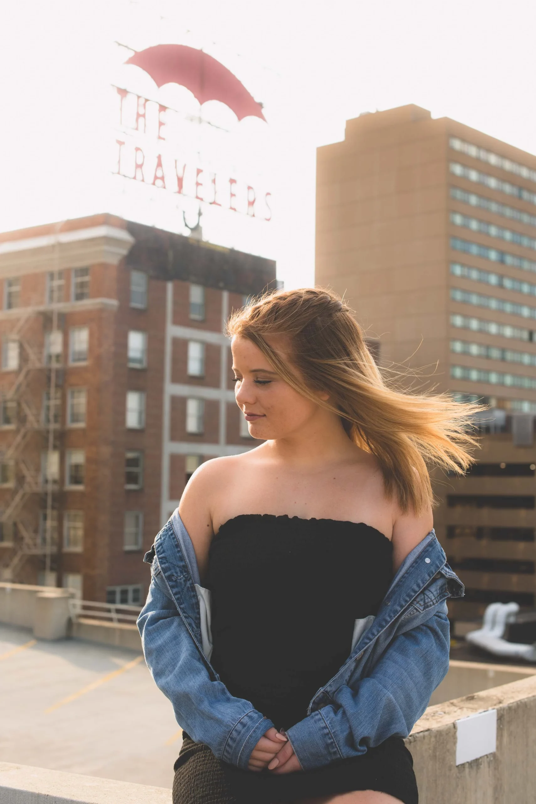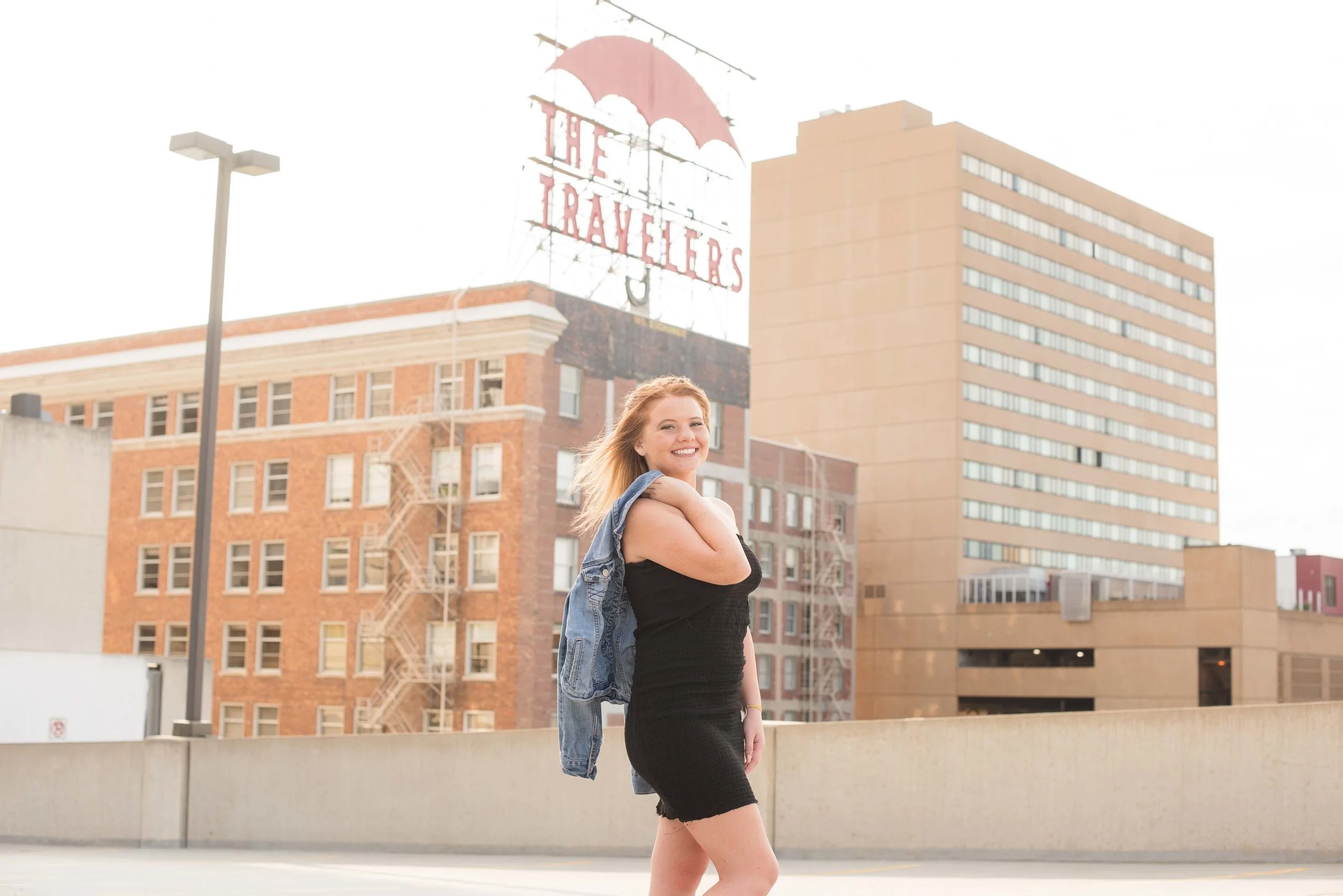 I always try to go somewhere new or do something different, so we went through the parking structure nearest The Travelers sign and coincidentally, Gracie said that she and her friends sometimes hang out up here too: