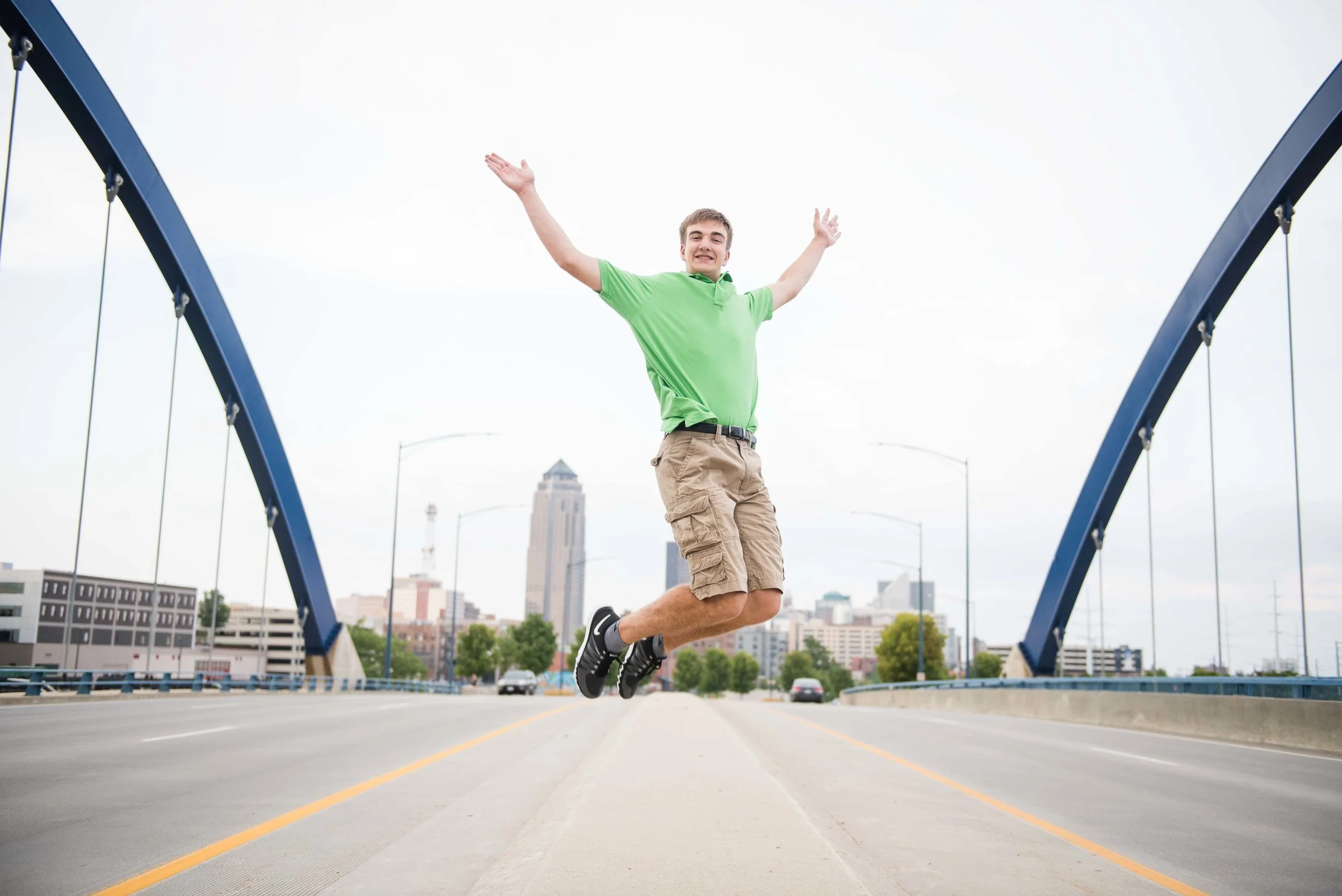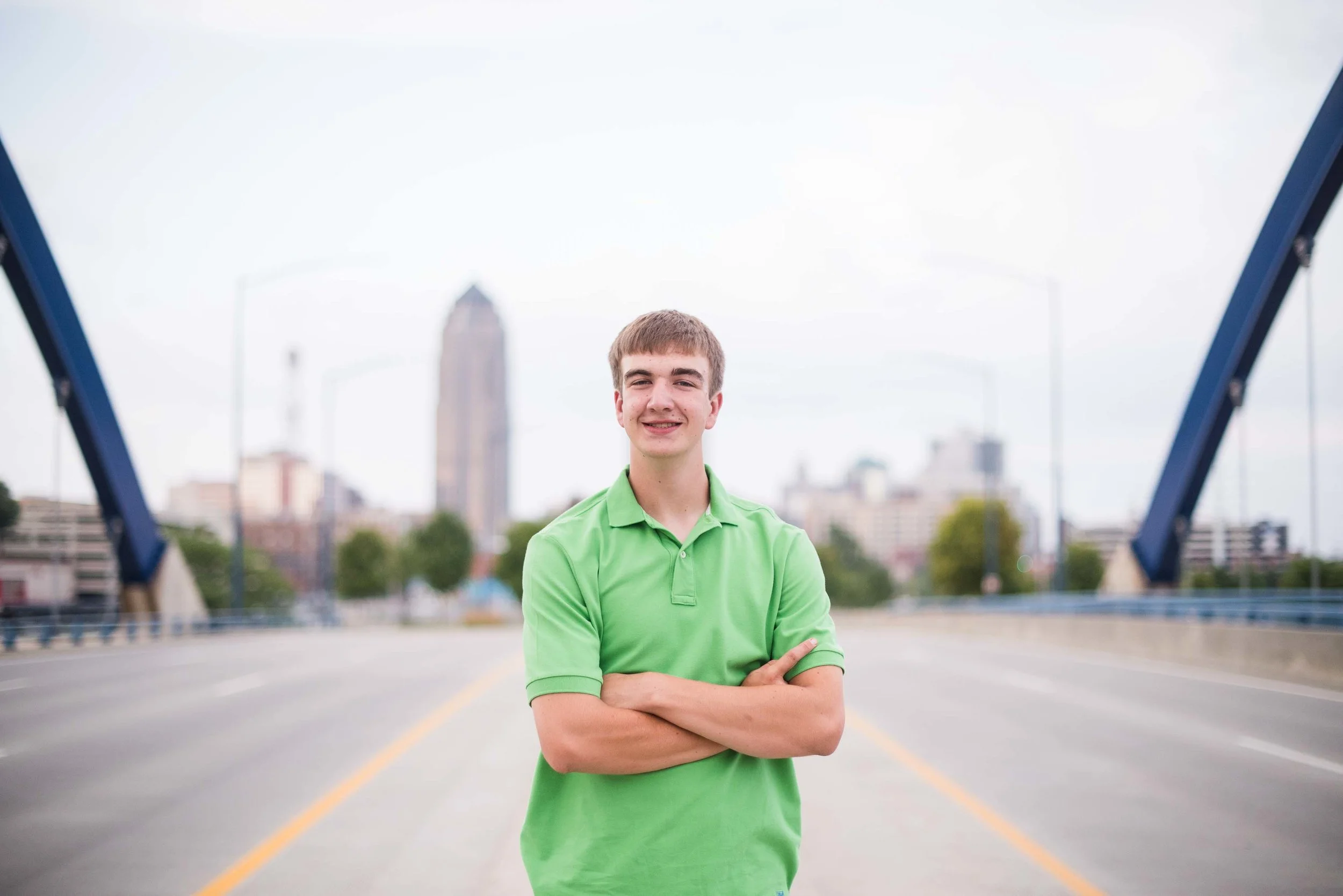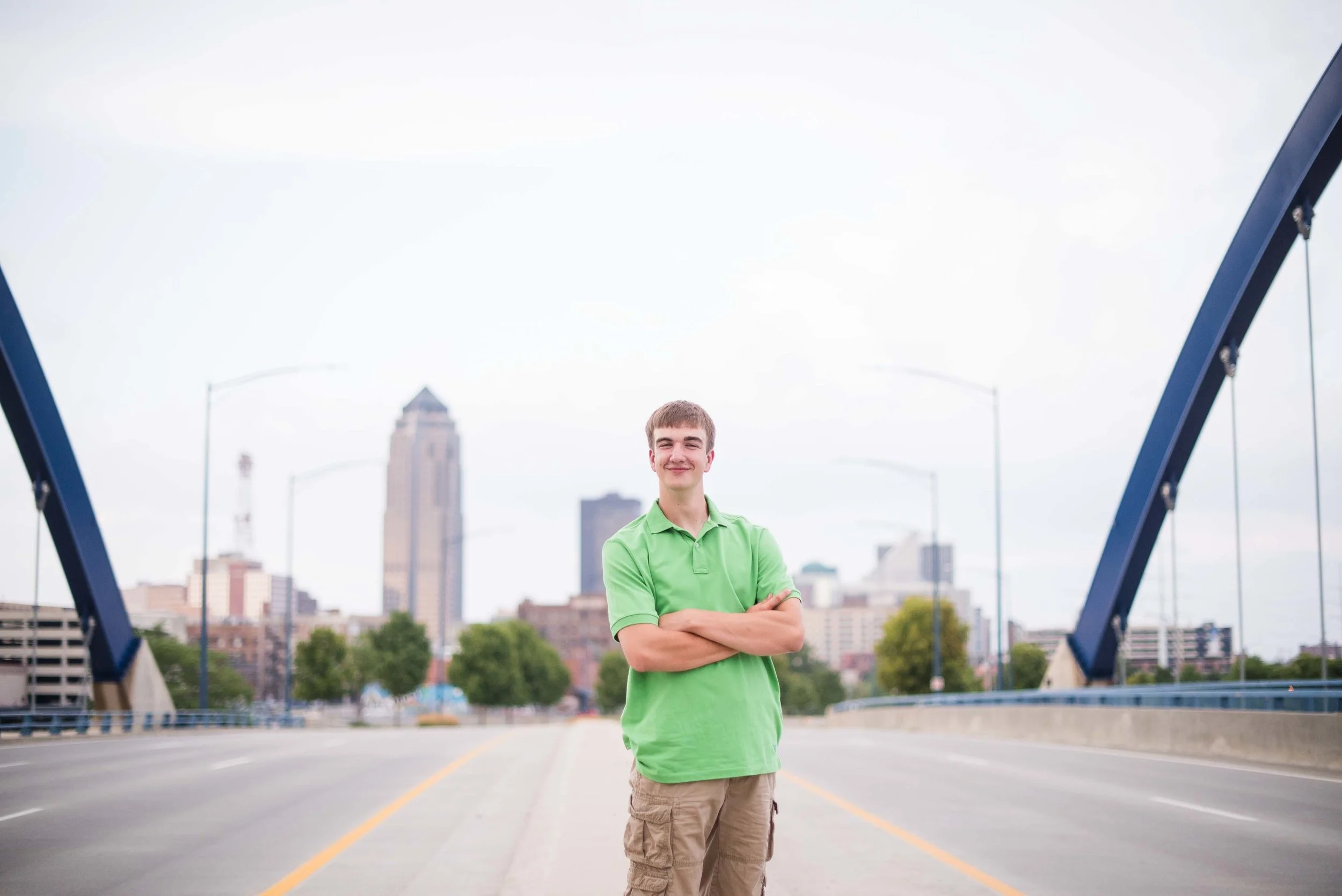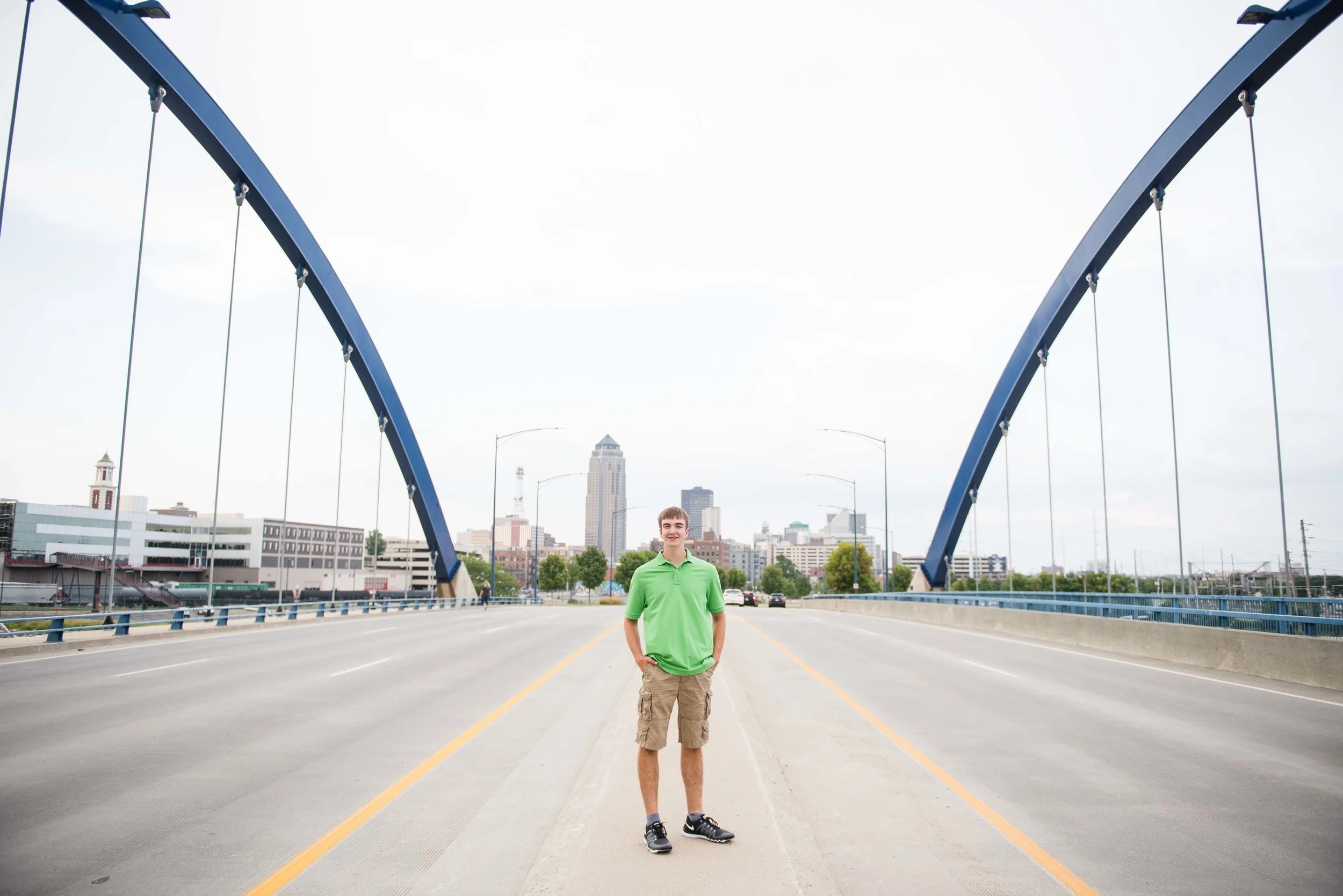 On the way to our last location, we paused here to give him a wide shot of downtown Des Moines: