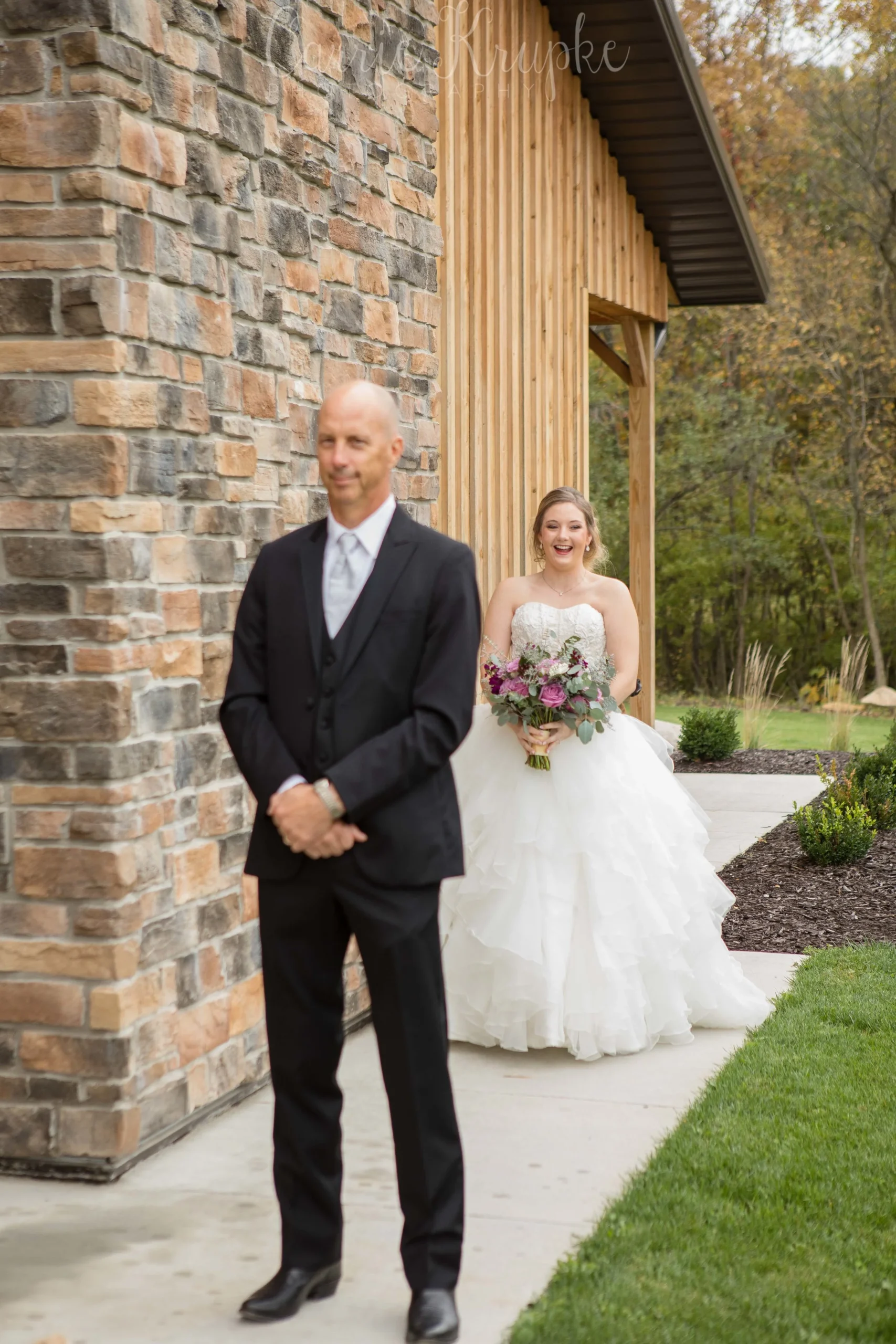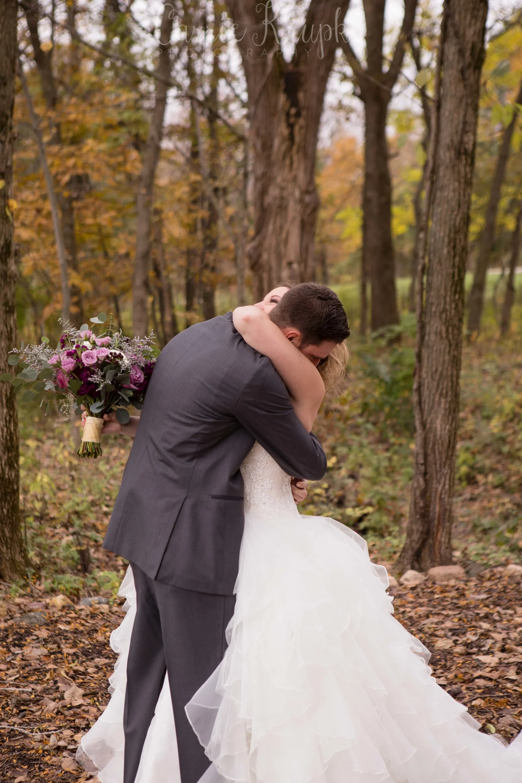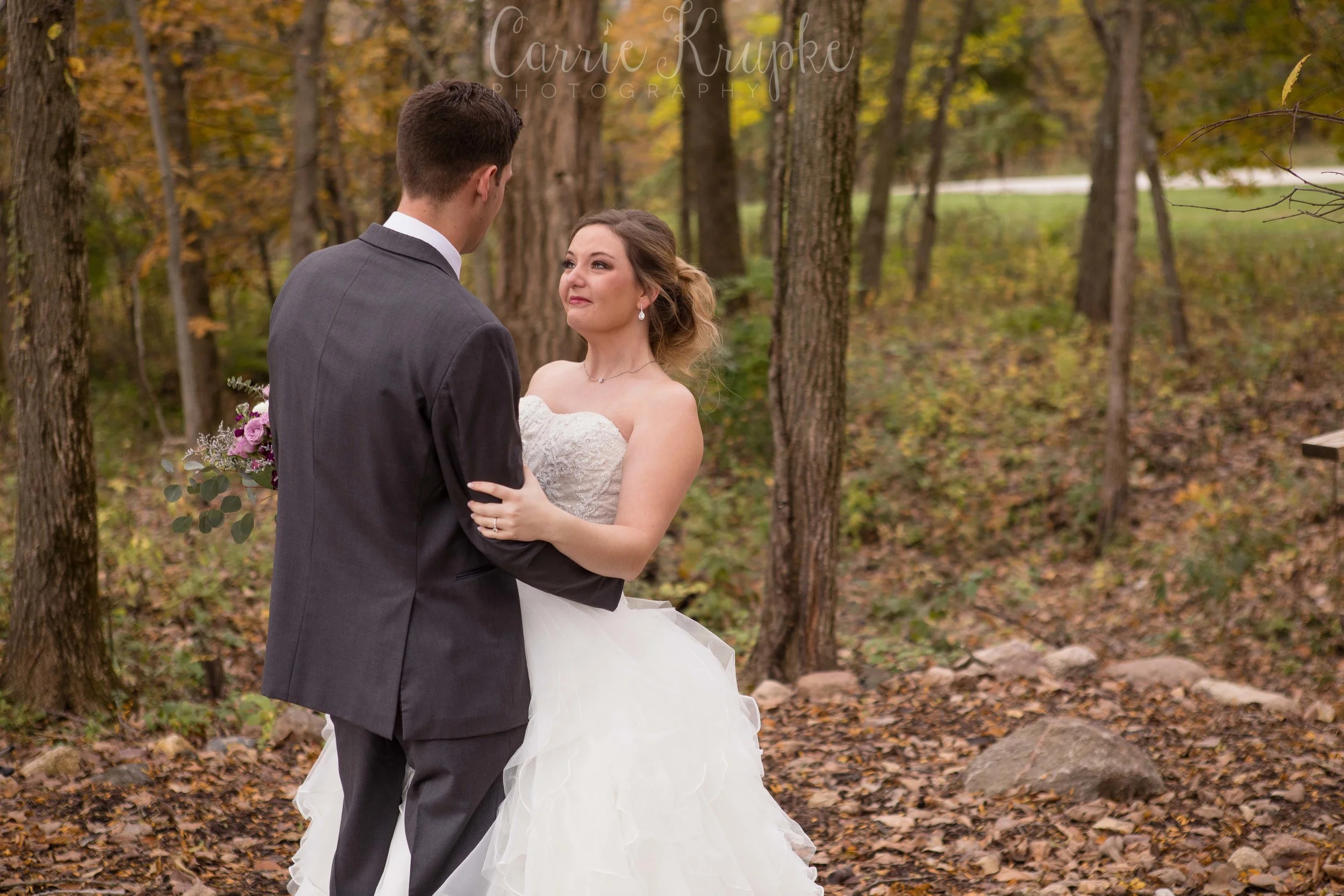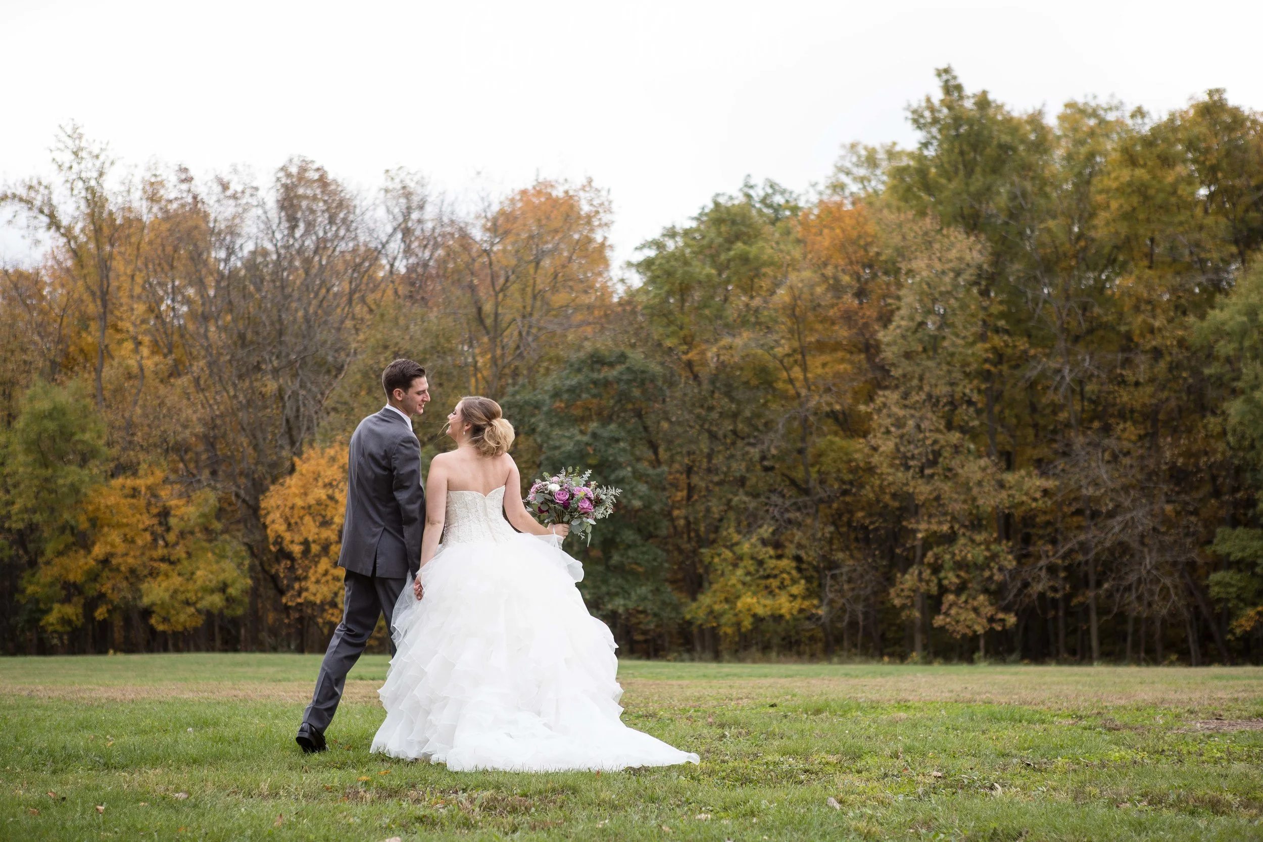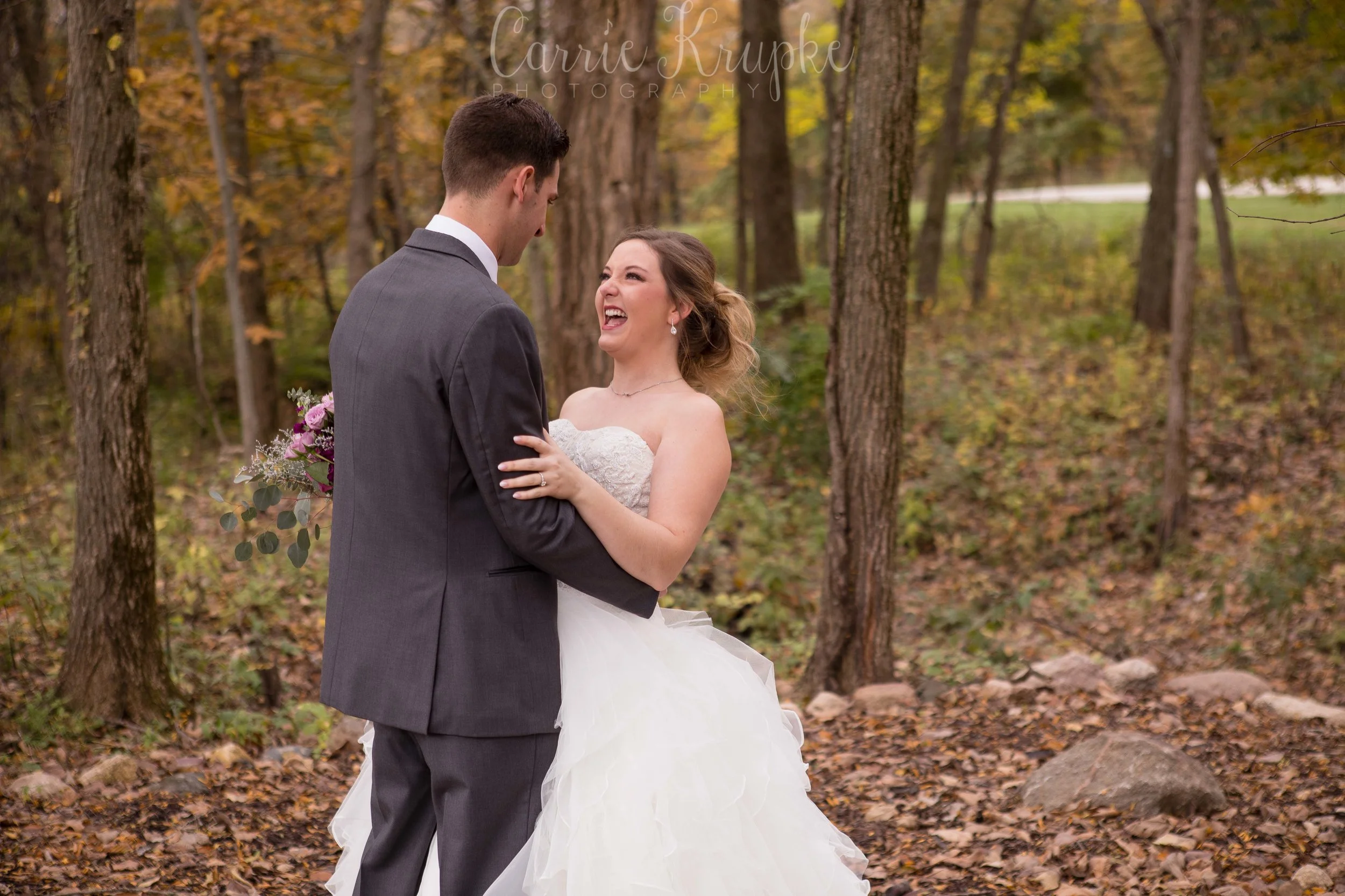 What a beautiful day these two had! In the midst of an incredibly wet and dreary fall season, Christen & Chase’s day landed on a gorgeous, partly sunny, 50-degree day where all the trees’ leaves were rich fall hues and perfect for photos. But among the most beautiful of colors: Christen’s bouquet that was so beautiful, she even teared up at first sight of it!