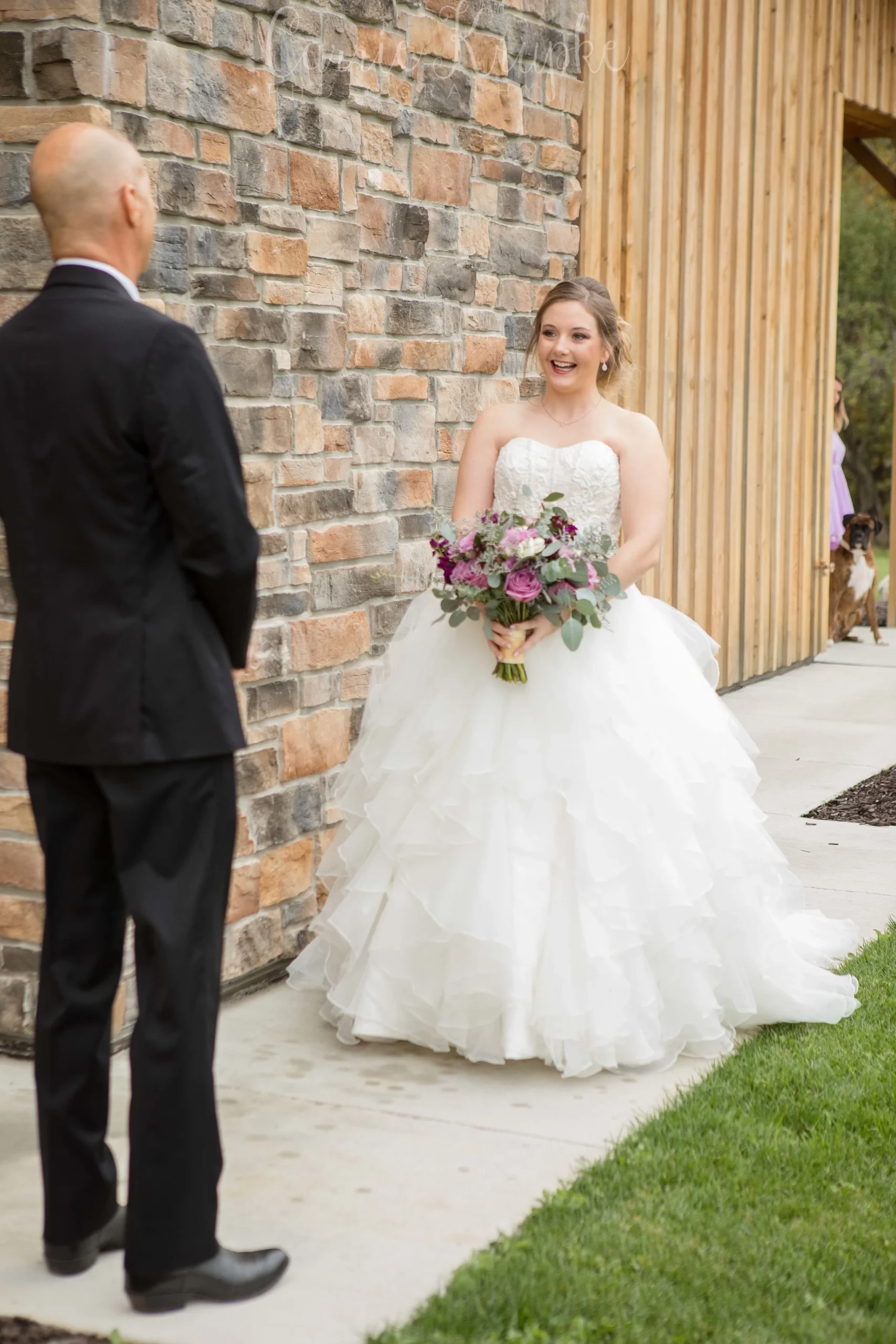Christen opted not only for a First Look with Chase, but we worked one out with her Dad, Ken, as well! He then assisted her to her First Look with her groom. The beauty of Christen & Chase’s first look was the perfection that is having a second shooter. You’ll see an angle from Sarah, my assistant for the day, and Christen is in the background and then you’ll see Christen from my angle. It’s such a joy to give my clients so many images from all spots of an event so they don’t miss a moment! What was even sweeter though? Christen & Chase both teared up and wiped their eyes at the same time! Take a look: