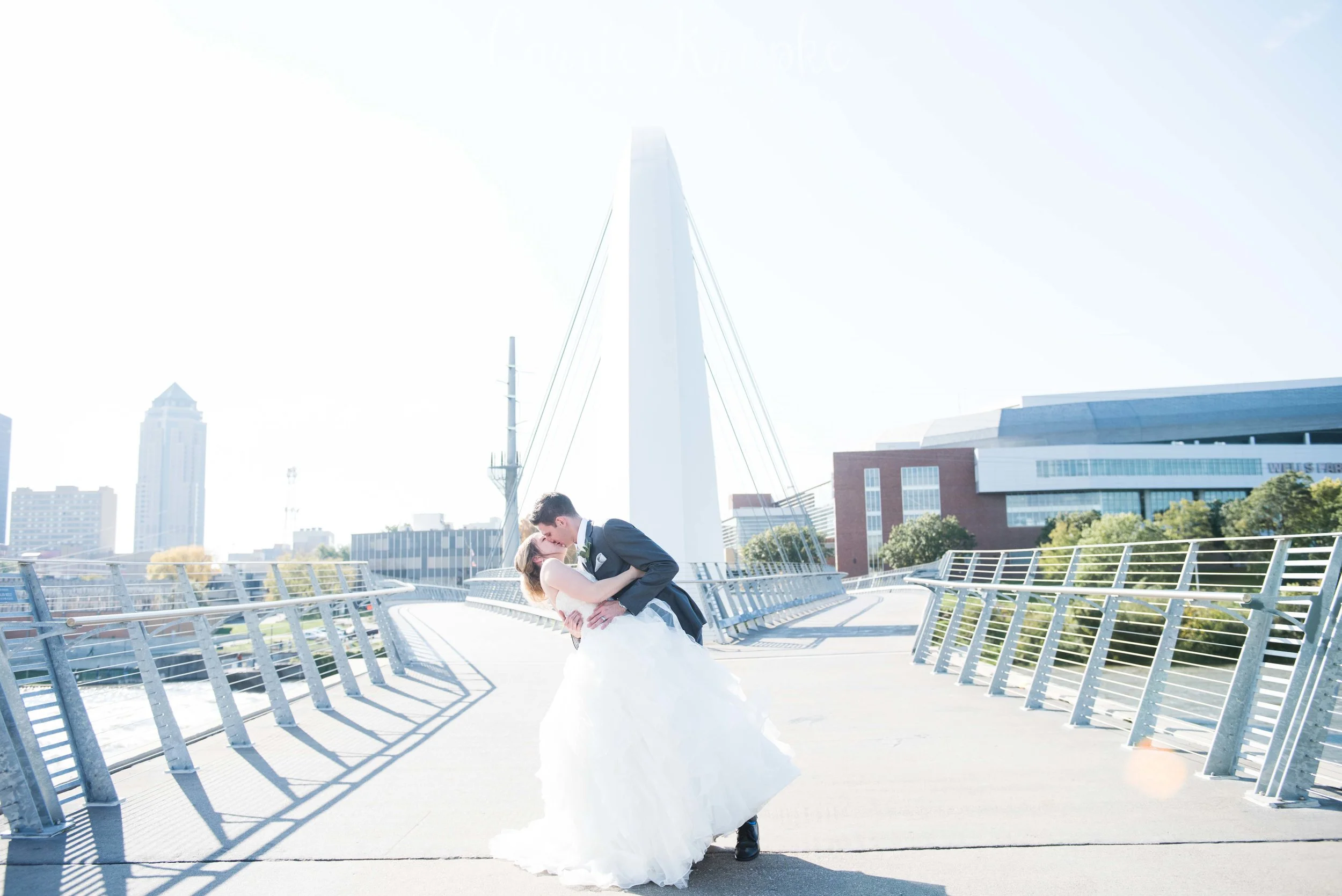 After their ceremony, we jetted downtown to capture some Party Bus photos of their wedding party with their significant others. We started at the Women of Achievement Bridge (which Christen really appreciated) and then hit the open commons area by the Civic Center.