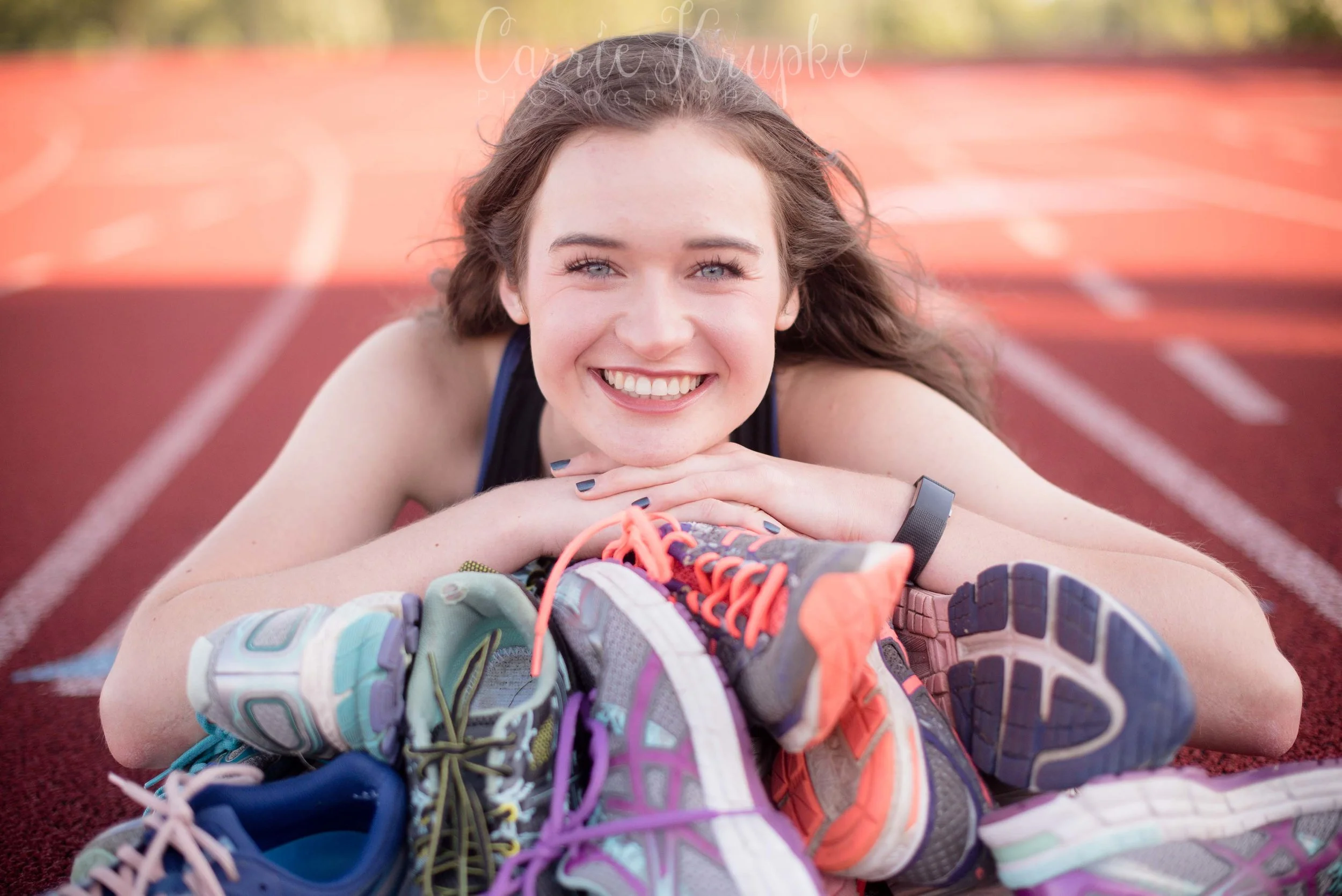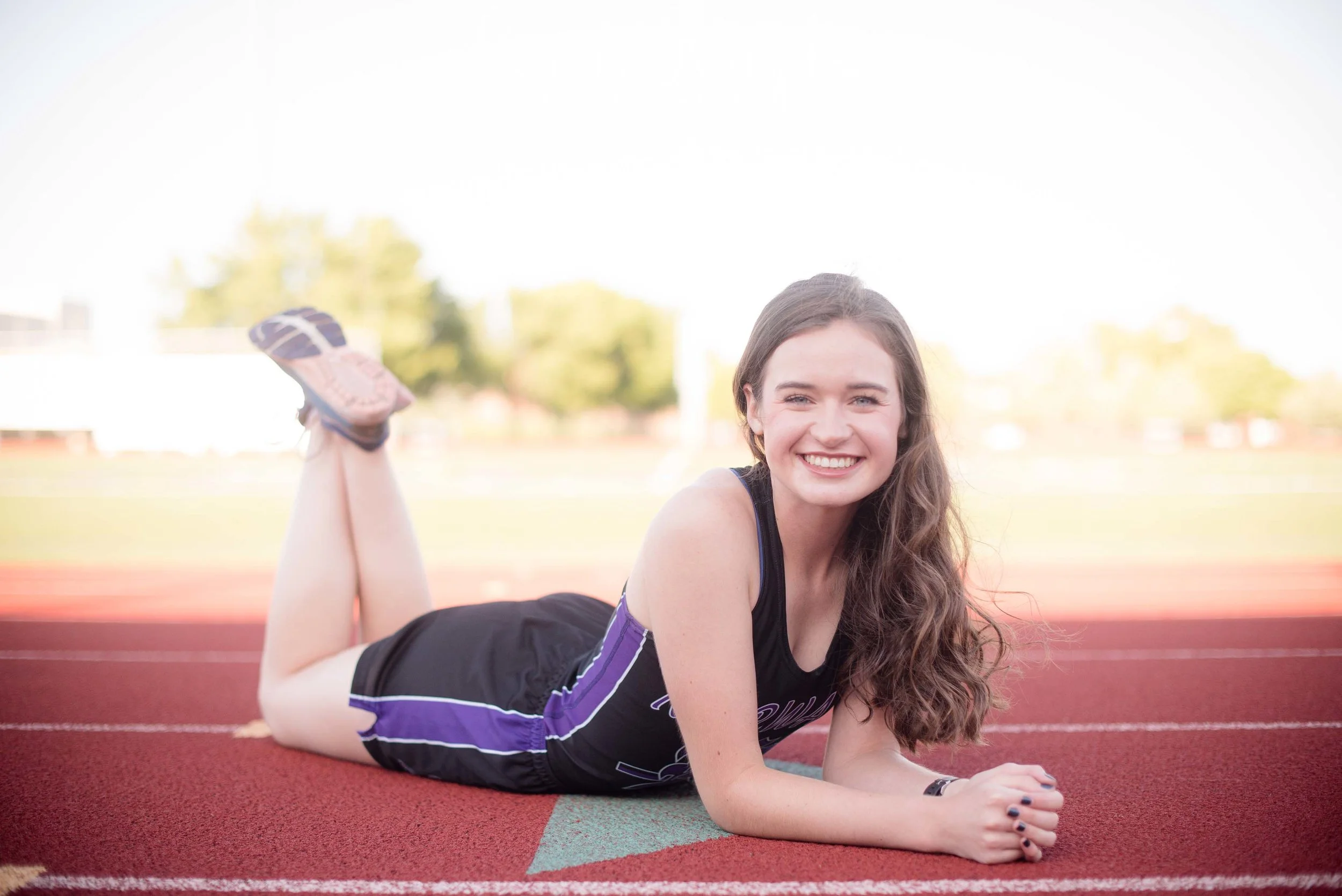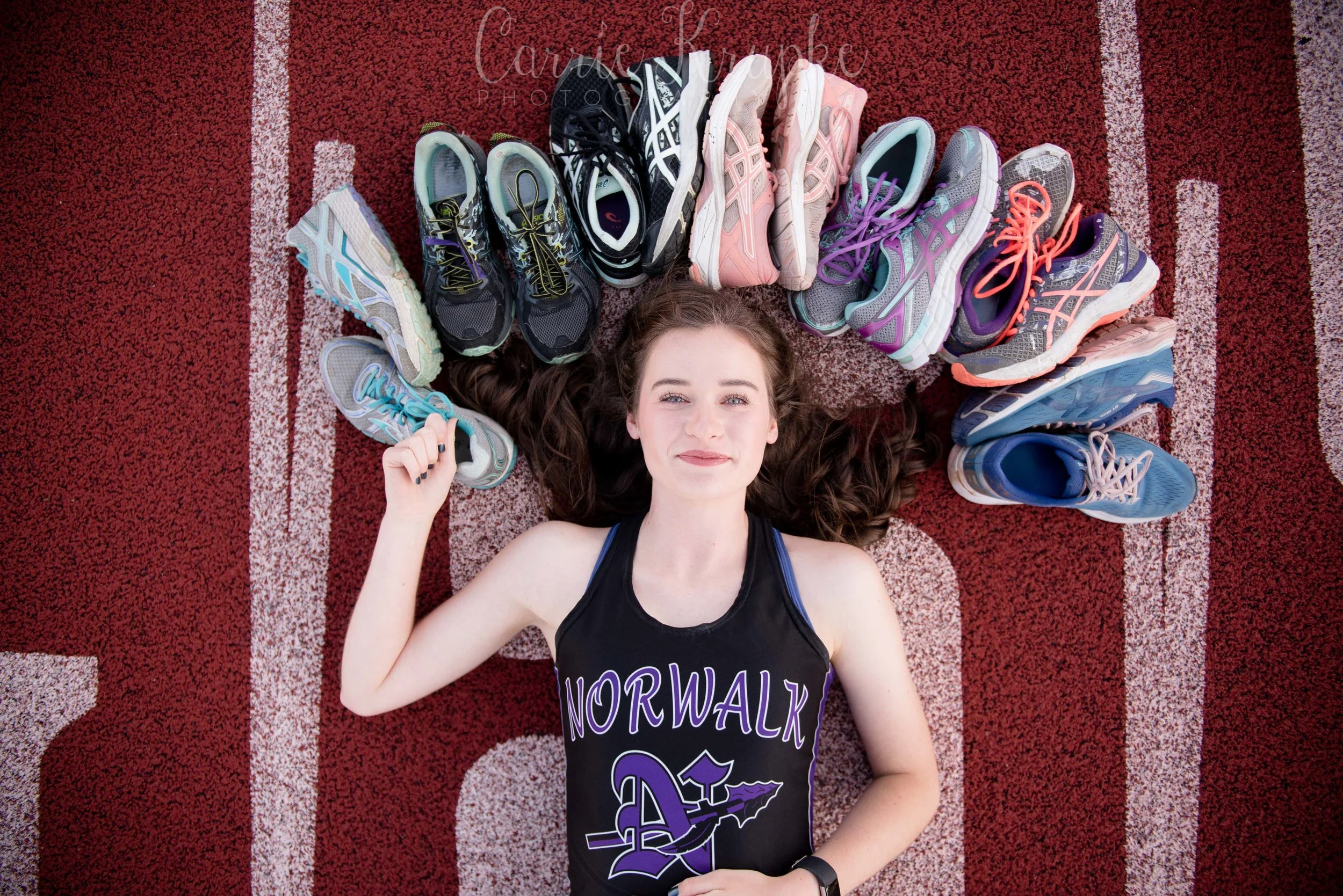 Speaking of the track, we headed to the Norwalk Stadium first to document her Cross Country and Track participation throughout her high school career and I got schooled in what all the symbols on the track actually mean! Namely, the “handoff triangle” as I call it….