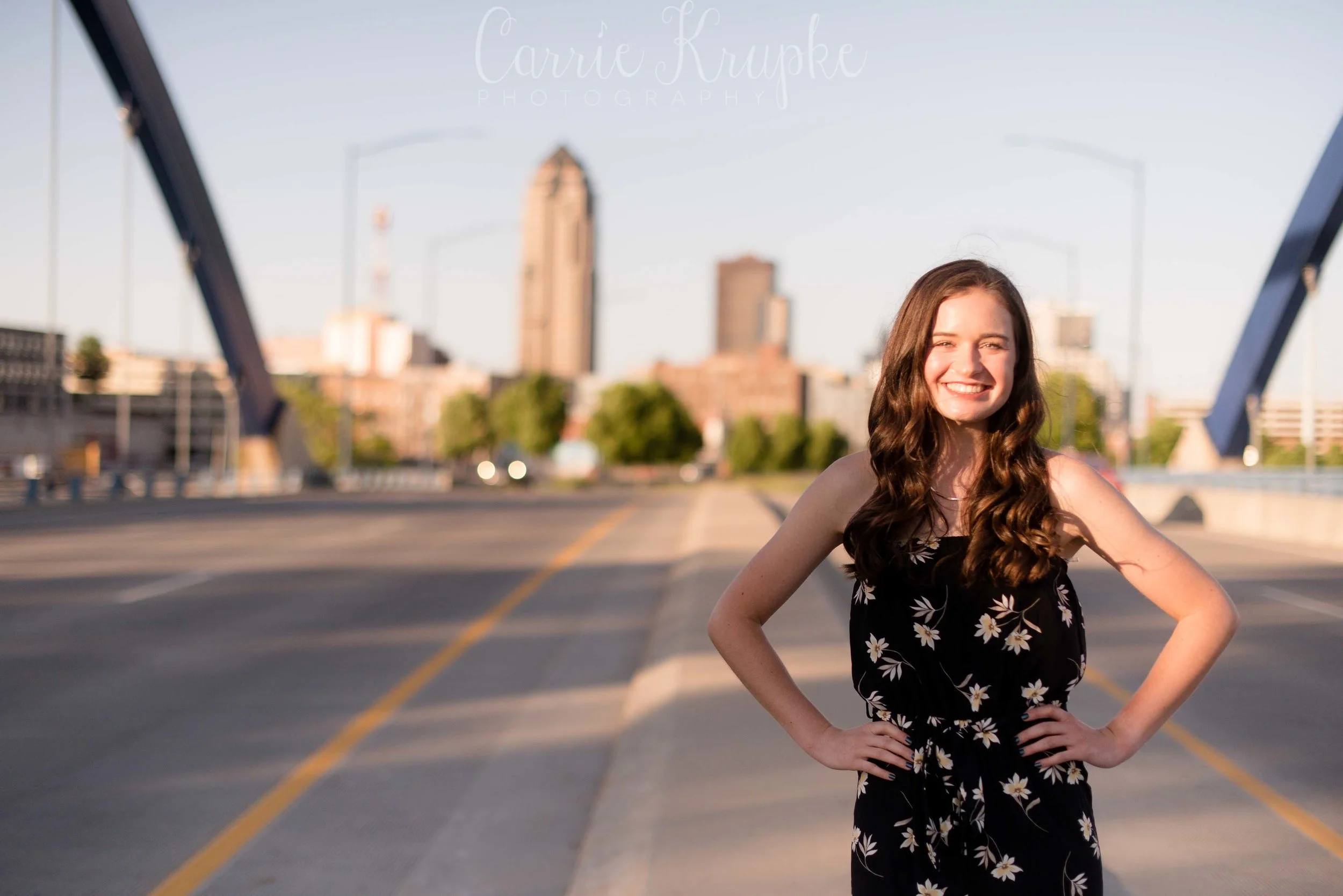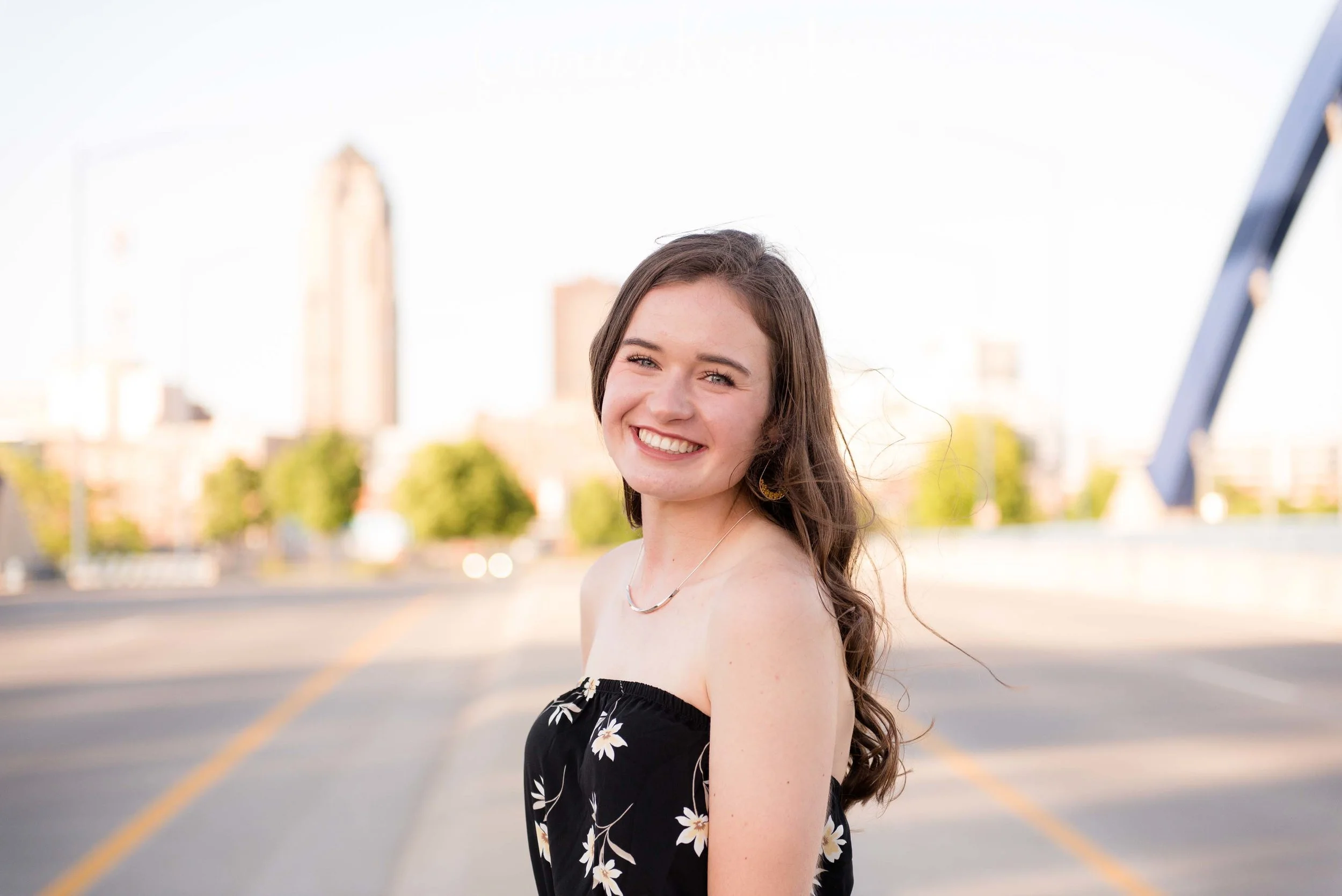 We headed downtown and Emily’s main request was getting photos with the Des Moines skyline in them. We grabbed this option on our way into downtown and then headed farther in: