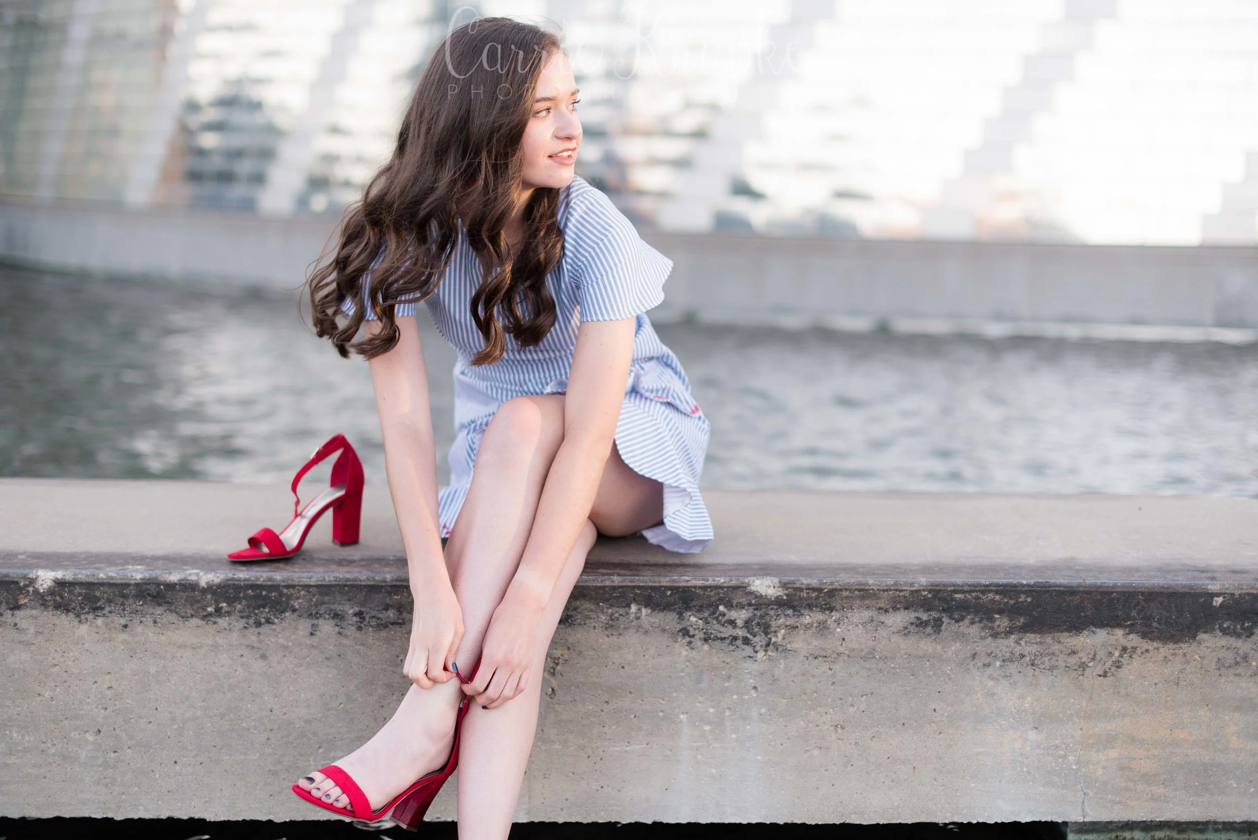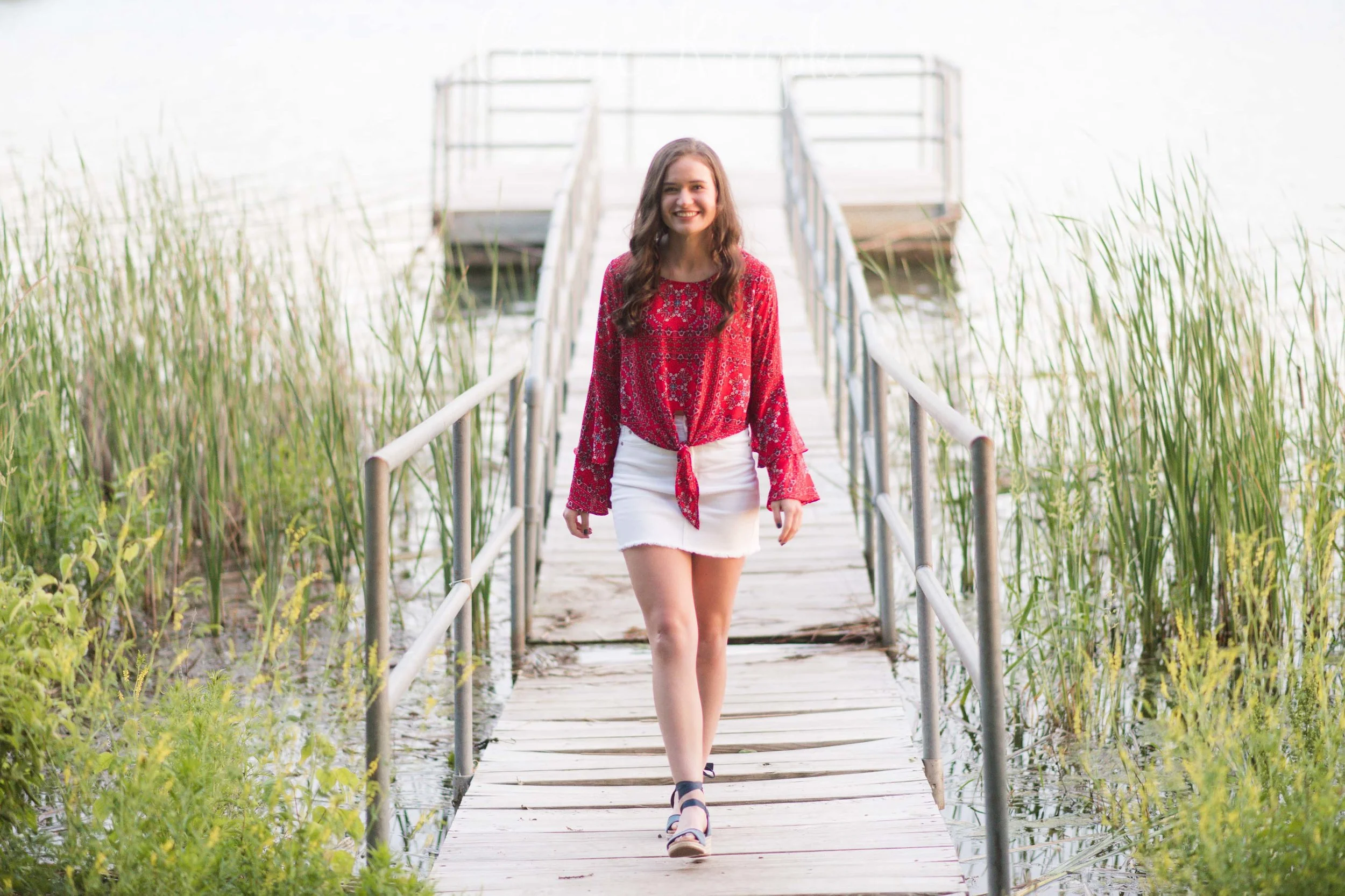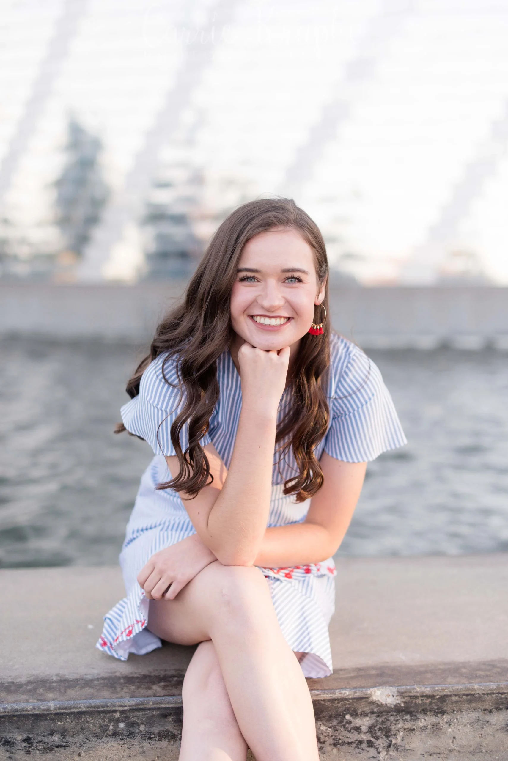 Most of the time, I will know my seniors from previously encountering them in the Norwalk School District. Little did I know when I photographed the NHS Track Meet in April, I was encountering Emily chasing down a 4×800 relay record that her team of 4 would eventually shatter later in the season. When we got together for her senior session, I was greeted by a wide smile, perfectly curled locks and the brightest blue eyes framed by lashes for days. I almost didn’t recognize the girl I’d photographed at the Track Meet who had her long hair in a pony tail braid and was sweating her heart out on the track!