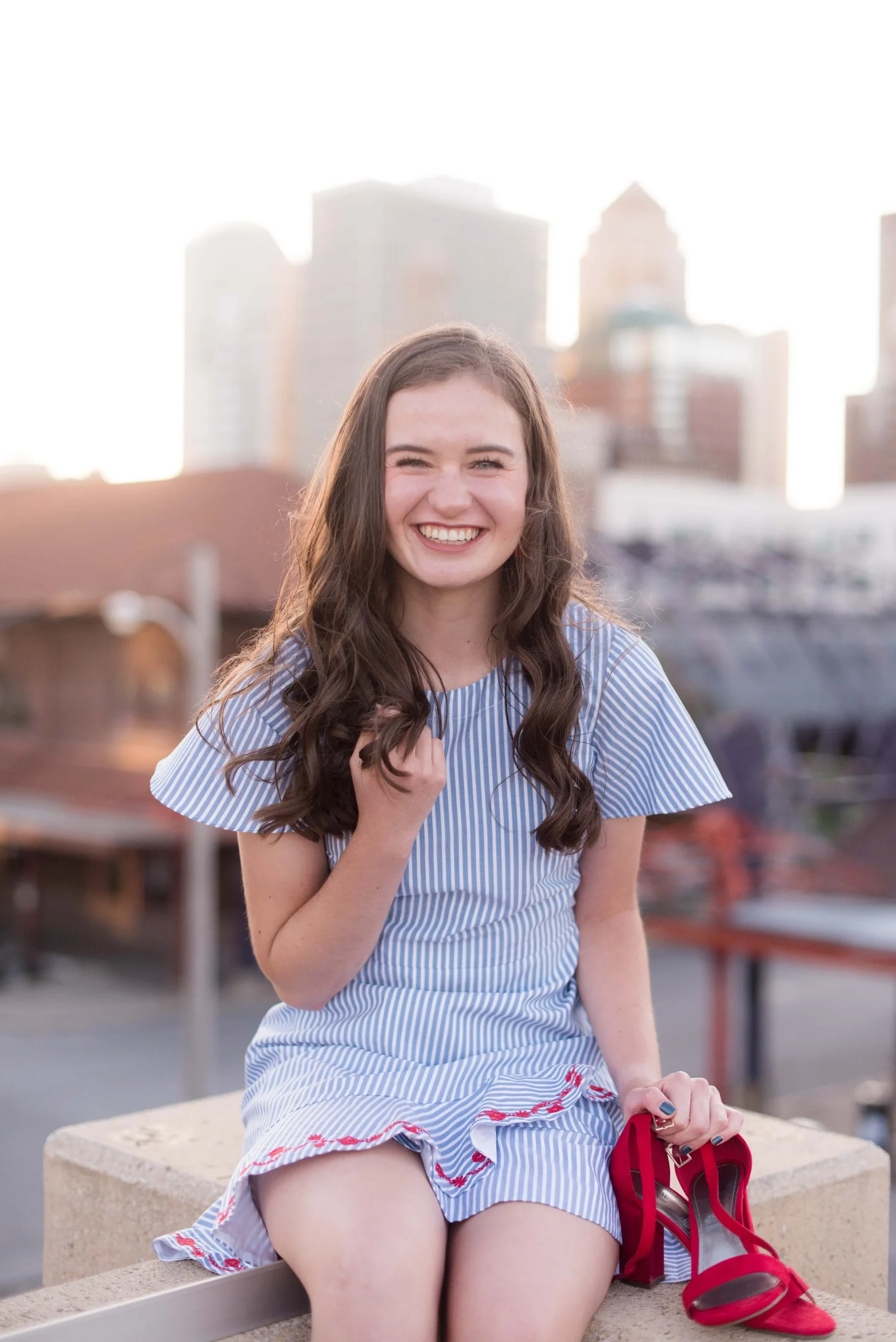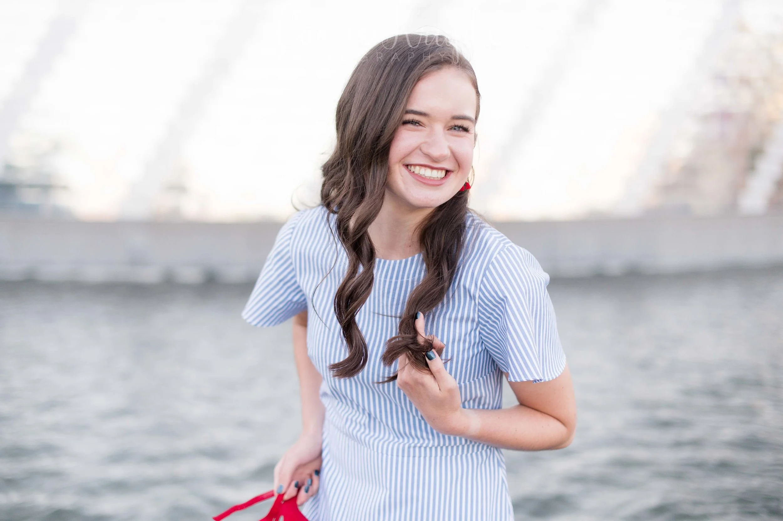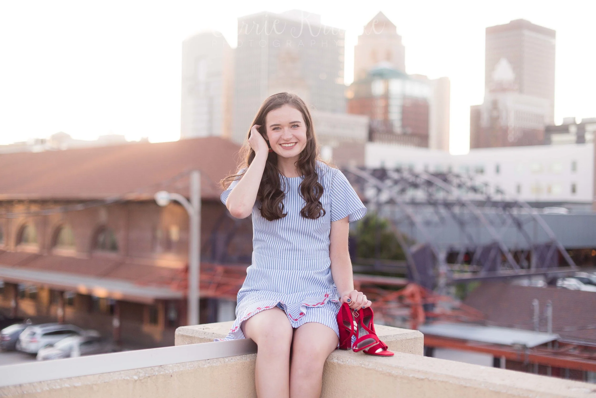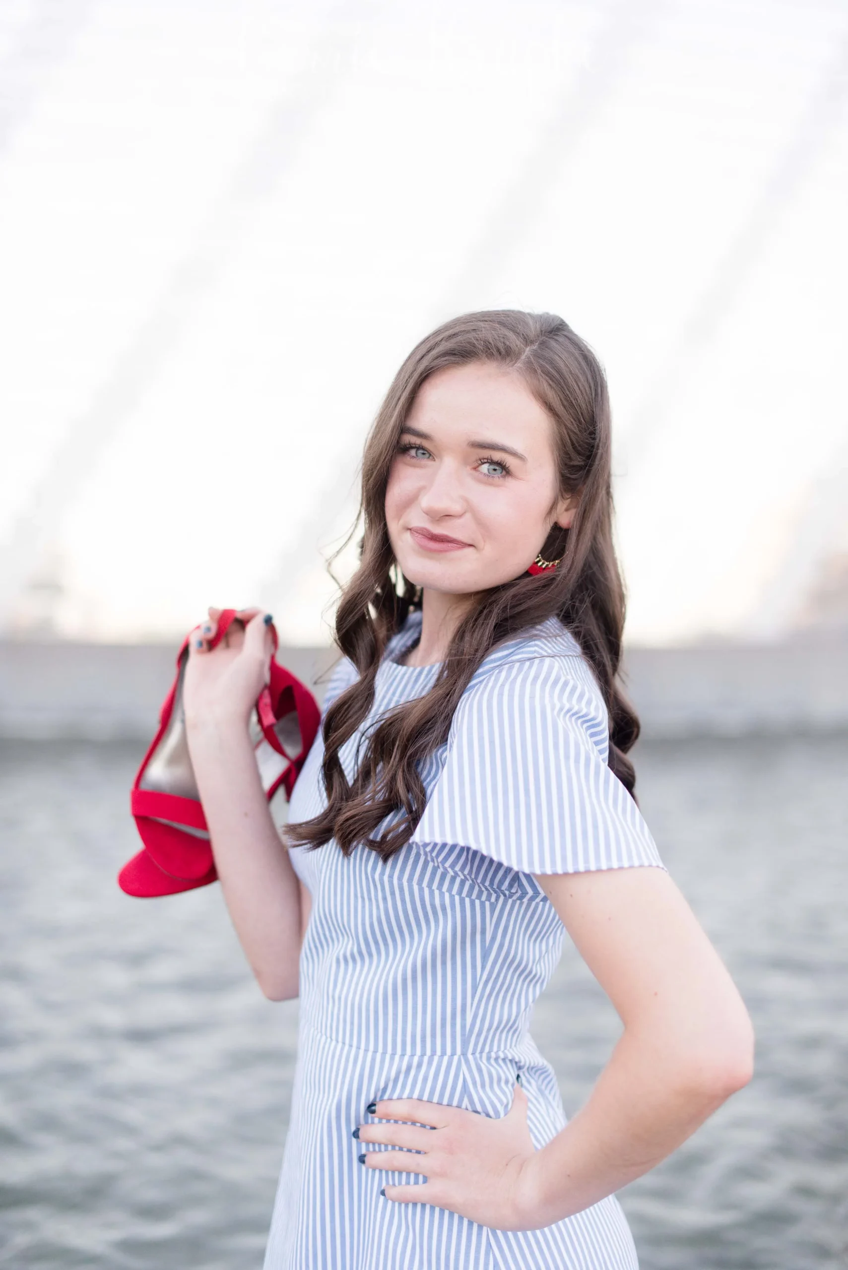 Most of the time, I will know my seniors from previously encountering them in the Norwalk School District. Little did I know when I photographed the NHS Track Meet in April, I was encountering Emily chasing down a 4×800 relay record that her team of 4 would eventually shatter later in the season. When we got together for her senior session, I was greeted by a wide smile, perfectly curled locks and the brightest blue eyes framed by lashes for days. I almost didn’t recognize the girl I’d photographed at the Track Meet who had her long hair in a pony tail braid and was sweating her heart out on the track!
