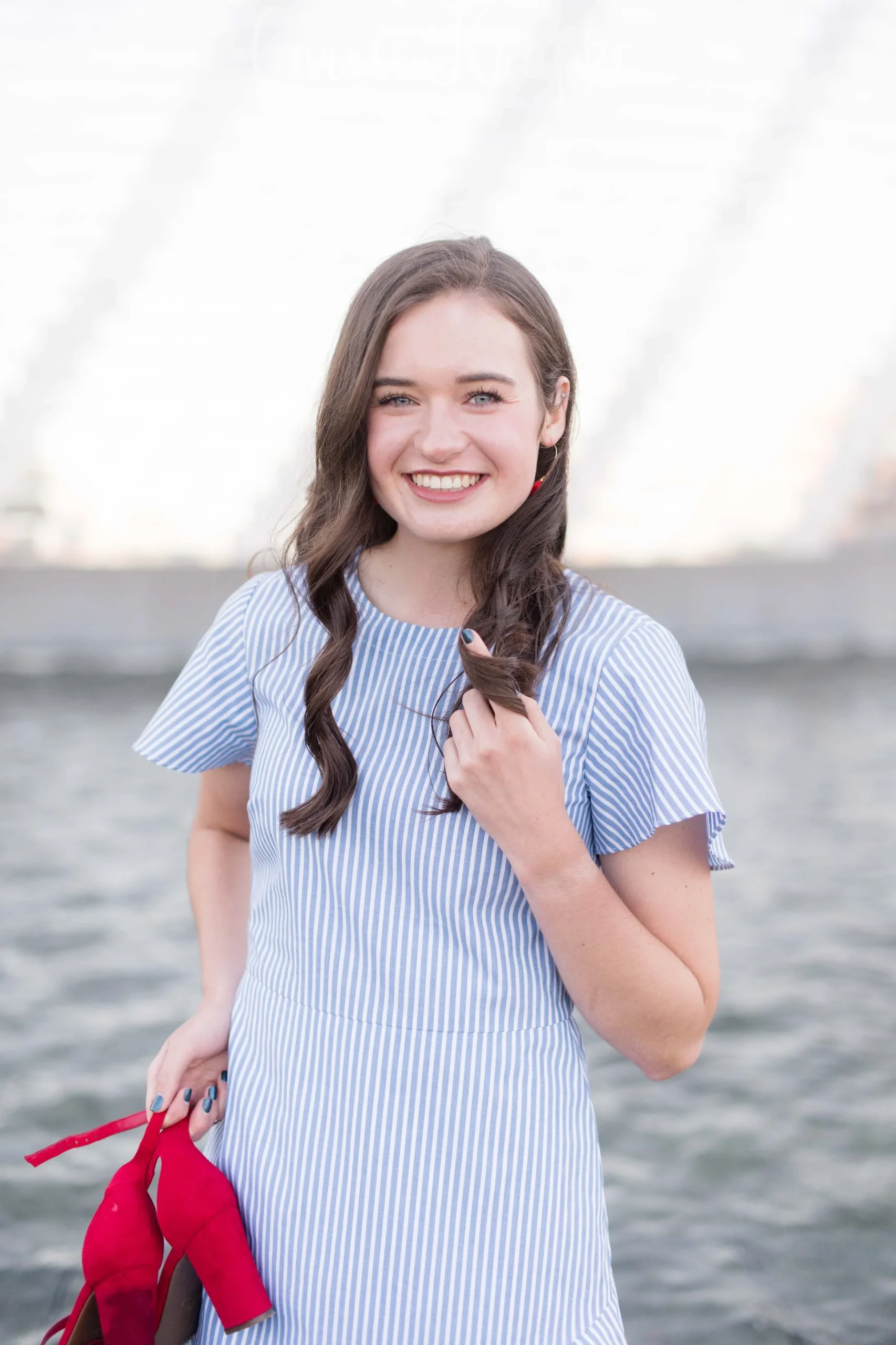 I absolutely love this spot in the later afternoon/evening hours! There’s an apartment building right across from us that reflects the sun’s light perfectly and Emily even got a few cat calls from passers-by while we were here! (That’s the one with the really big laugh that you’ll see a few photos down…) I loved her dress just as much as our location (even Gerard commented on it when he saw these images-it’s just that much FUN!)