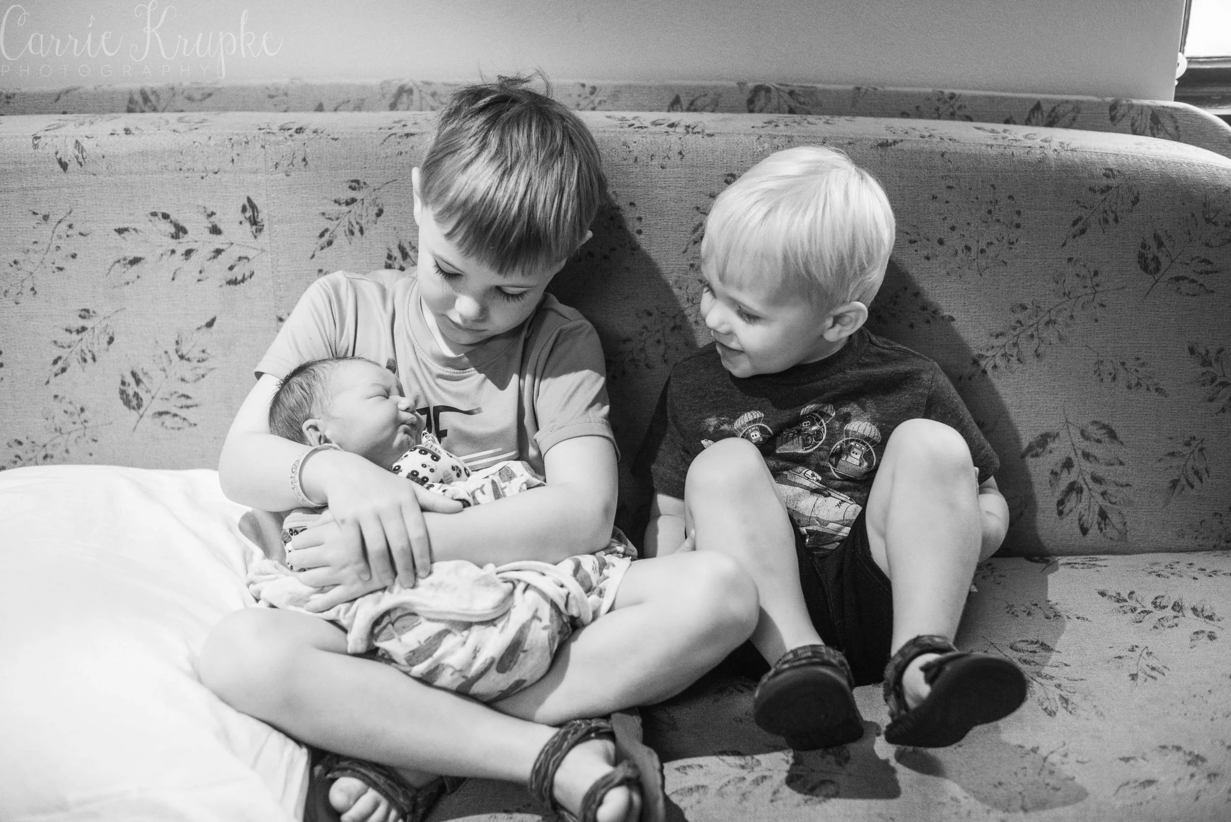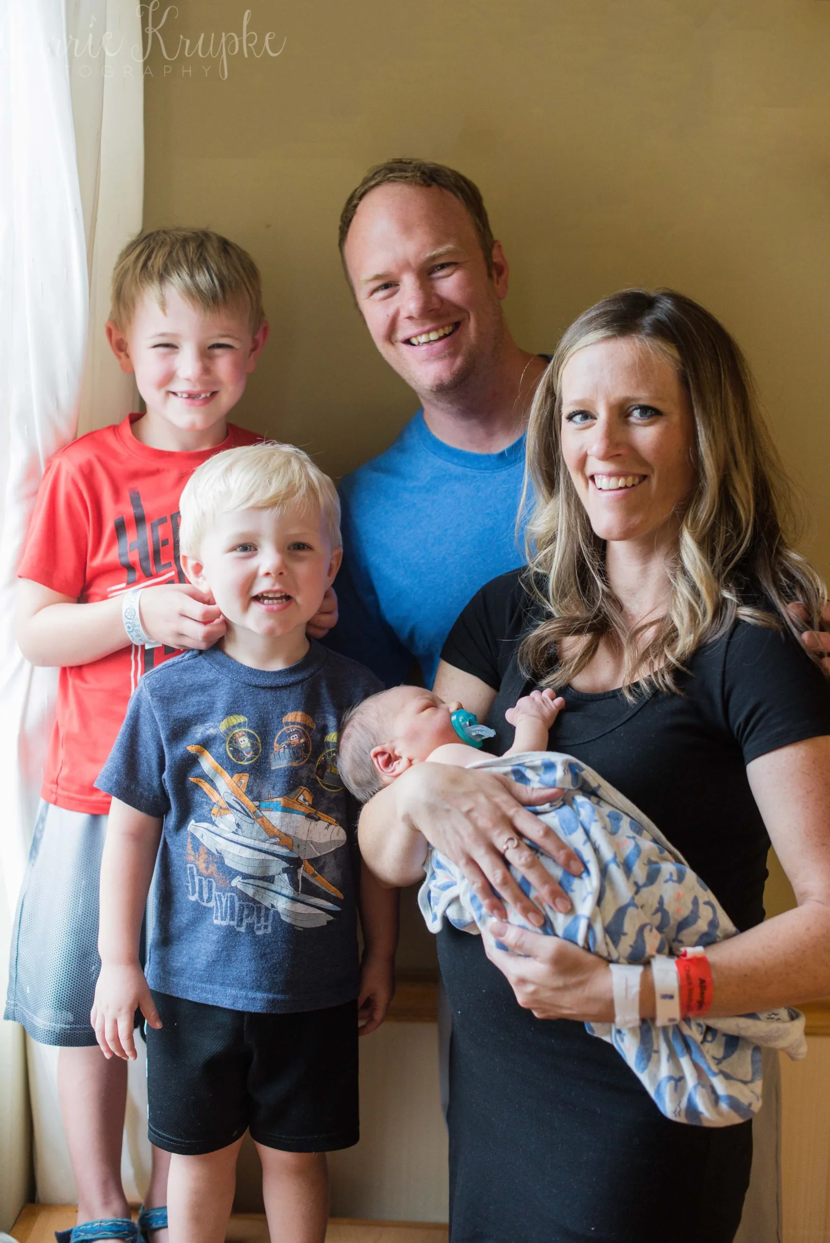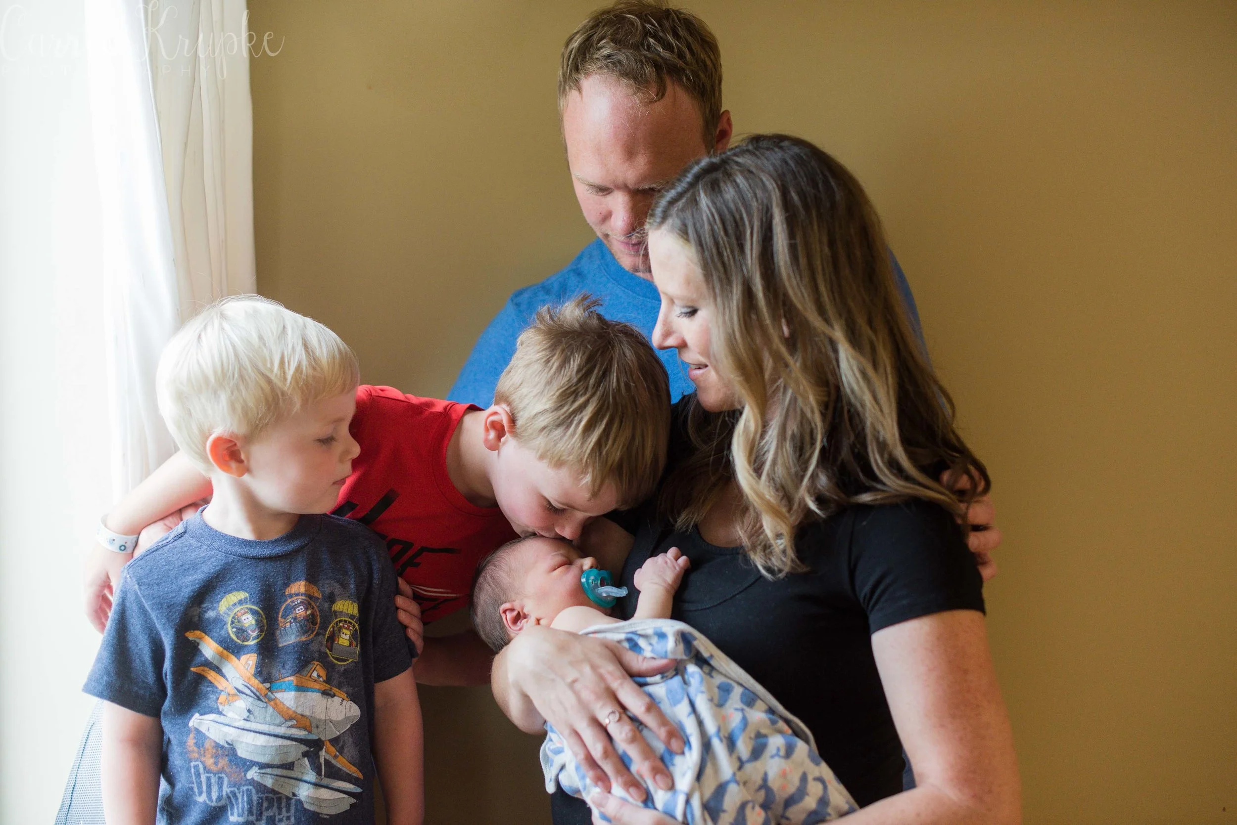 Wow, it’s been awhile since I’ve been in a delivery room at a hospital! Aside from delivering Lochlyn, I last photographed Amanda’s second child, Blaine a month before Loch’s arrival. Now, Amanda + Trevor have three boys and I was in awe as a fly on the wall of their room with the chaos of Blaine & Graham wrestling Trevor, how calm Amanda was. In rapid succession, doctor and nurse and lactation consultant came in throughout my hour there and checked in on Baby Vaughn, Amanda, any meds that needed to be given, and started the Discharge Day routine. Throughout it all, Amanda stayed focused, unshaken and was clear-headed. If she weren’t holding Vaughn, you wouldn’t know she’d just given birth, let alone to a 9lb baby!!