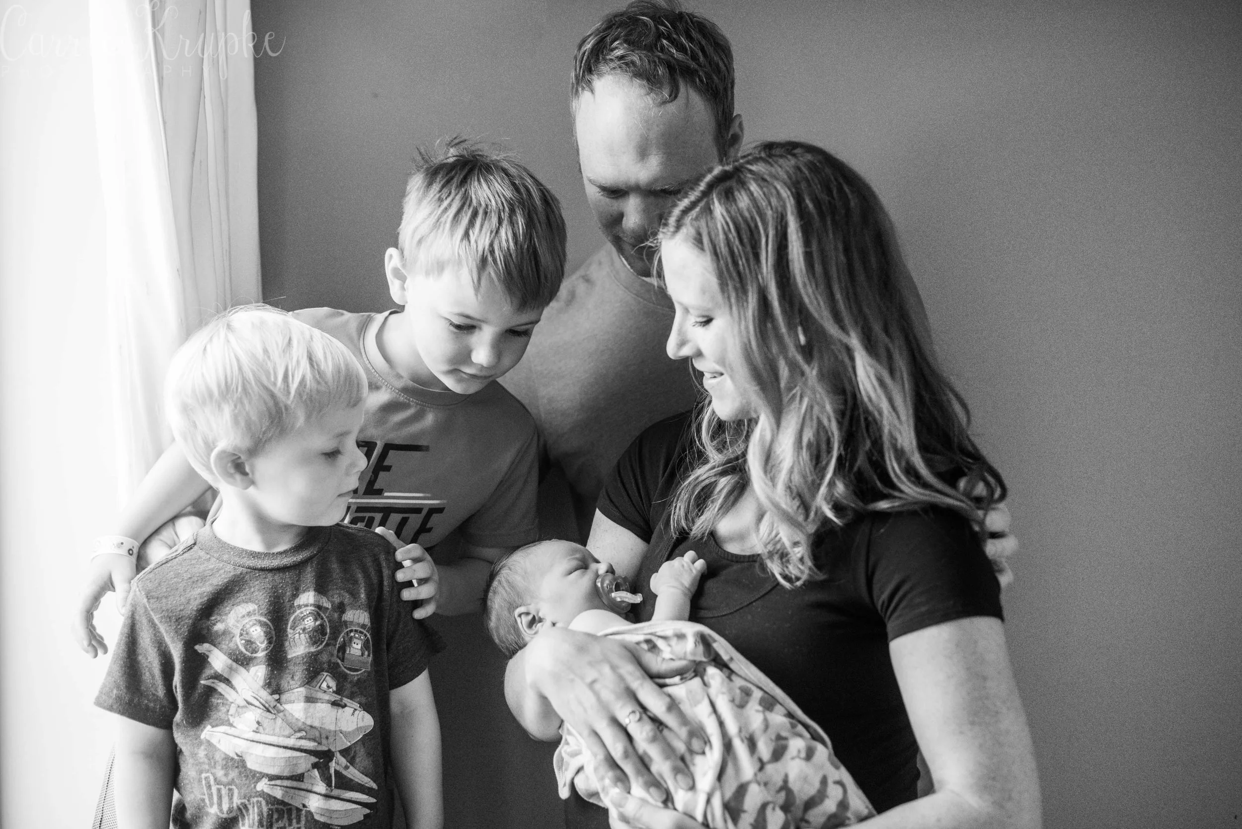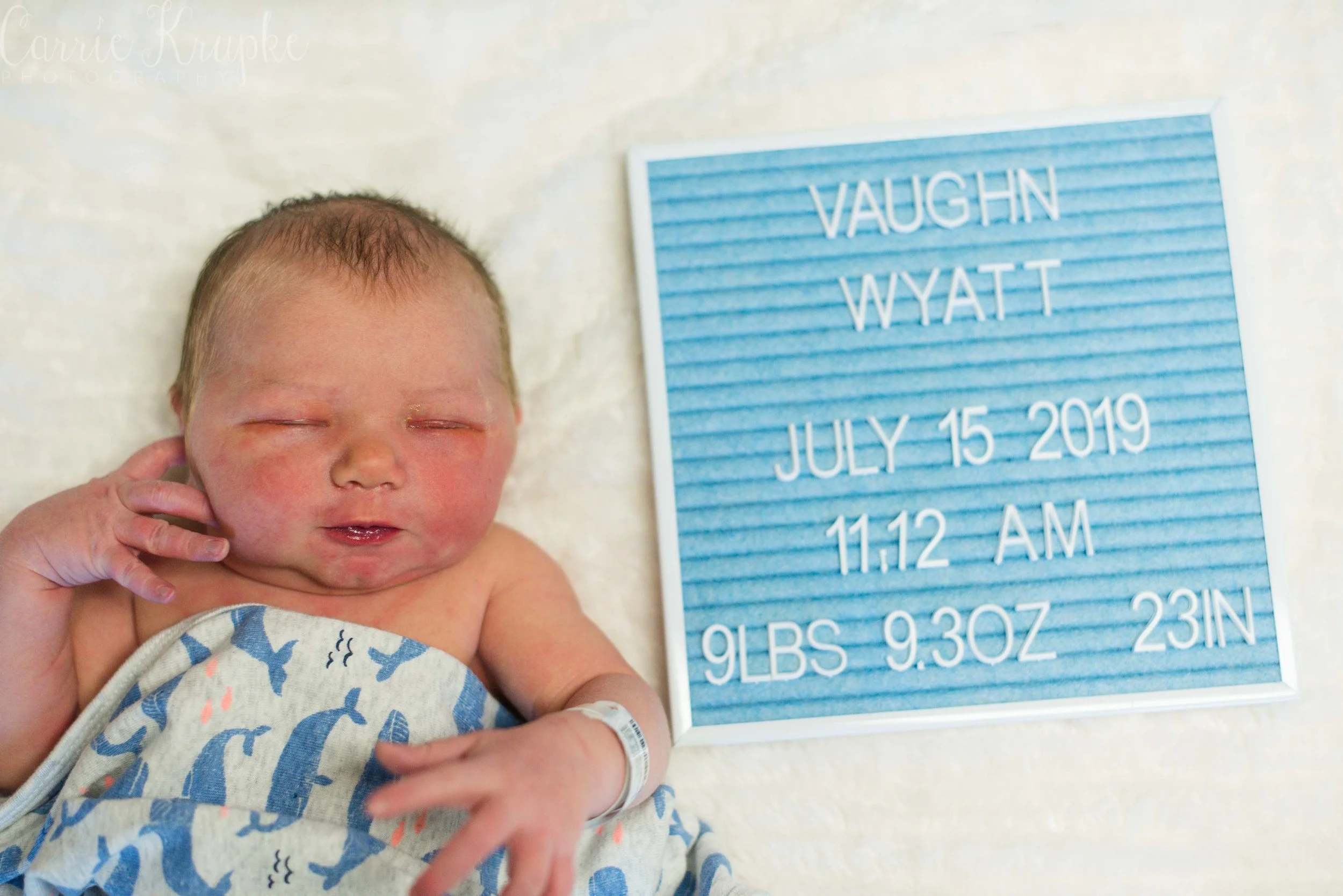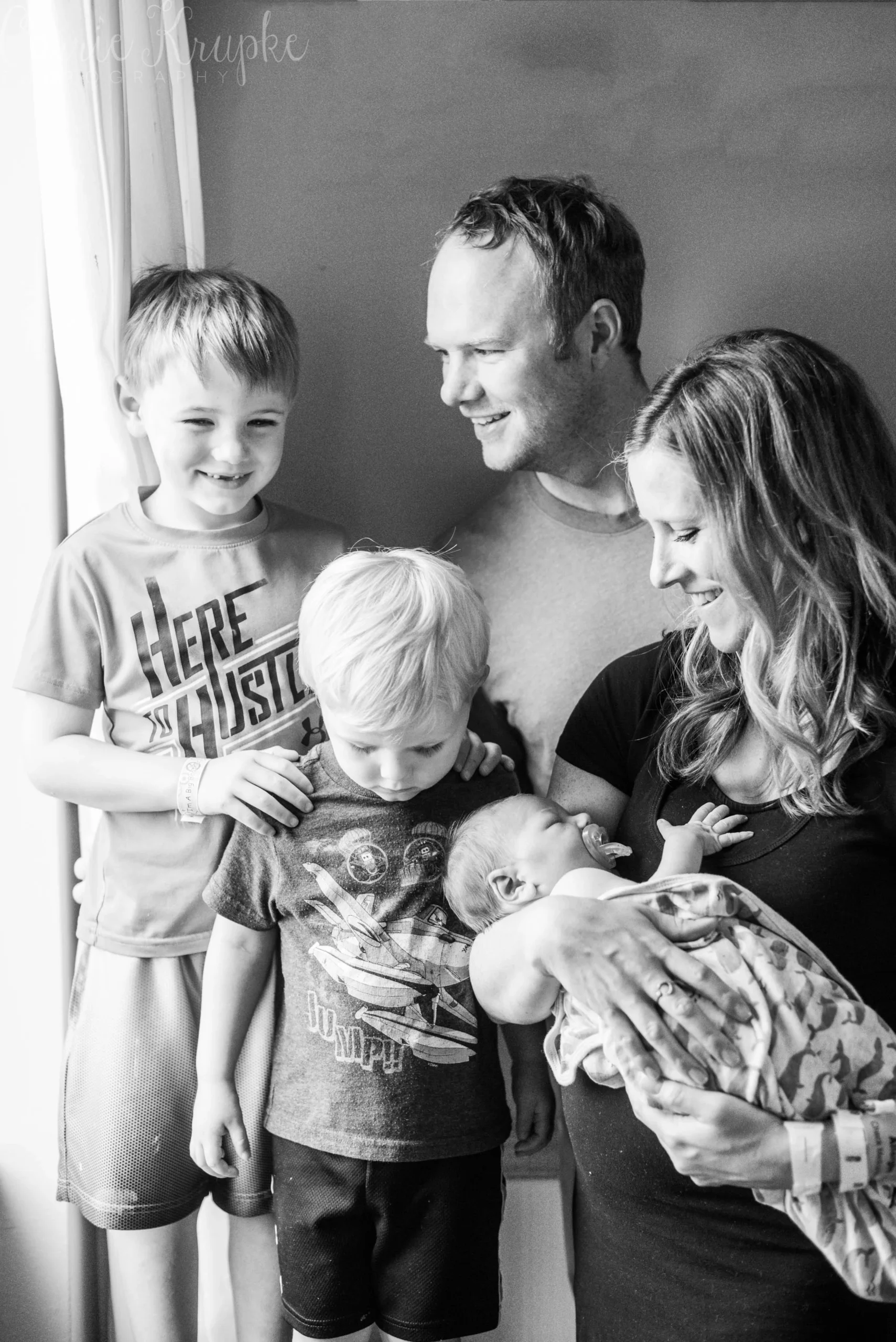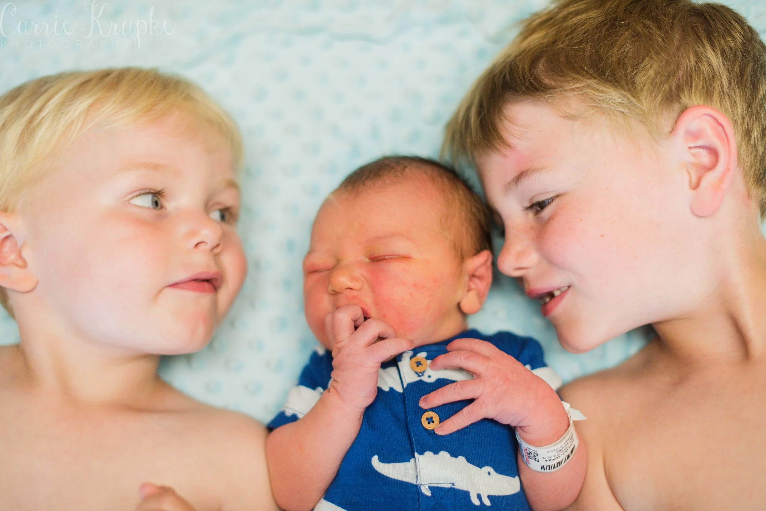 Wow, it’s been awhile since I’ve been in a delivery room at a hospital! Aside from delivering Lochlyn, I last photographed Amanda’s second child, Blaine a month before Loch’s arrival. Now, Amanda + Trevor have three boys and I was in awe as a fly on the wall of their room with the chaos of Blaine & Graham wrestling Trevor, how calm Amanda was. In rapid succession, doctor and nurse and lactation consultant came in throughout my hour there and checked in on Baby Vaughn, Amanda, any meds that needed to be given, and started the Discharge Day routine. Throughout it all, Amanda stayed focused, unshaken and was clear-headed. If she weren’t holding Vaughn, you wouldn’t know she’d just given birth, let alone to a 9lb baby!!