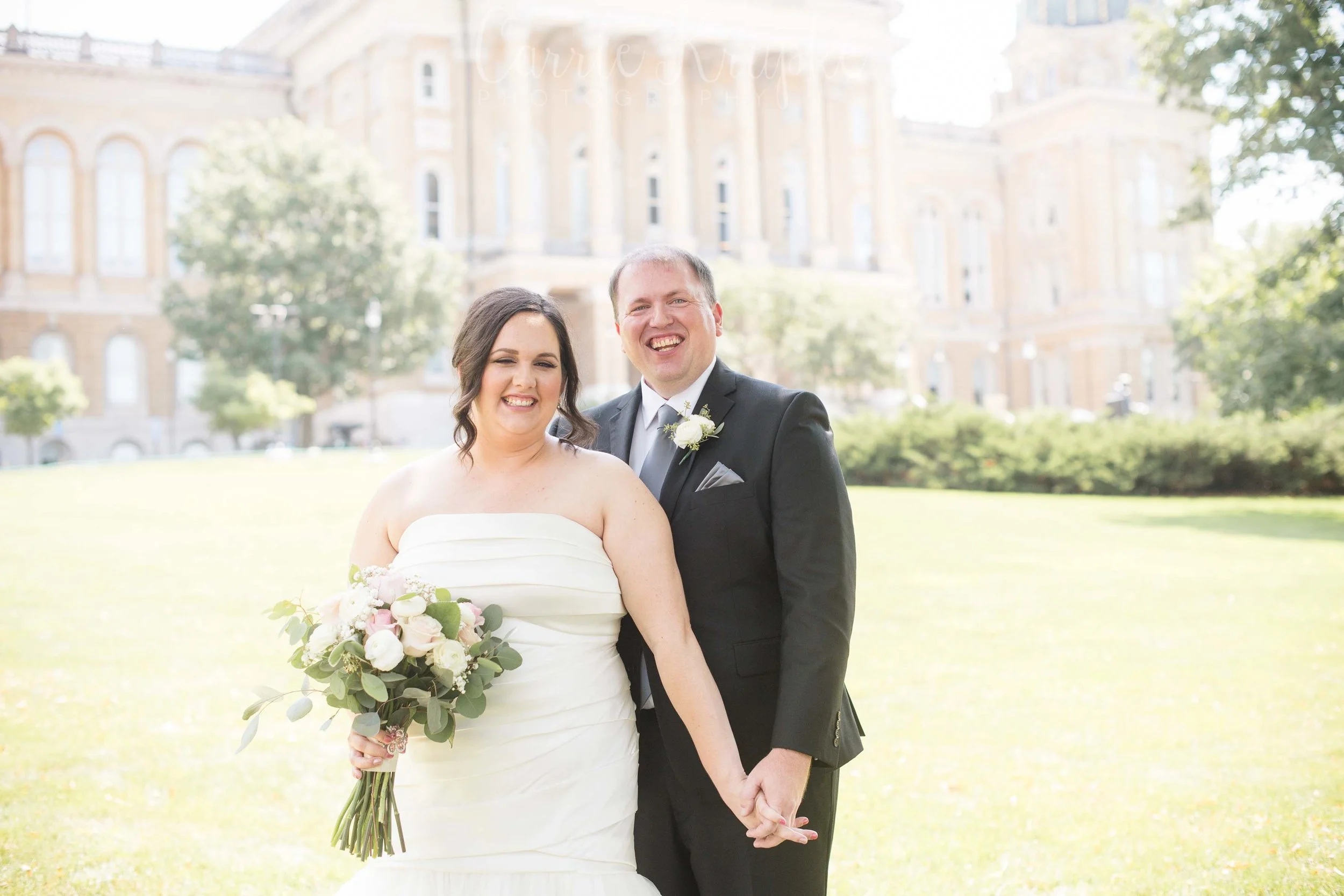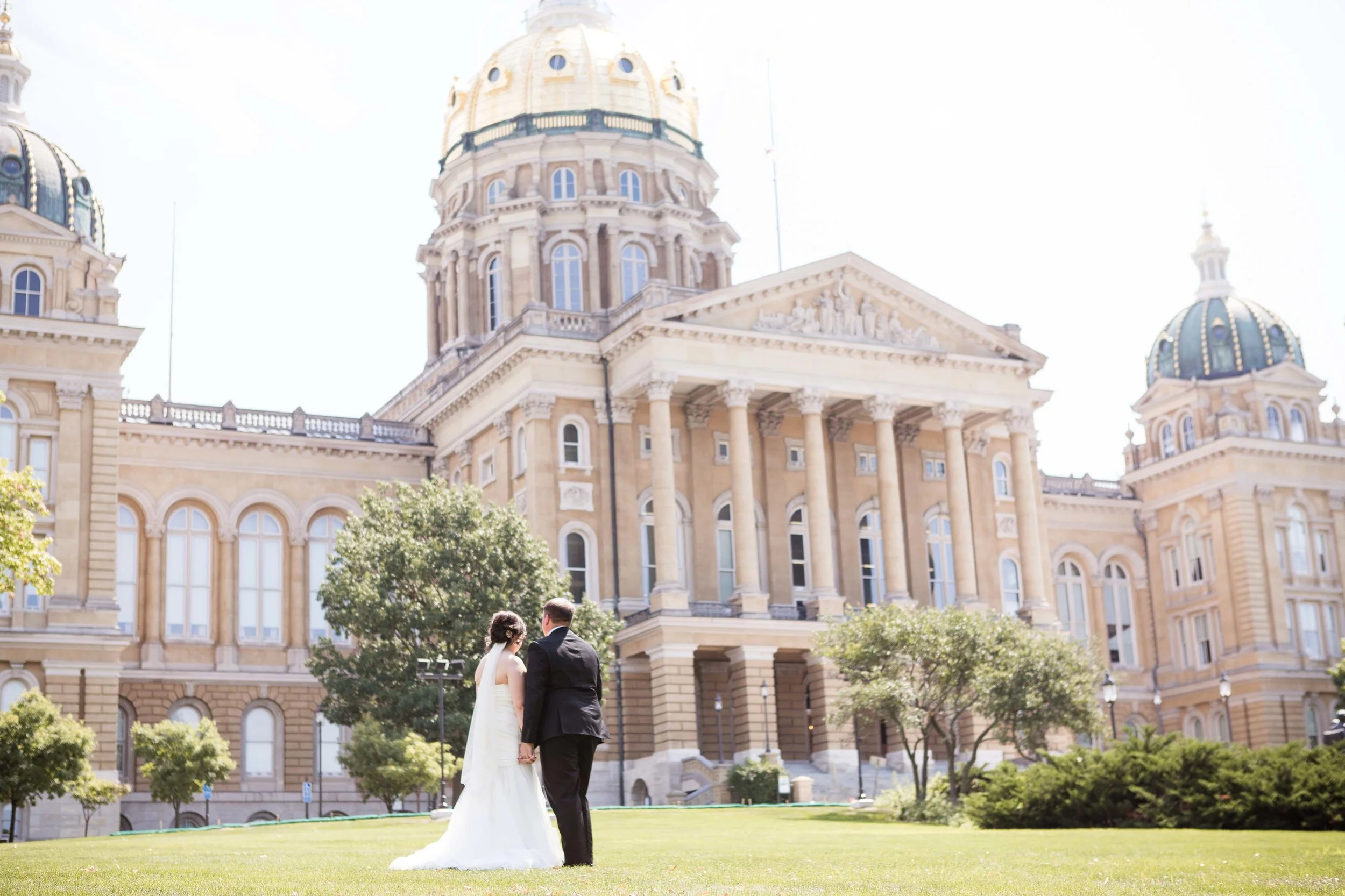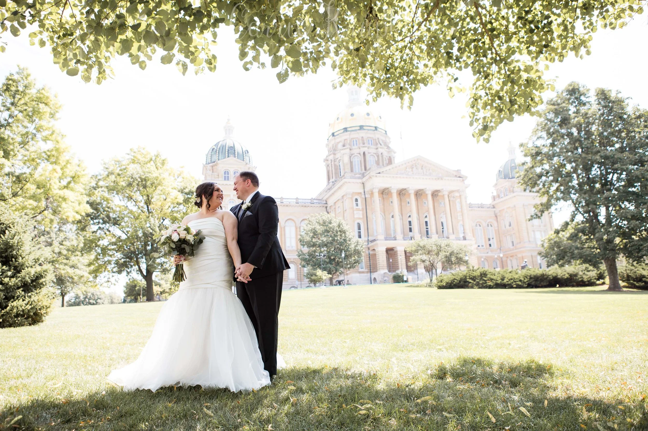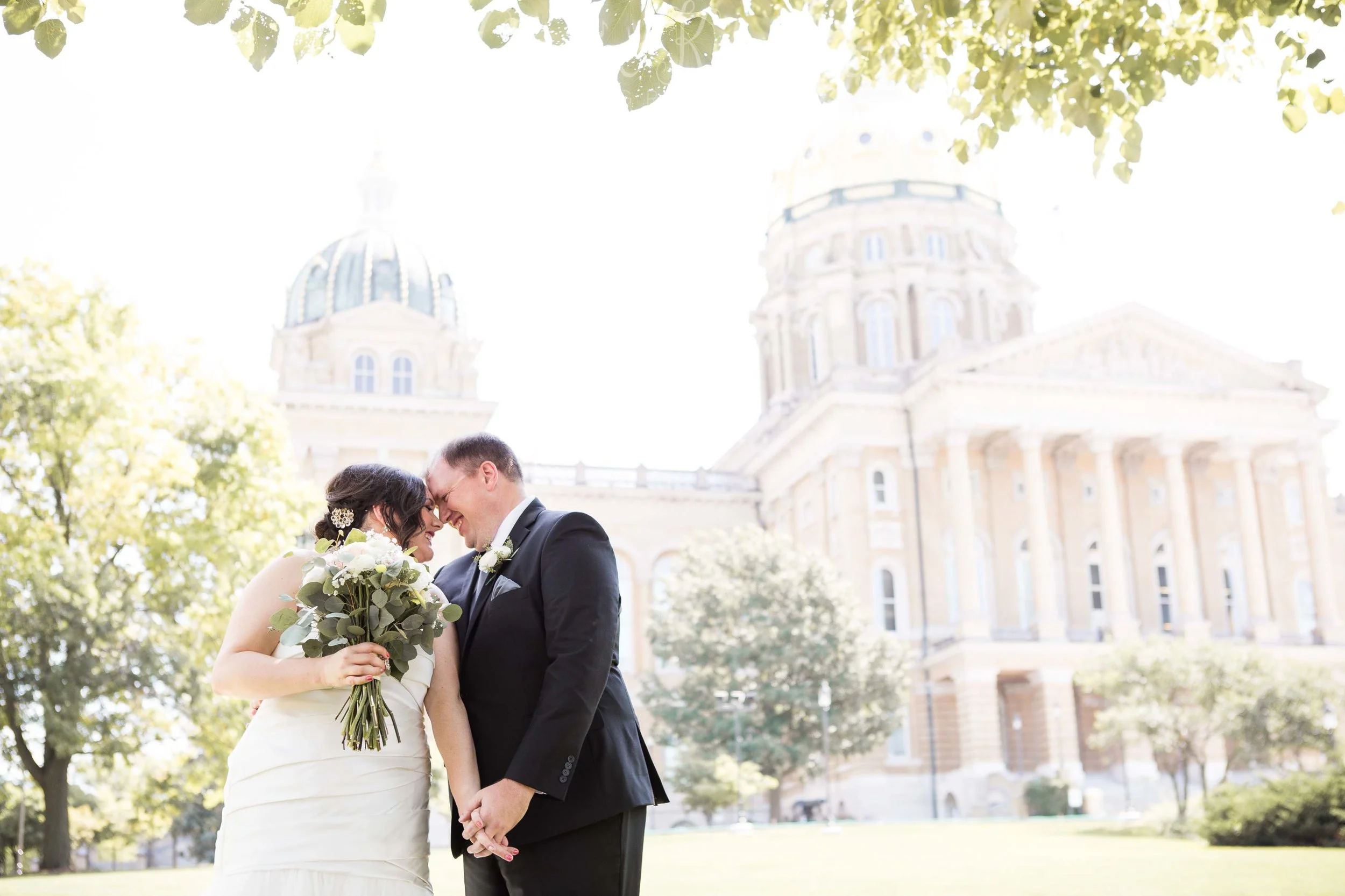 I walked into the bridal getting ready room at our church and I don’t think it’s ever been that calm before! I was in awe and immediately took a deep breath. This was going to be an awesome day! Megan & Brad had the sweetest First Look at the Capitol downtown and then we wrapped photos super early at Drake University. Many of these photos were taken by my awesome side-kick, Sarah Heimbruch of Blue Ivy Photo.