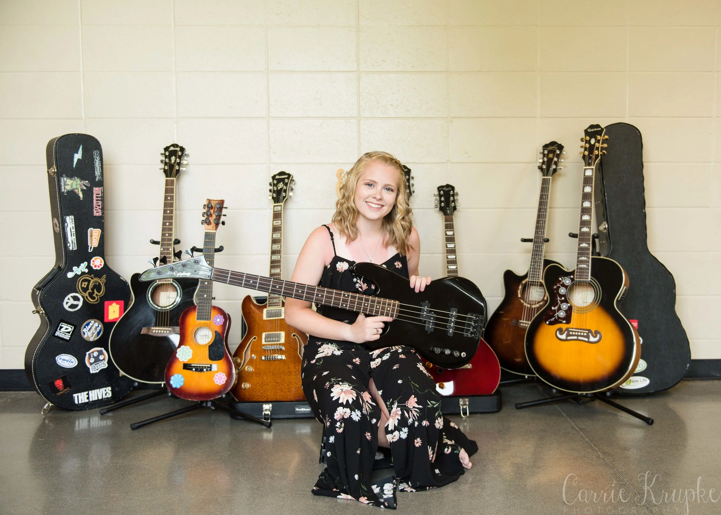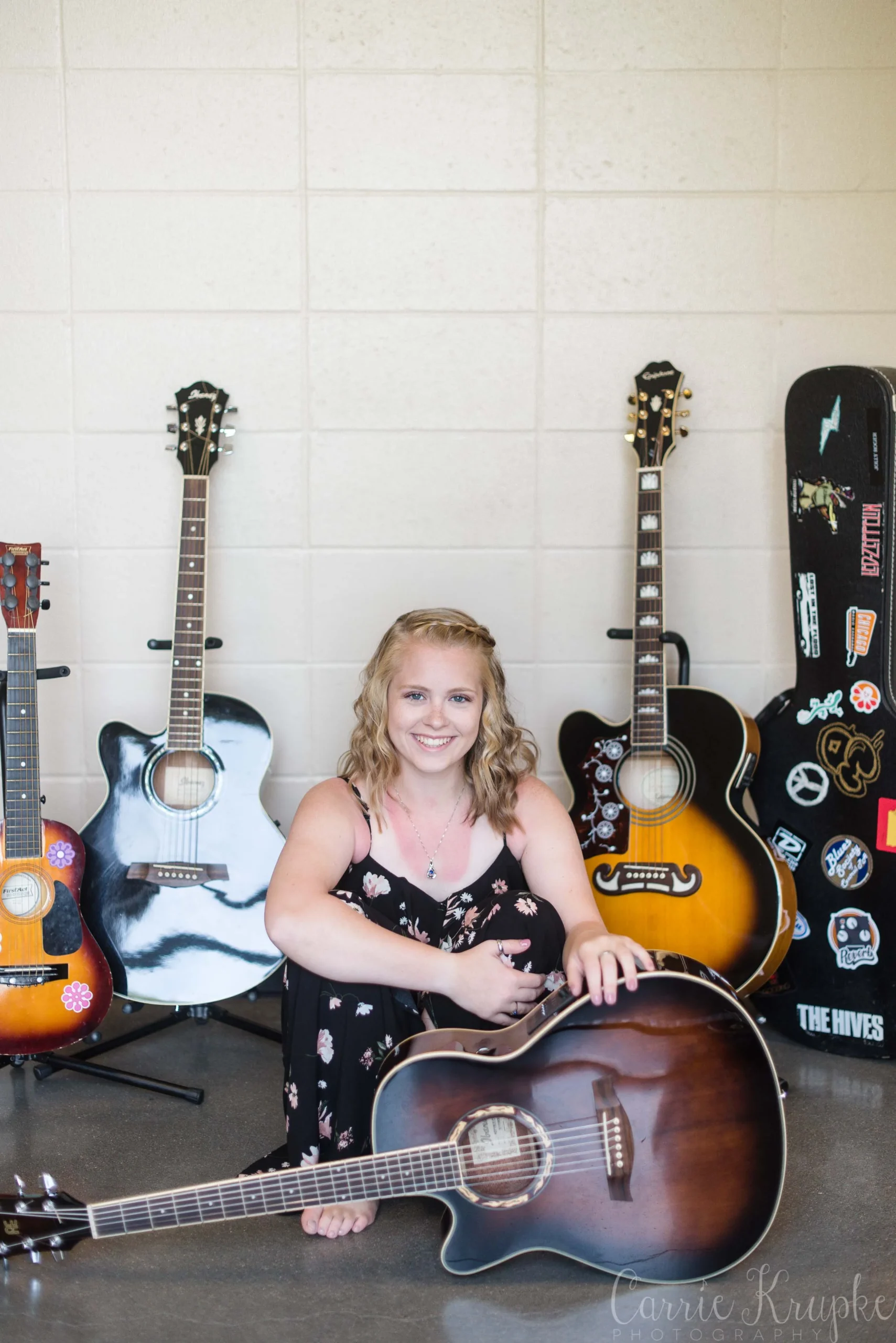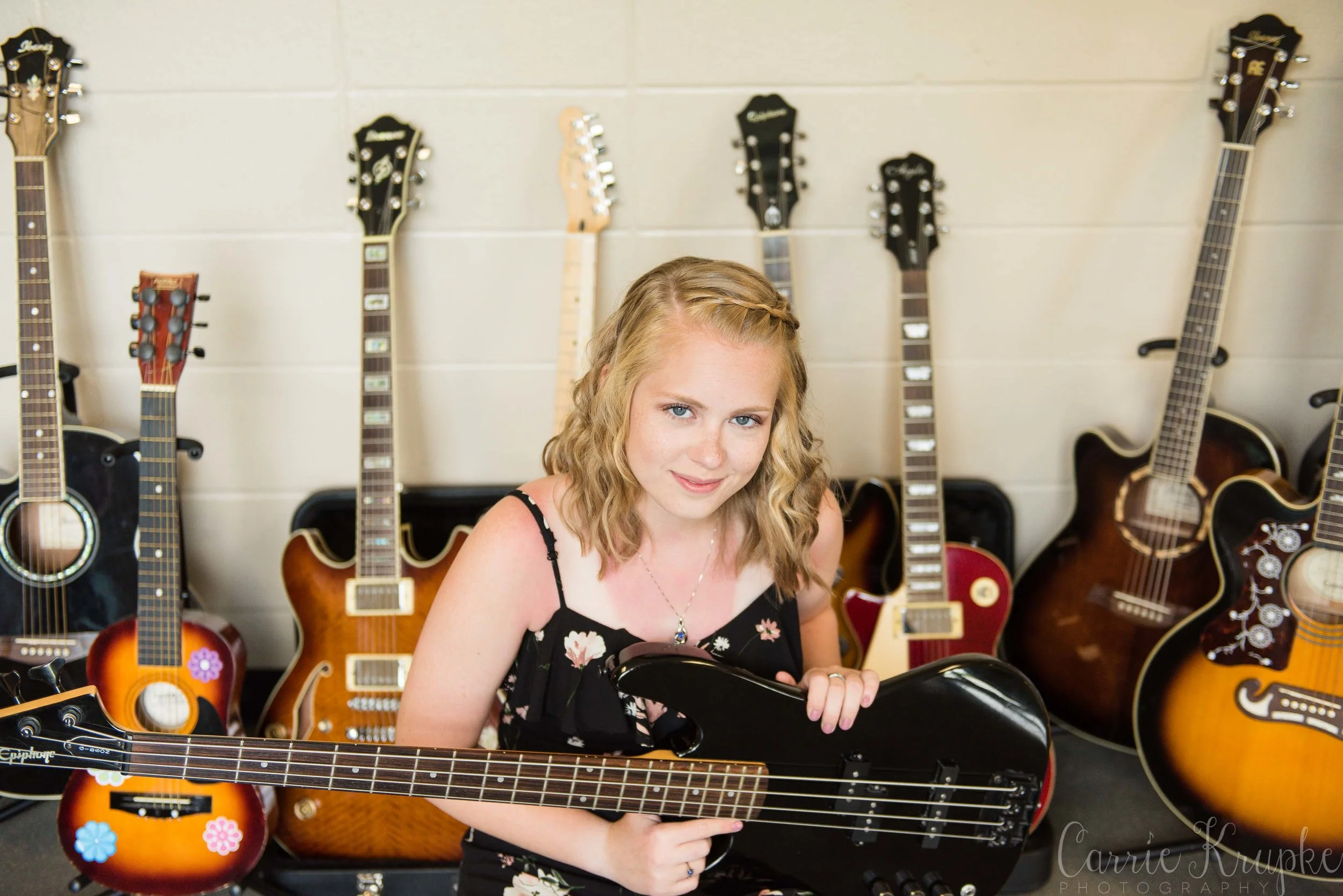 Vanessa is what I call and mover & a shaker. She gets the job done in a logical, pragmatic way that is no nonsense (with maybe a little bit of wit thrown in for good measure). She’s also a young lady who knows what she wants, so when she approached me to do indoor images solely with her guitars, I knew we were looking at a mini senior session. Bless their hearts, Vanessa and her mom Val lugged NINE guitars to our session together (leaving 4 more at home!) and thankfully, they all fit in Vanessa’s truck! Phew.