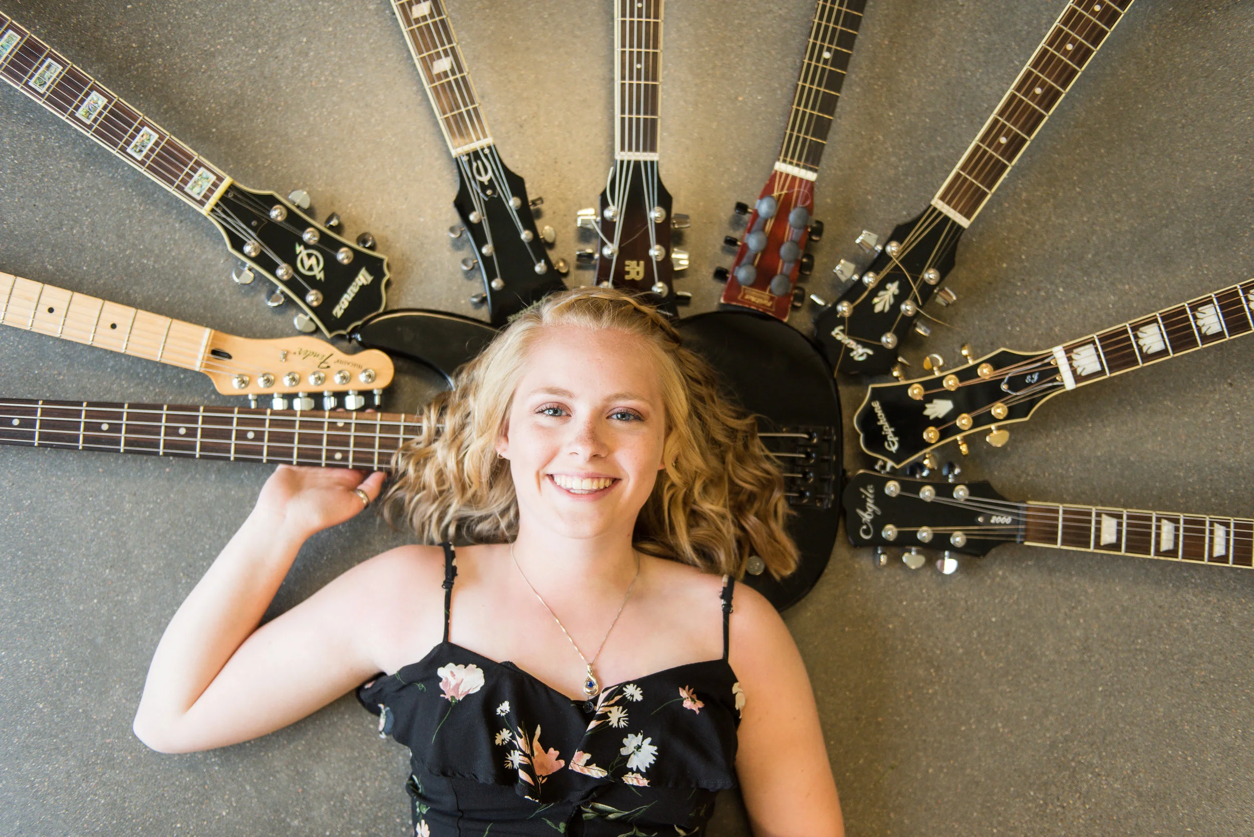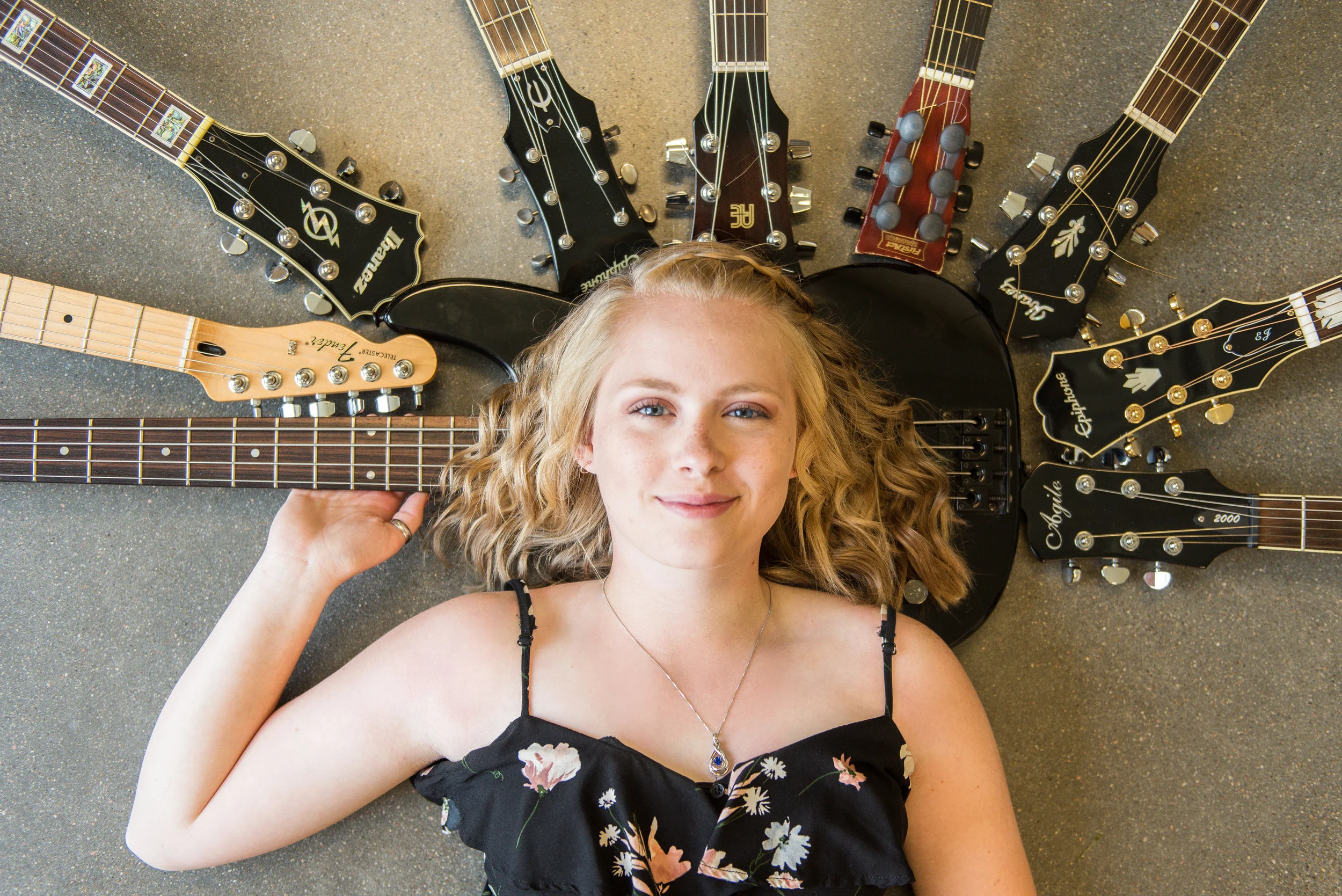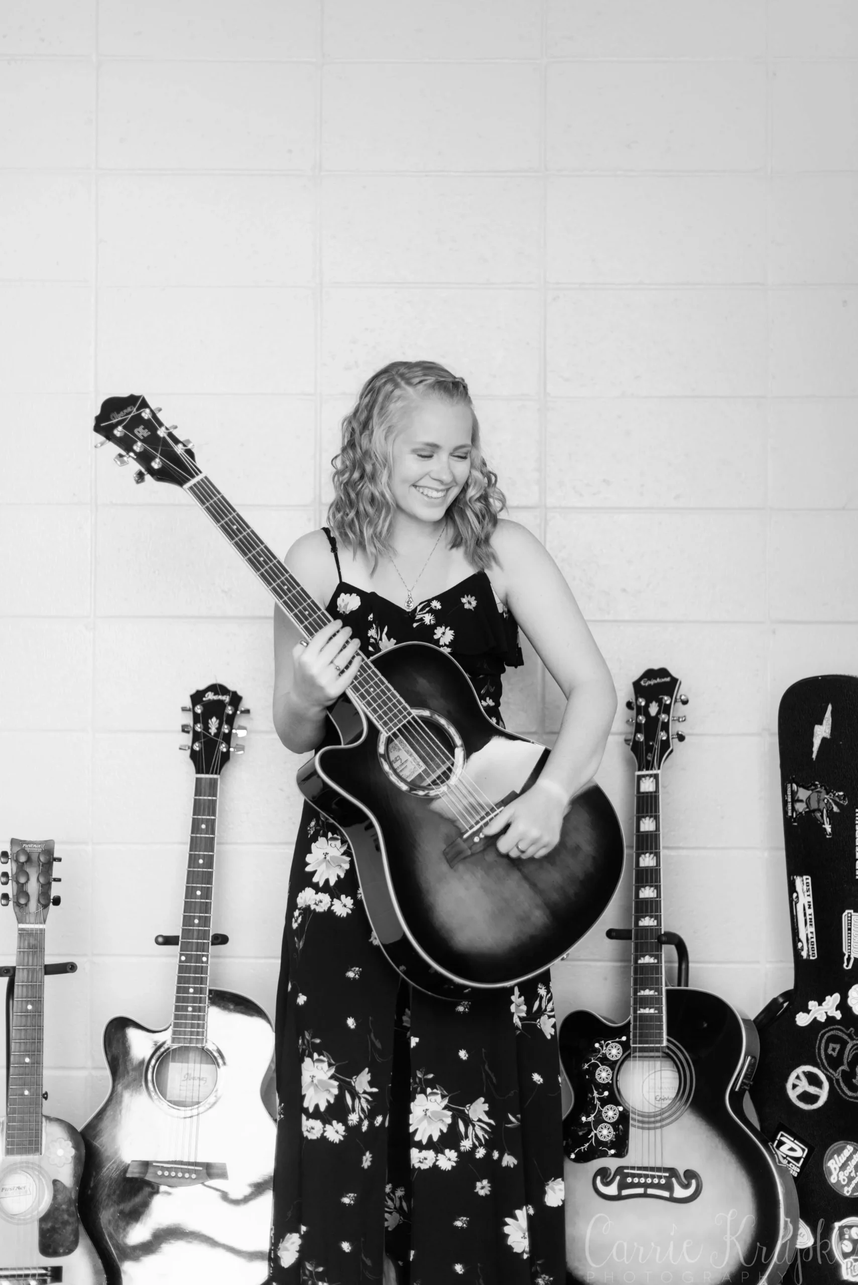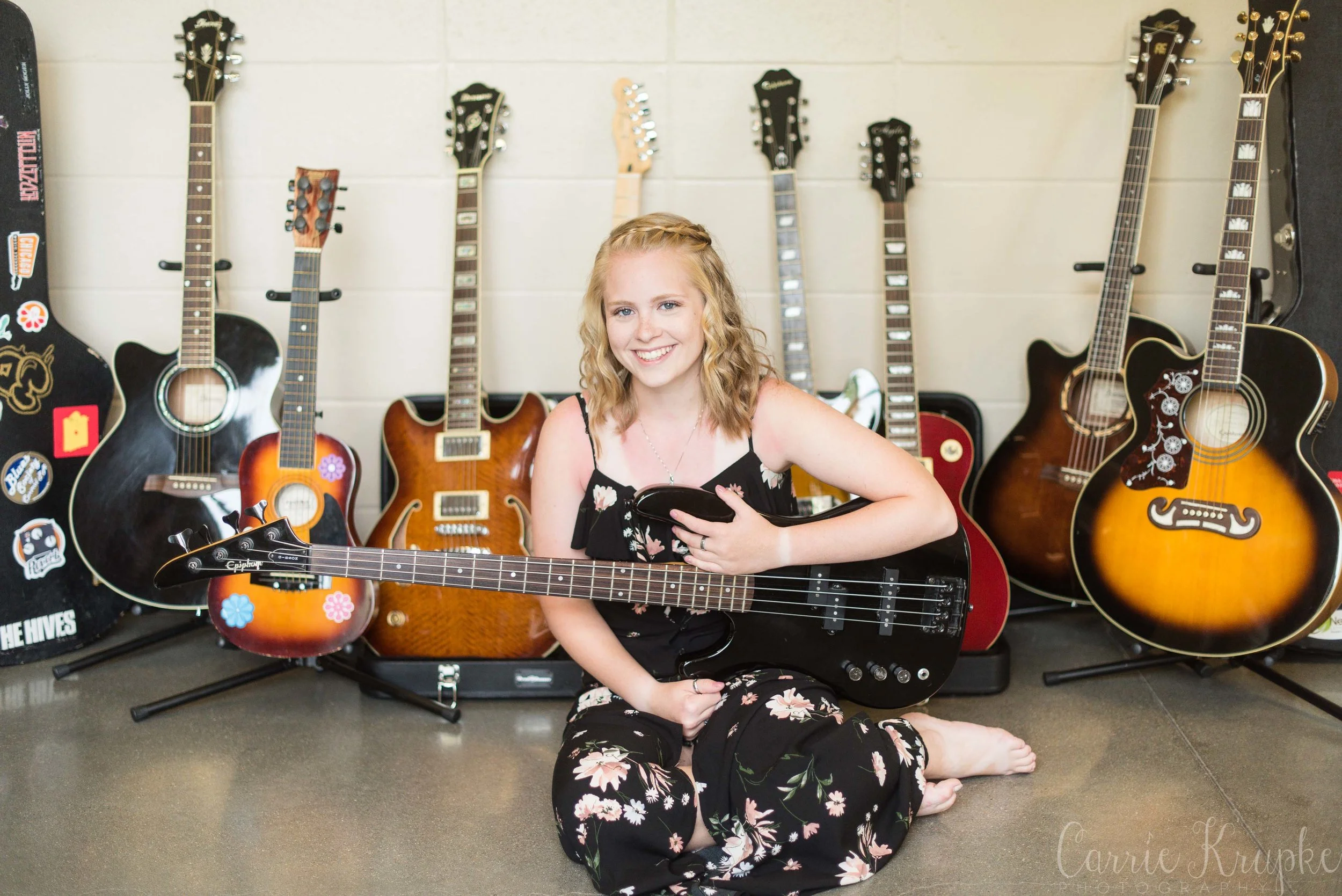 Vanessa is what I call and mover & a shaker. She gets the job done in a logical, pragmatic way that is no nonsense (with maybe a little bit of wit thrown in for good measure). She’s also a young lady who knows what she wants, so when she approached me to do indoor images solely with her guitars, I knew we were looking at a mini senior session. Bless their hearts, Vanessa and her mom Val lugged NINE guitars to our session together (leaving 4 more at home!) and thankfully, they all fit in Vanessa’s truck! Phew.