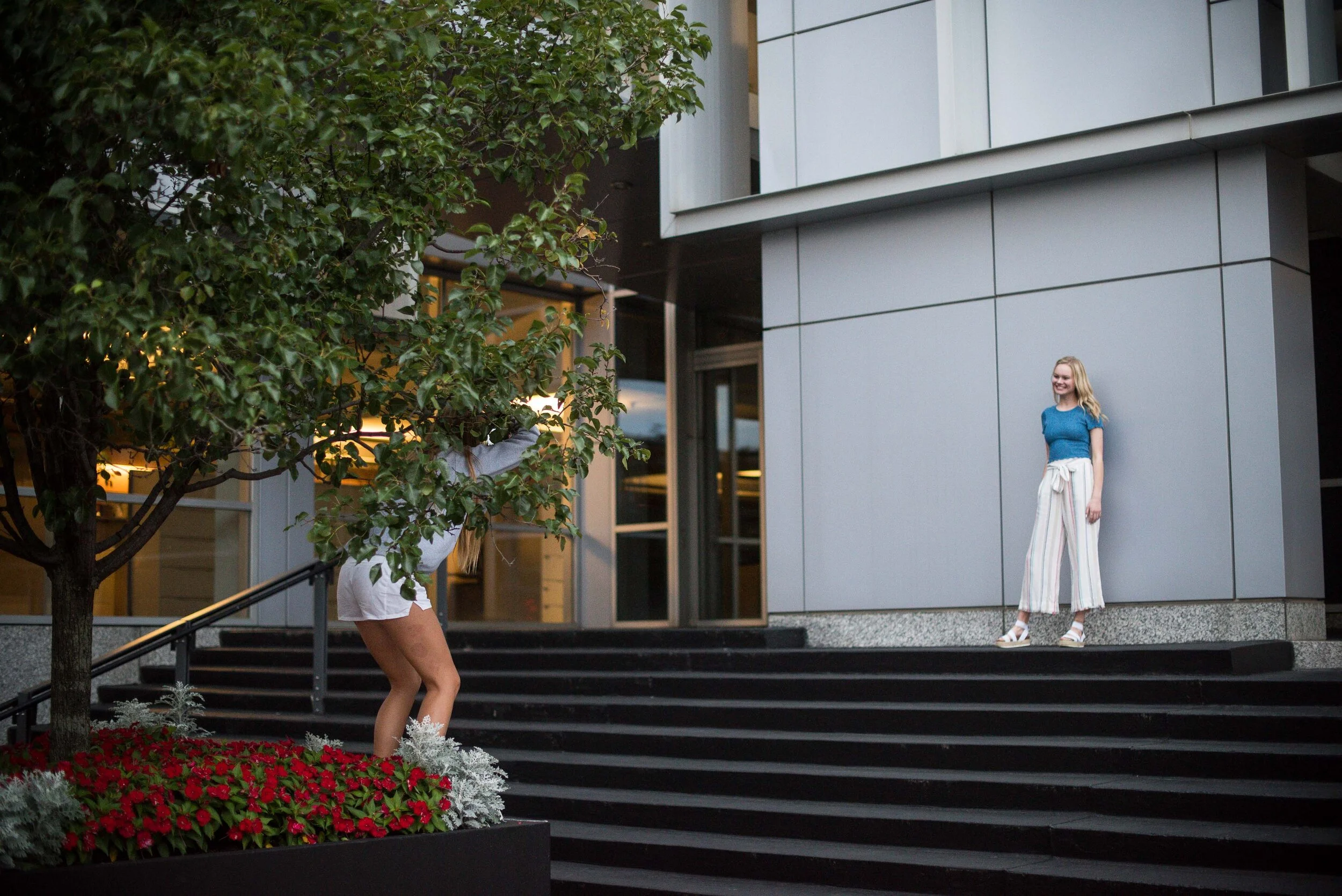 We hustled to another side of downtown and really had to work on how to leverage the light left in the day since it was partly shaded by trees and buildings. (The one of Caia under the awning may be mine, but the rest of these are all Cadyn!)