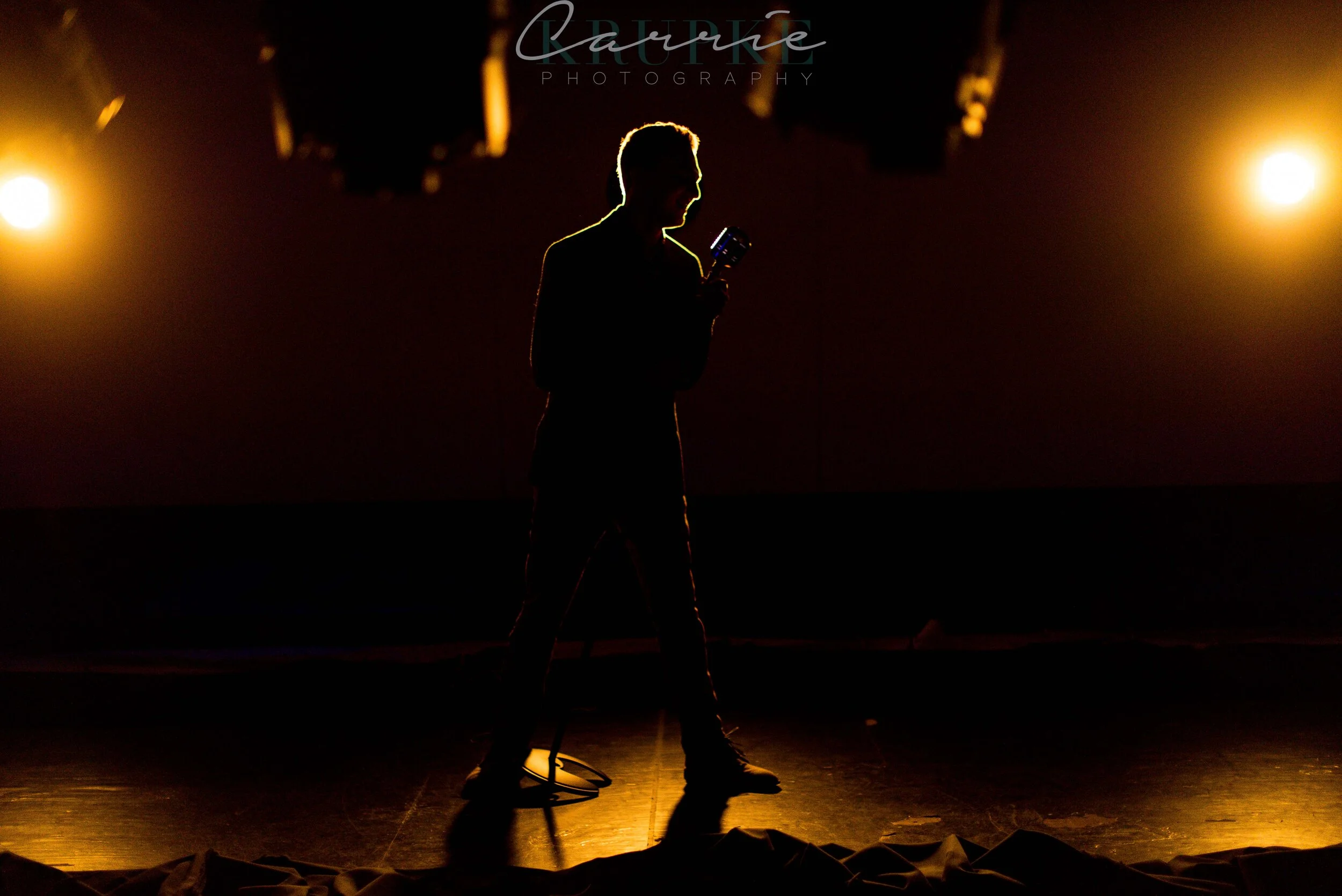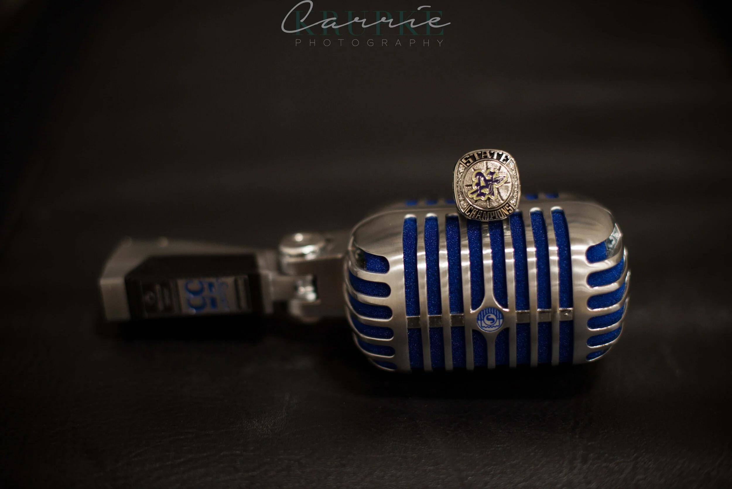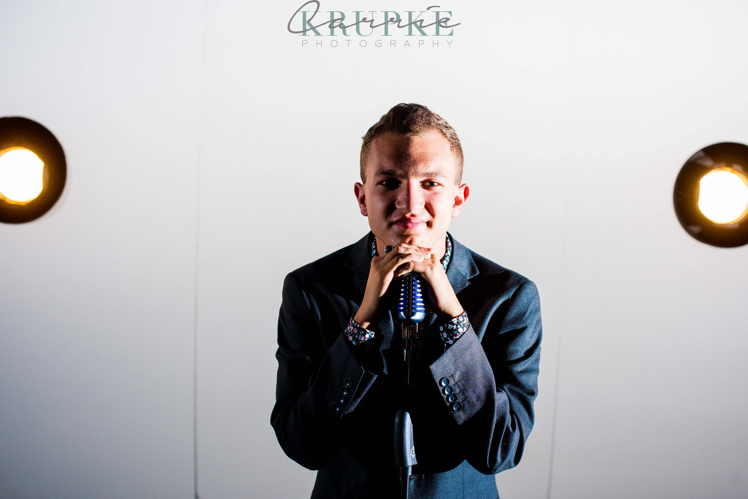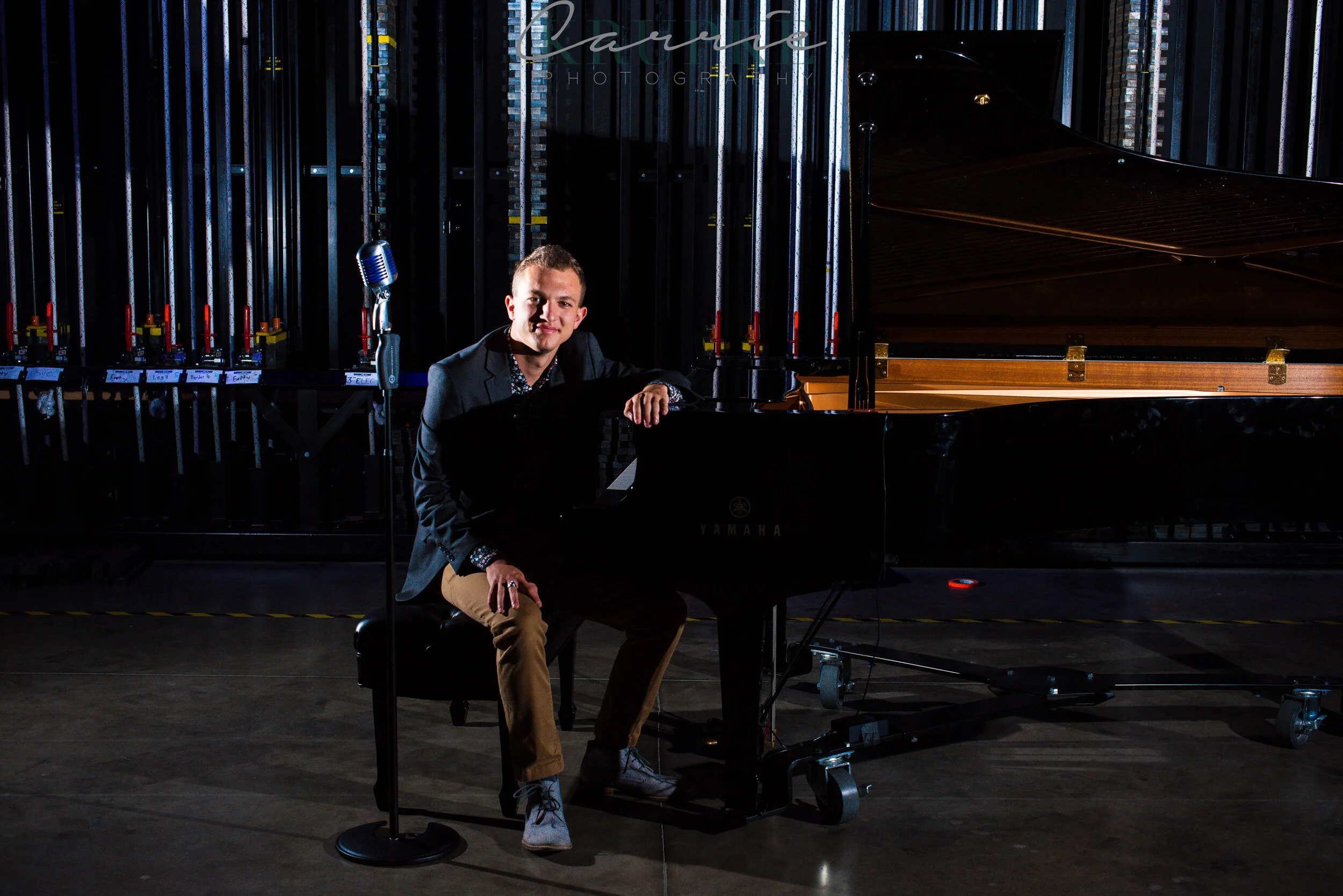 Shaffer works with the Black Shirt Crew and announcing of events at NHS, he’s also an incredible singer and musical theatre performer. We combined all of these into one shot by pulling out the baby grand to the backstage area and turned on the backstage blue lights. We combined that with an old fashioned microphone (thank you NPAC manager, Mike Grubb!) and we had all of it in one photo: