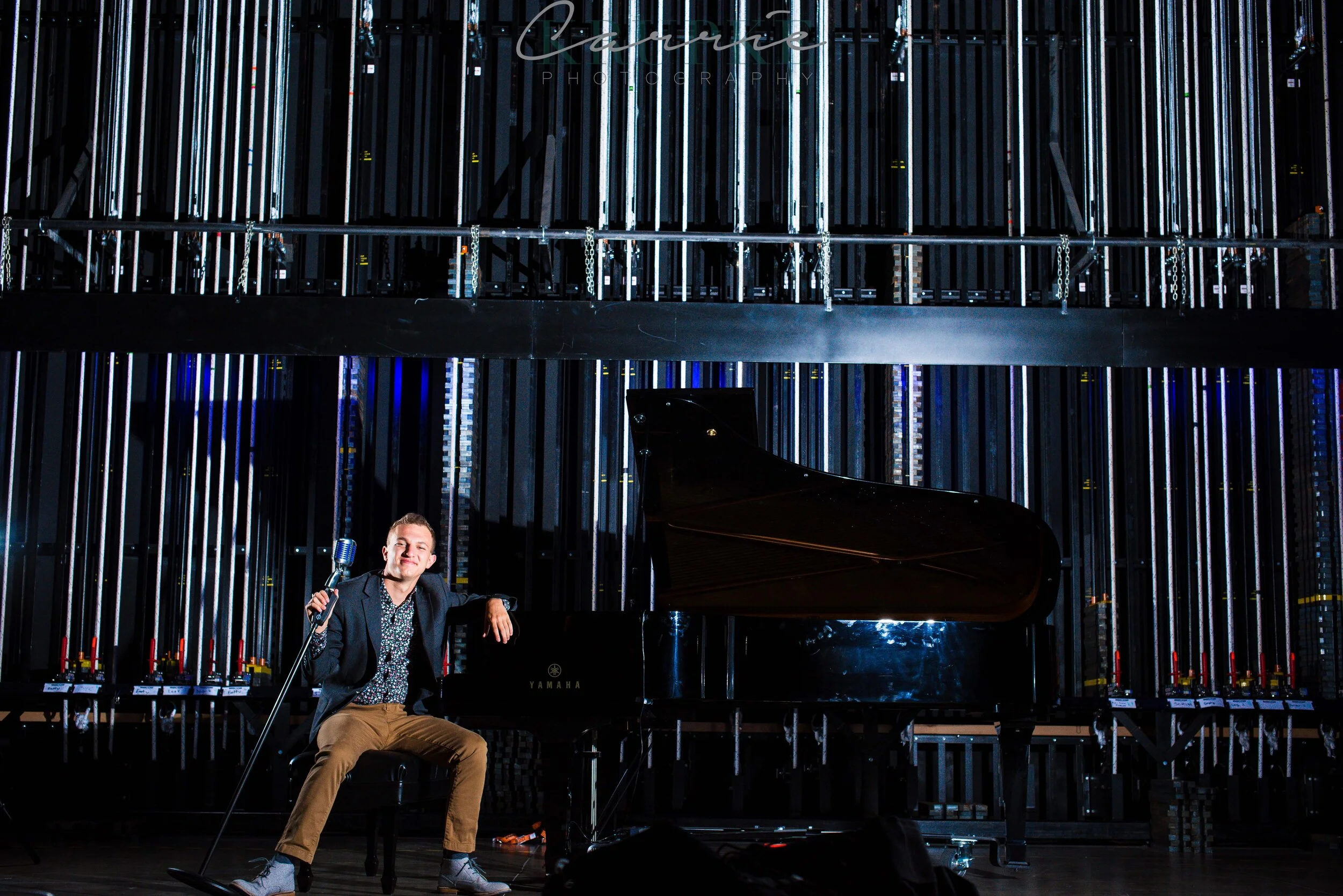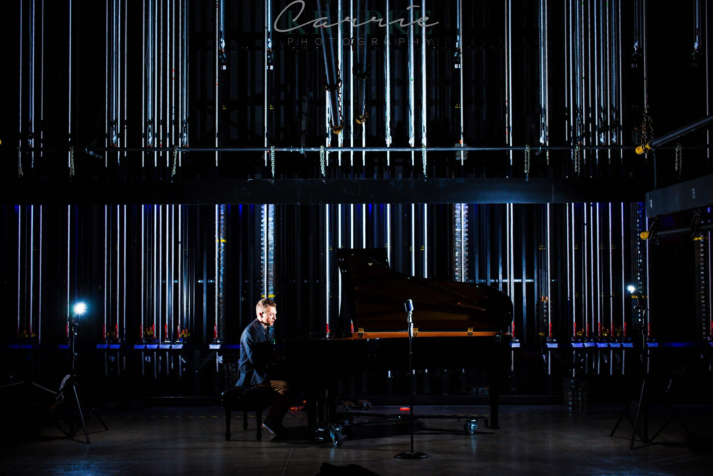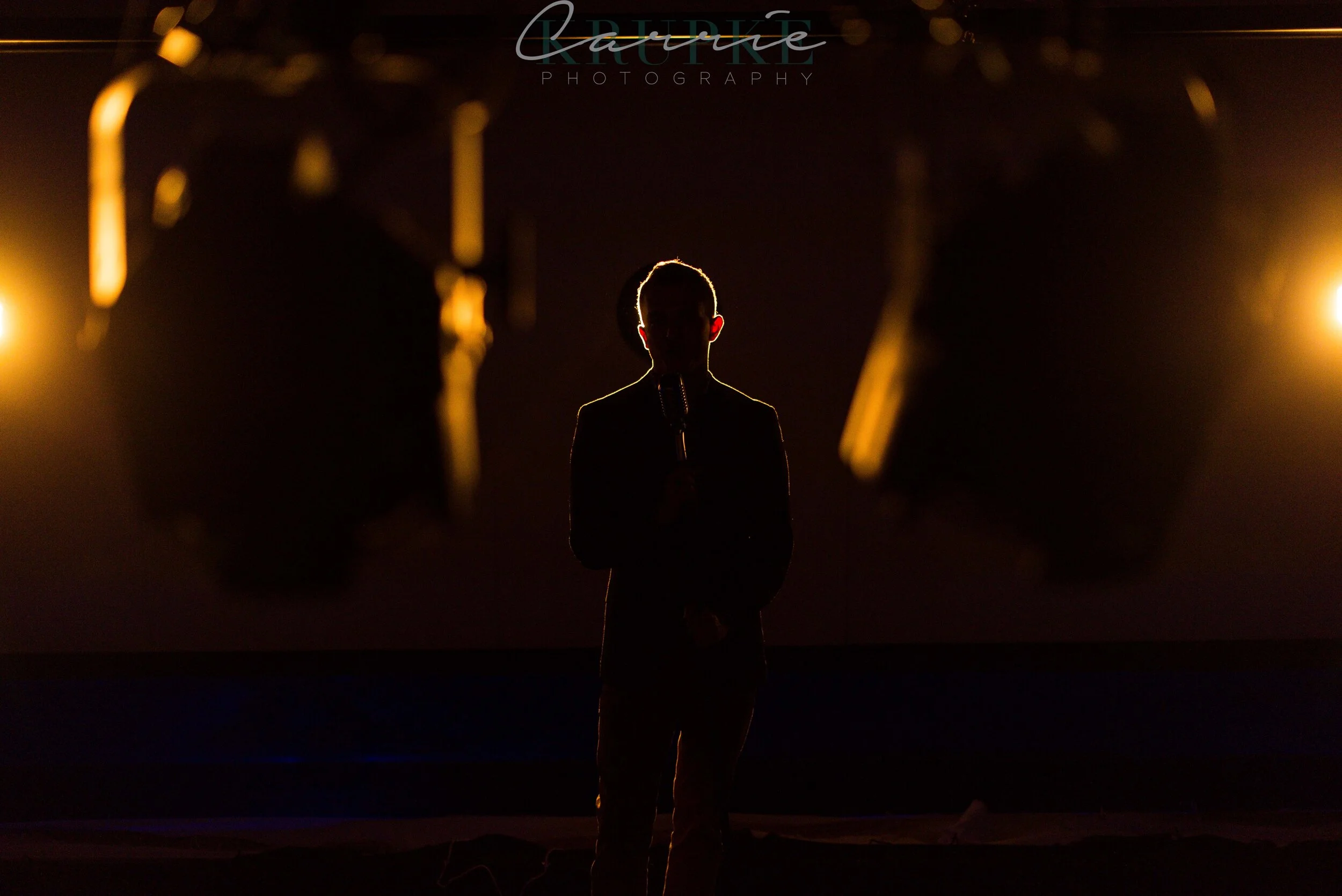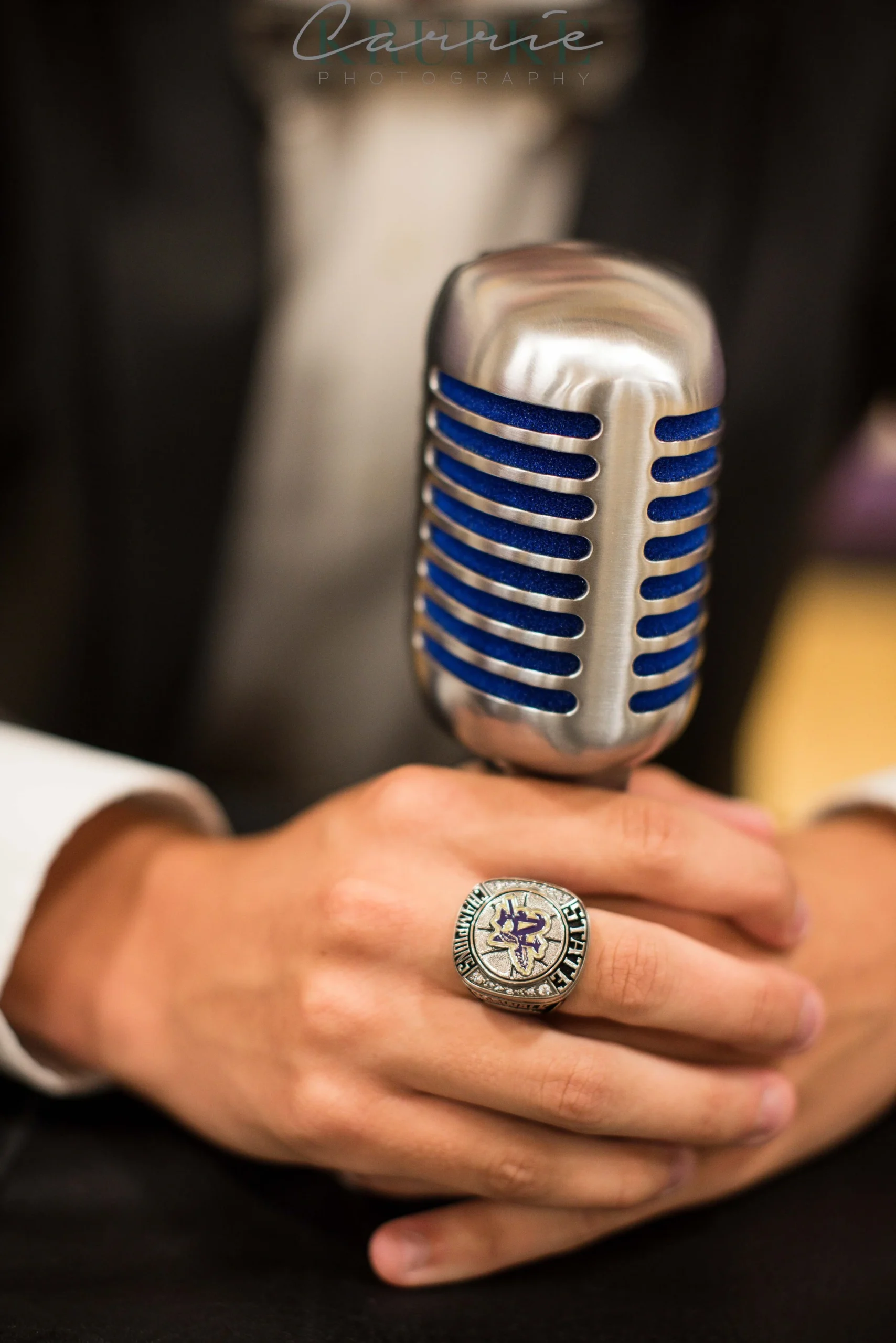 Shaffer works with the Black Shirt Crew and announcing of events at NHS, he’s also an incredible singer and musical theatre performer. We combined all of these into one shot by pulling out the baby grand to the backstage area and turned on the backstage blue lights. We combined that with an old fashioned microphone (thank you NPAC manager, Mike Grubb!) and we had all of it in one photo:
