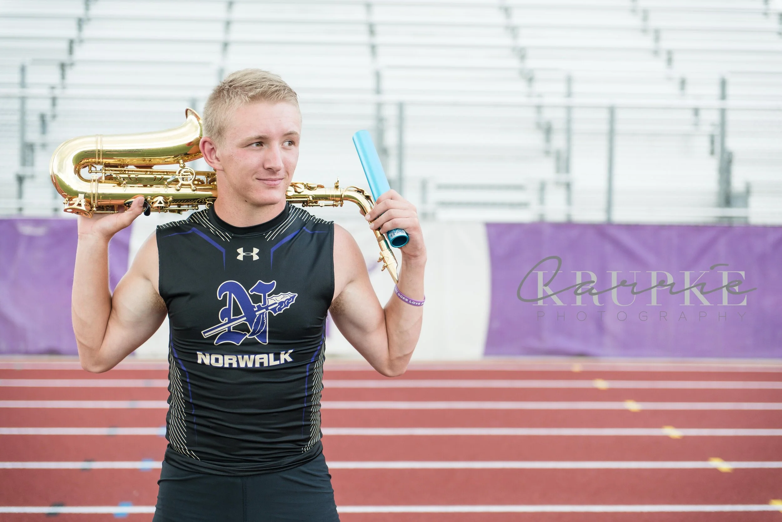 Brian is also involved in band (which is where I got to first meet him in 6th grade!) and while he’s hoping to go to Central for a track scholarship, we also wanted to emphasize his time in the band room. And his “super cool, old school tenor sax”.